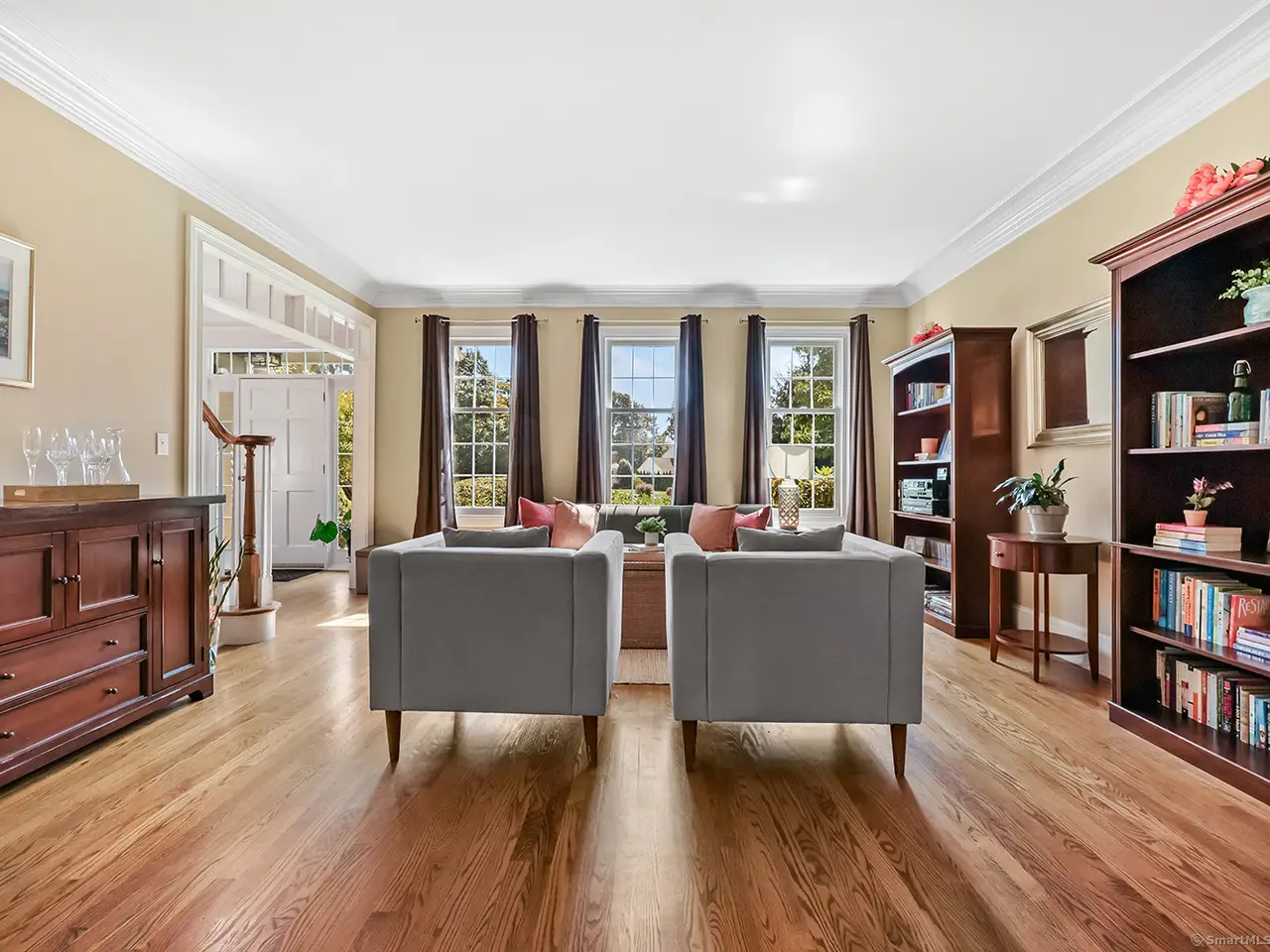 Tucked away on a serene street in the heart of Southport, this 4-bedroom, 4-bath Colonial invites you to experience the perfect balance of elegance, comfort, and privacy. From the moment you arrive, the home's setting feels special - an expansive property framed by mature trees, offering a sense of peace and seclusion. Step inside, and natural light floods the main level, where formal living and dining rooms provide timeless gathering spaces. The bright, gourmet kitchen is the heart of the home, opening to a warm and inviting family room where sliding doors lead seamlessly to the back deck and private backyard - perfect for hosting dinners, quiet morning coffees, or simply watching the seasons change. Upstairs, the primary suite is a true retreat - an expansive private sanctuary featuring two generous walk-in closets, a private sitting area and a spa-inspired full bath designed for relaxation. Three additional bedrooms offer flexibility for family, guests, or a home office, while the finished lower level extends your living space - ideal for a home gym, playroom, or creative studio. All of this, set in one of Fairfield's most sought-after neighborhoods, just moments from Southport Beach, Southport Village, and Pequot Library. This home isn't just a place to live - it's where your Southport story begins.