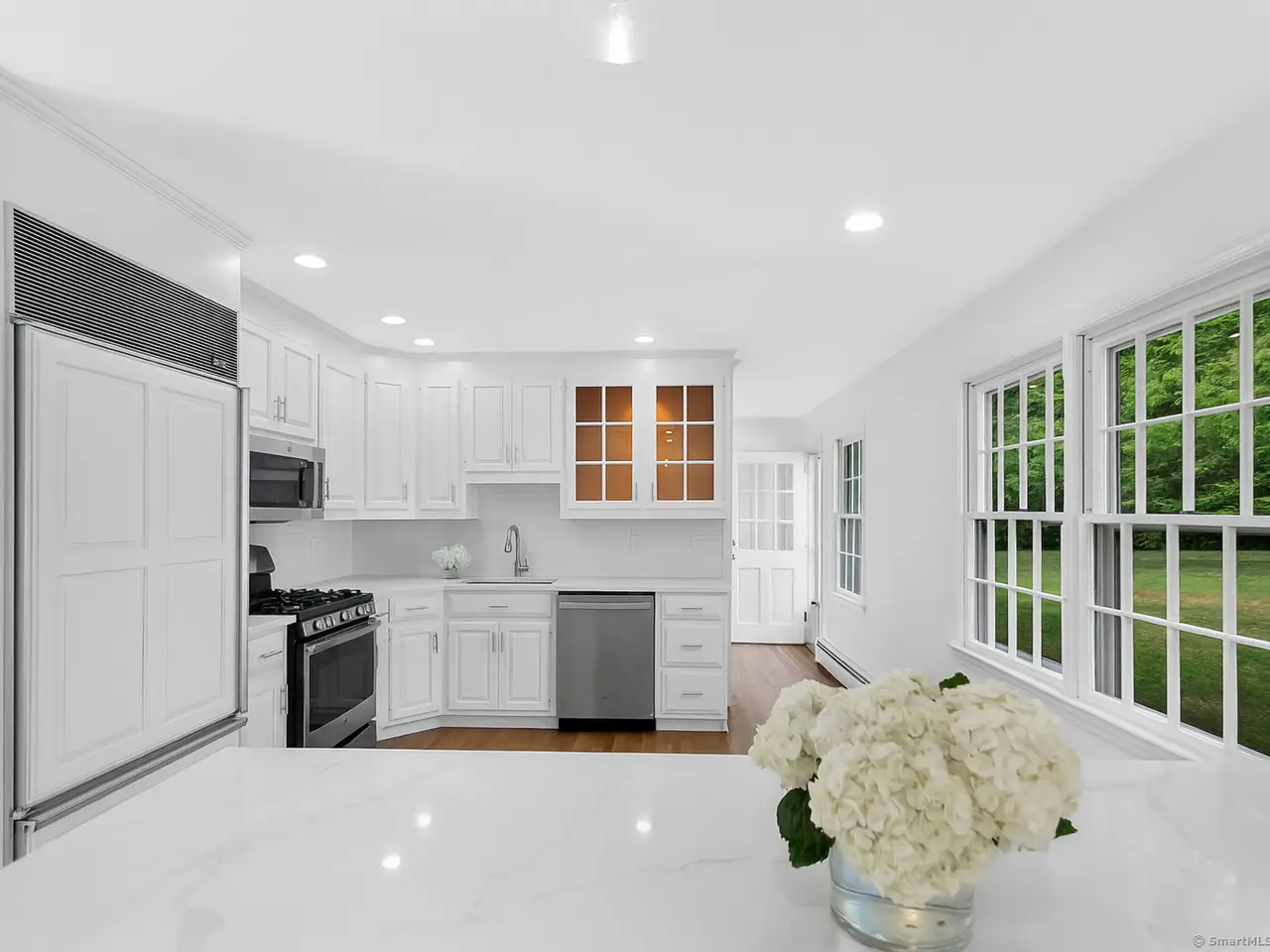 A picturesque, expanded and impeccably renovated Cape Cod home located in highly desirable Southport (set off far from road) awaits. Welcome home to 478 Hulls Highway where the character of this Cape blends with today's must have updates. This sun-drenched home features two levels of living, 8 spacious rooms including 3 bedrooms and 2.5 beautifully renovated baths. A rare main level primary suite adds to the convenience and appeal of this special property. Set on an expansive 1.0 acre lot this home has been meticulously updated throughout. Recent home improvements include: all new bathrooms with high-end finishes, renovated eat-in kitchen with new Quartz countertops, new appliances, new backsplash and painted cabinetry, entire interior has been freshly painted, new lighting and hardware throughout, striking new granite hearth fireplace, new central air system, updated plumbing fixtures and a newly paved driveway. The open and flexible floor plan allows for comfortable everyday living & effortless entertaining. Unfinished lower level is ideal for great storage or future home expansion with 864 sf. Attached two car garage provides easy entry into home. Flooded with natural light and filled with charm this home truly has it all. Step outside to a private and peaceful backyard with patio and great space to unwind or host guests. Ideally located and just minutes to Southport Village, beaches, the harbor, top-rated schools and train access - everything you need is at your doorstep! Highest and Best by 10/12/2025 at 6:00 pm. Thank you.