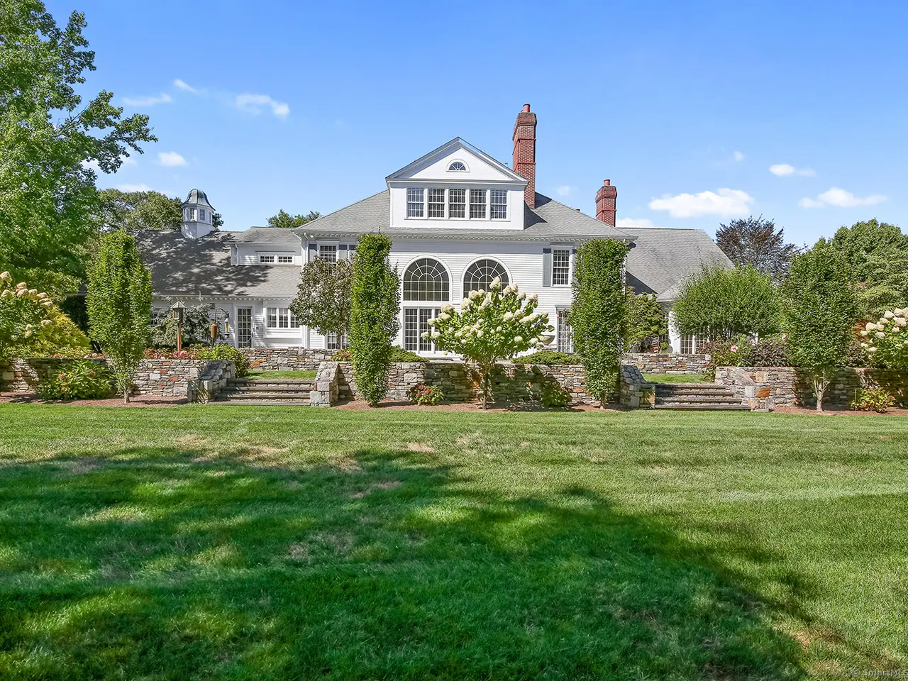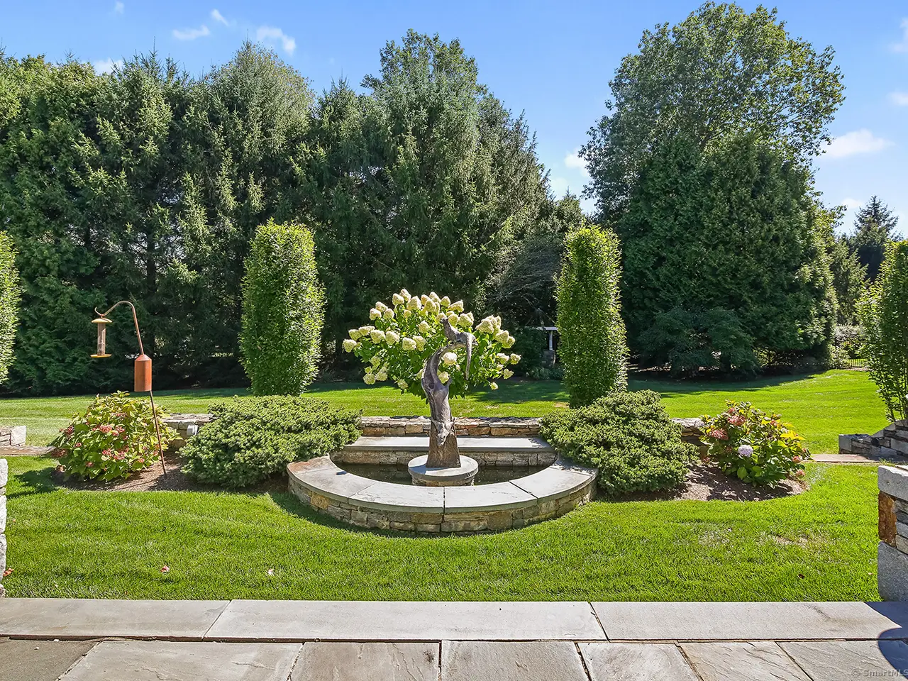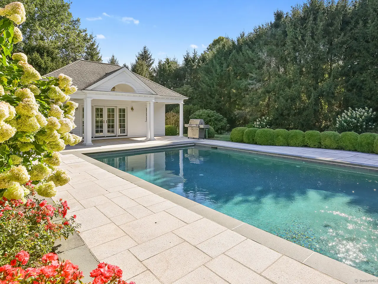 There are houses you tour, and then there are estates that capture your imagination. This extraordinary Greenfield Hill Colonial is the latter-a 9,700+ sq. ft. residence set on a pristine 2-acre corner lot in one of Fairfield's most prestigious neighborhoods. A paver-stone drive winds past manicured gardens to a grand two-story entry with a sweeping staircase, setting the tone for elegant living. Meticulously landscaped grounds, fountain, serene stone pathways, and a tranquil koi pond create a private oasis for quiet reflection or outdoor enjoyment. Inside, elegant formal living and dining rooms provide a perfect backdrop for entertaining, while the sun-filled family room, with vaulted ceilings, floor-to-ceiling windows, and a dramatic stone fireplace, serves as the heart of the home. The luxurious primary suite boasts tray ceilings, dual walk-ins, and a marble spa bath. Upstairs, five spacious bedrooms-many ensuite-welcome guests, and the third floor features a game and billiards lounge. A bespoke English pub, thoughtfully designed and versatile, can serve as a lounge, home office, entertainment room, or hobby space. Outdoors, a gated saltwater pool and hot tub with a fully equipped poolhouse create an inviting retreat for summer gatherings. This remarkable estate blends sophistication, comfort, and timeless appeal-a sanctuary for grand occasions and quiet moments alike.