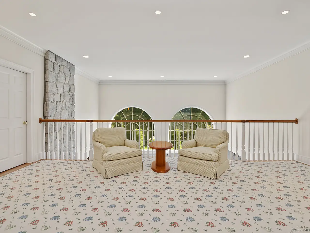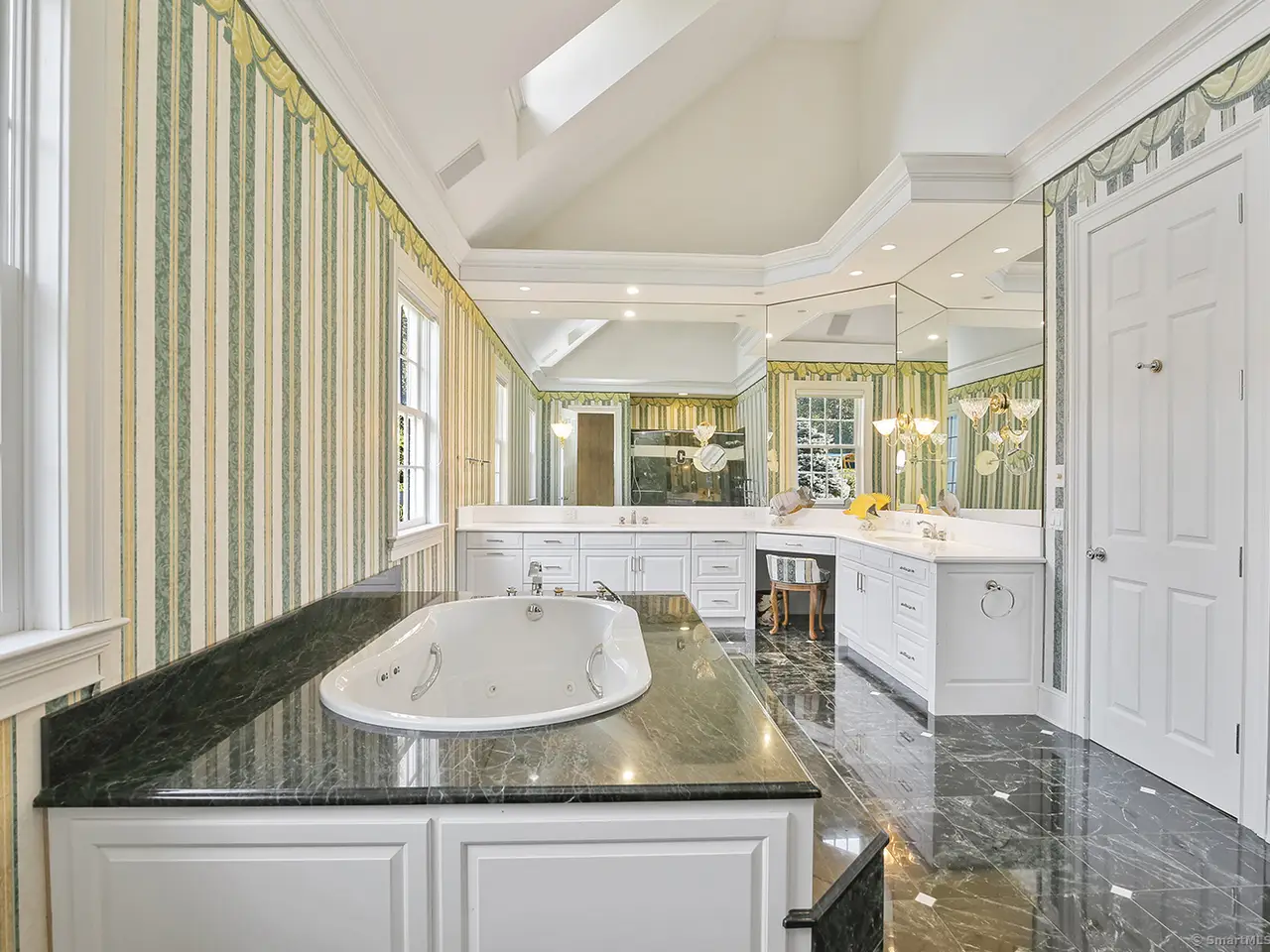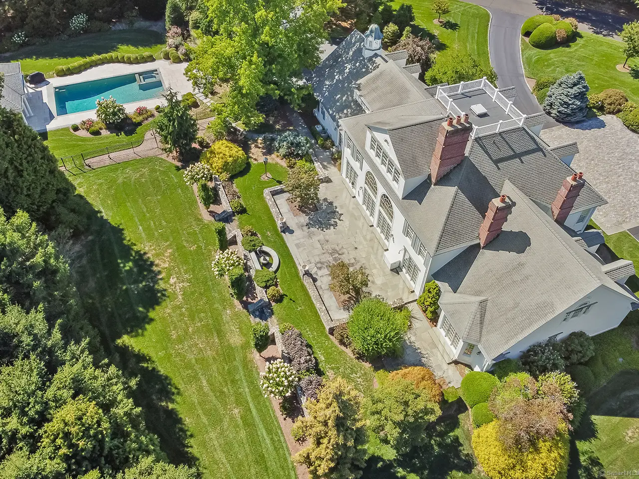 There are houses you tour, and then there are estates that capture your imagination. This extraordinary Greenfield Hill Colonial is the latter-a 9,700+ sq. ft. residence set on a pristine 2-acre corner lot in one of Fairfield's most prestigious neighborhoods. A paver-stone drive winds past manicured gardens to a grand two-story entry with a sweeping staircase, setting the tone for elegant living. Meticulously landscaped grounds, fountain, serene stone pathways, and a tranquil koi pond create a private oasis for quiet reflection or outdoor enjoyment. Inside, elegant formal living and dining rooms provide a perfect backdrop for entertaining, while the sun-filled family room, with vaulted ceilings, floor-to-ceiling windows, and a dramatic stone fireplace, serves as the heart of the home. The luxurious primary suite boasts tray ceilings, dual walk-ins, and a marble spa bath. Upstairs, five spacious bedrooms-many ensuite-welcome guests, and the third floor features a game and billiards lounge. A bespoke English pub, thoughtfully designed and versatile, can serve as a lounge, home office, entertainment room, or hobby space. Outdoors, a gated saltwater pool and hot tub with a fully equipped poolhouse create an inviting retreat for summer gatherings. This remarkable estate blends sophistication, comfort, and timeless appeal-a sanctuary for grand occasions and quiet moments alike.