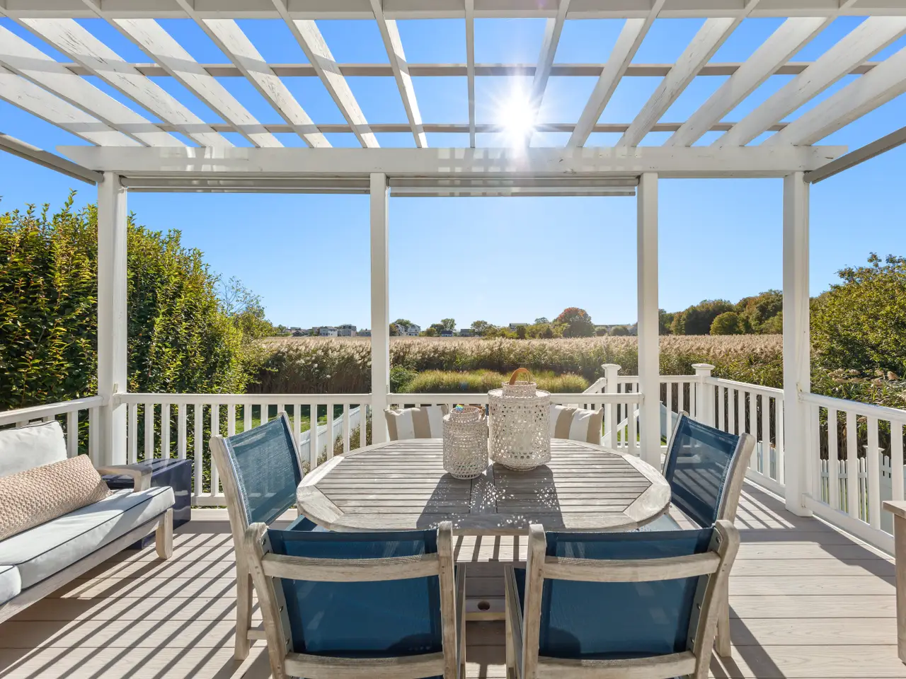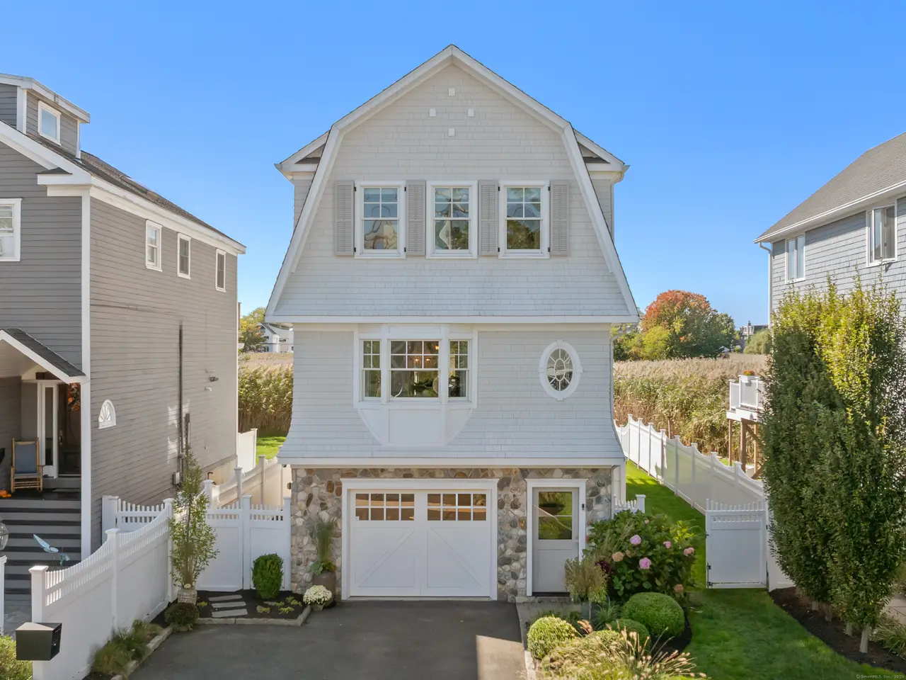Steps from Penfield Beach via gated Fair Acres Beach Association, 748 Rowland Road is a stunning coastal retreat offering the perfect blend of luxury living & laid-back elegance. Set on a rare, private lot w/sweeping, unobstructed views of protected open space this home is a sanctuary of sunlight, serenity & sophisticated design. The main level unfolds w/an open, airy layout filled w/natural light. A gracious dining room sets the tone for entertaining while the eat-in kitchen impresses w/Thermador appliances, wine fridge & oversized marble island framed by custom cabinetry. The living room stuns w/coffered ceilings, gas fireplace w/reclaimed wood mantle & breathtaking views of the lush space beyond. French doors lead to large deck perfect for alfresco dining & soaking in the coastal breeze. 1st fl powder room & seamless indoor-outdoor flow complete the effortless beachside living vibe. Upstairs, the primary suite is a peaceful retreat w/gas fireplace, oversized walk-in closet, spa-like en suite bath & private deck where ocean breezes & morning light set the tone for the day. 2 add'l bedrooms w/Jack & Jill bath & separate dressing areas provide comfort & privacy for family/guests. Lower level loggia is a showstopper featuring stone floors, gas fireplace & access to patio & stunning professionally landscaped backyard oasis. Attached oversized garage w/epoxy floor, gas, sewer, public water, FEMA compliant.