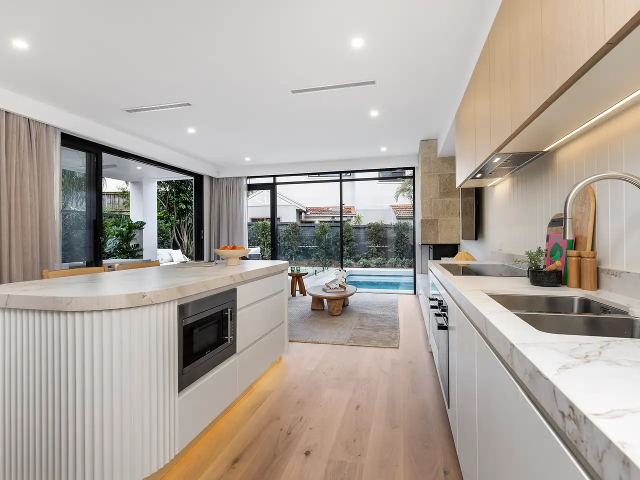 Setting new benchmarks in architectural excellence and state-of-the-art luxury, this brand-new Torrens title contemporary semi delivers the ultimate designer sanctuary in a secluded yet superbly connected coastal lifestyle address. Combining the dynamism of resort-like indoor/outdoor entertaining with the esoteric simplicity of low-maintenance living, the residence boasts a glass-embraced open-plan venue with separate living and dining spaces anchored by a fully integrated deluxe island kitchen with seamless flow to a customised covered entertainers' deck and sparkling in-ground pool. A versatile media room or fourth bedroom, indulgent master suite and chic bathrooms with underfloor heating underscore the home's streamlined functionality, while premium appointments, including a gas fireplace, smart home automation and ducted air conditioning deliver year-round comfort at the touch of a button. Embodying the very essence of designer sophistication and relaxed coastal lifestyle, it is peacefully nestled next to the tranquil Weeroona Reserve Playground within footsteps of Manly Golf Club, Manly Wharf buses and Manly West Public School, a short stroll to Graham Reserve/dog park and Fairlight Village, and within easy walking distance of Balgowlah Village, B-Line city buses and Manly Beach. - Architect-designed, meticulously crafted and appointed with every conceivable luxury - Striking white rendered façade, freestanding to the east, entrance foyer with a stone countertop - Generous living space with a gas log fireplace, the dining room overlooks the pool and rear garden - Stacked glass sliders open to a covered deck with a stone bar, integrated barbecue and wine fridge - Premium Dekton island kitchen with American oak cabinetry and a walk-in pantry - Miele induction cooktop, wall ovens and integrated dishwasher plus an integrated fridge - Spacious bedrooms with built-ins, indulgent main bedroom with coffered ceilings and an ensuite - Media room or large fourth bedroom, ultra-chic bathrooms with heated flooring, concealed internal laundry - High ceiling, engineered American oak flooring, smart air-touch ducted air conditioning fibre system - Provisions for pool heating and solar panels, LED lighting, video intercom - Auto lock-up garage with a storeroom, internal access, CCTV and parking in front