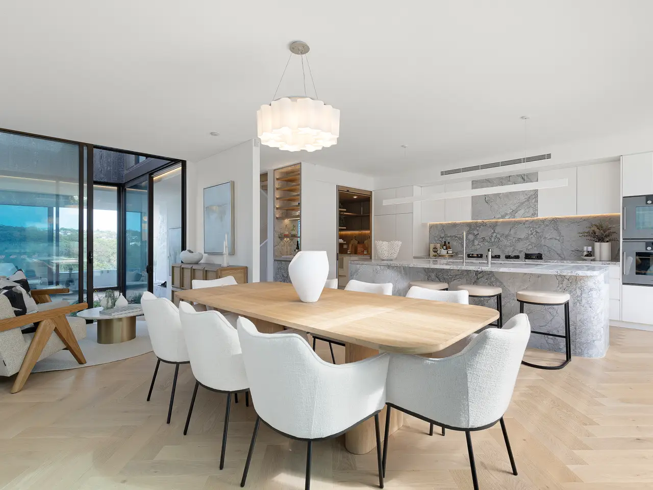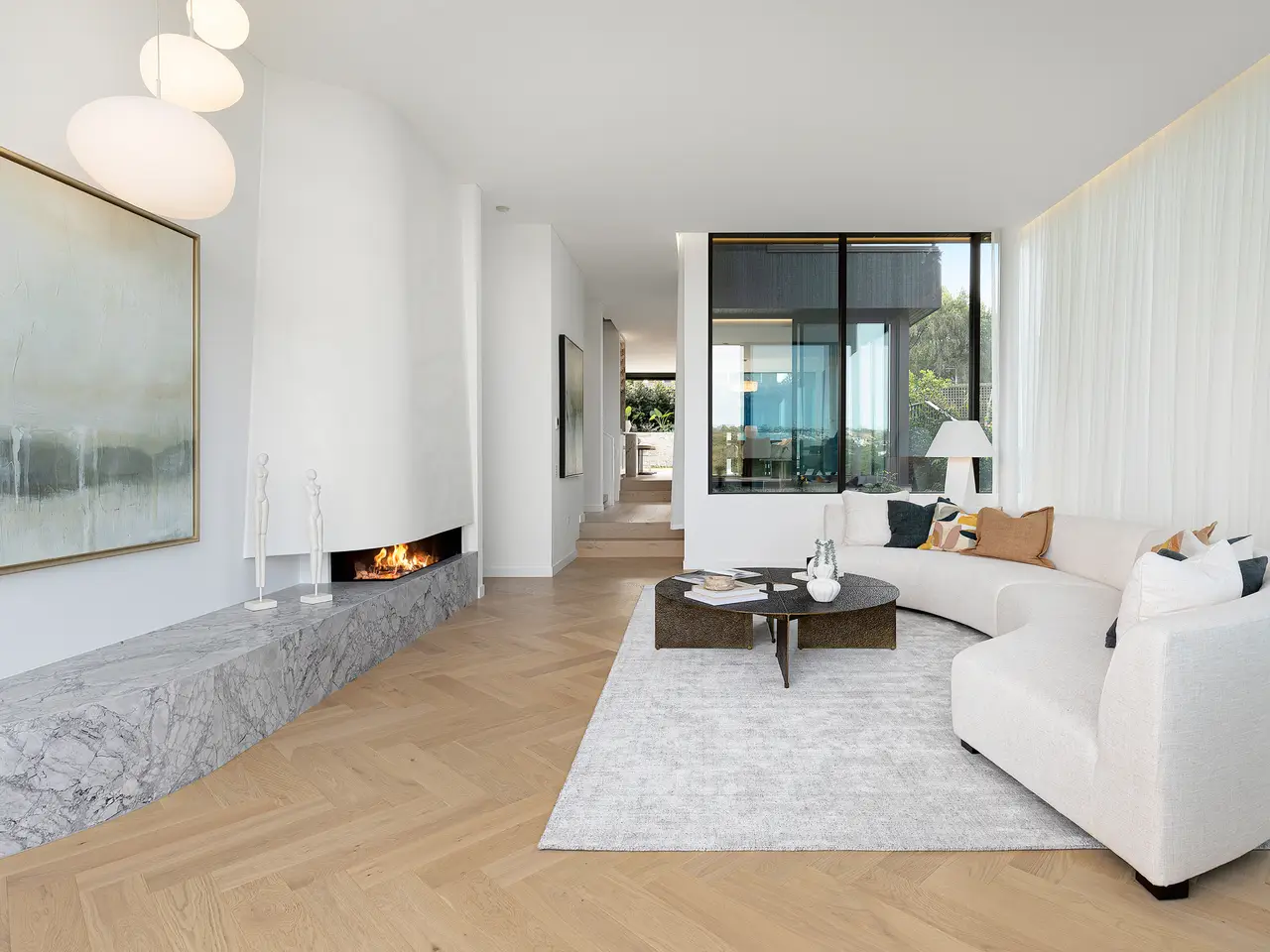 Pause to appreciate the glass sheathed double garage then ascend the stairs or take the elevator to experience effortless elegance underscored by a truly enchanting outlook. From yachts bobbing on North Harbour below, across Q Station and Manly to North Head and the ocean's horizons, this is a spellbinding panorama. It's an attribute equalled by the resolute focus on quality inherent in every aspect of this stunning three-level home. Meticulously crafted, it offers sunlit, sublime and luxurious indoor-outdoor living throughout the seasons. - Brand new & stunning, concrete construction & exceptional features - Multiple living areas, bespoke full-height glass under 3.6m ceilings - North aspect fully appointed alfresco zone, lawn & saltwater pool - Exquisite kitchen, Gaggenau, Super White marble, walk-in pantry - Main suite is an idyllic retreat, sumptuous expanse & sweeping vistas - Terrazzo ensuite & bathrooms with Calacatta marble, designer finishes - VRV climate control, European oak flooring, bespoke wine cellar & storage - Five minute stroll to Effie's Café on a harbour jetty, 800m to Balgowlah or Fairlight Village - Superb architecture by renowned Watershed Architects - A world class residence by Bronston