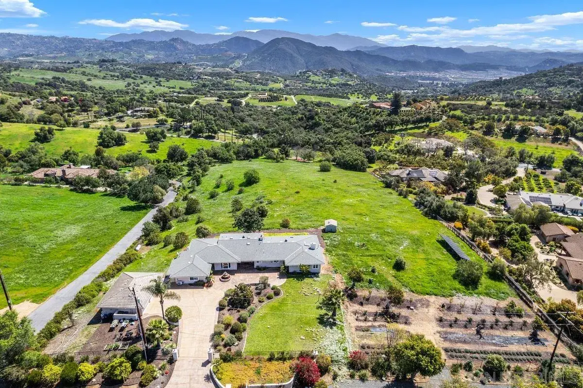 Welcome Home to Serene Country Living with Panoramic Views! Experience the perfect blend of luxury and tranquility in this stunning single-story gated home. Step through custom double wooden doors into spacious great room featuring a cozy fireplace w/custom mantle and french doors, seamlessly flowing into the gourmet kitchen. Designed for the culinary enthusiast, the kitchen boasts high-end stainless steel appliances, including a Sub-Zero refrigerator, Thermador 6-burner range w/hood, convection double ovens, wine chiller and a convenient pot filler. Granite countertops, a large island, soft-close cabinets w/pullouts, and ample storage complete the space. The main house offers a den with bay window and built-ins. 3 generously sized bedrooms, each w/ensuite bath and walk-in closet. The primary suite is a private retreat, featuring an extravagant spa-like bath w/ jetted tub, chandelier, dual-sided fireplace, separate walk-in shower, and dual quartz vanities. Throughout the home, you'll find distressed hickory wood plank and tile flooring, crown molding, plantation shutters, and newer windows. Solar tube lighting enhances a bright and airy ambiance. Paid Solar Electric w/backup. For added flexibility, a separate 1-bedroom potential ADU w/ 3/4 bath and covered courtyard provides additional living space, ideal for guests or rental income. Det. 3-stall garage offers ample storage w/available RV Parking. Covered patio w/powered shade screen w/breathtaking views, all while living in a home designed for comfort and elegance. Seller pays no electric bill!