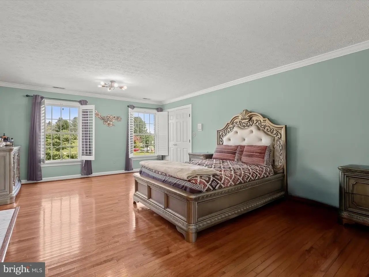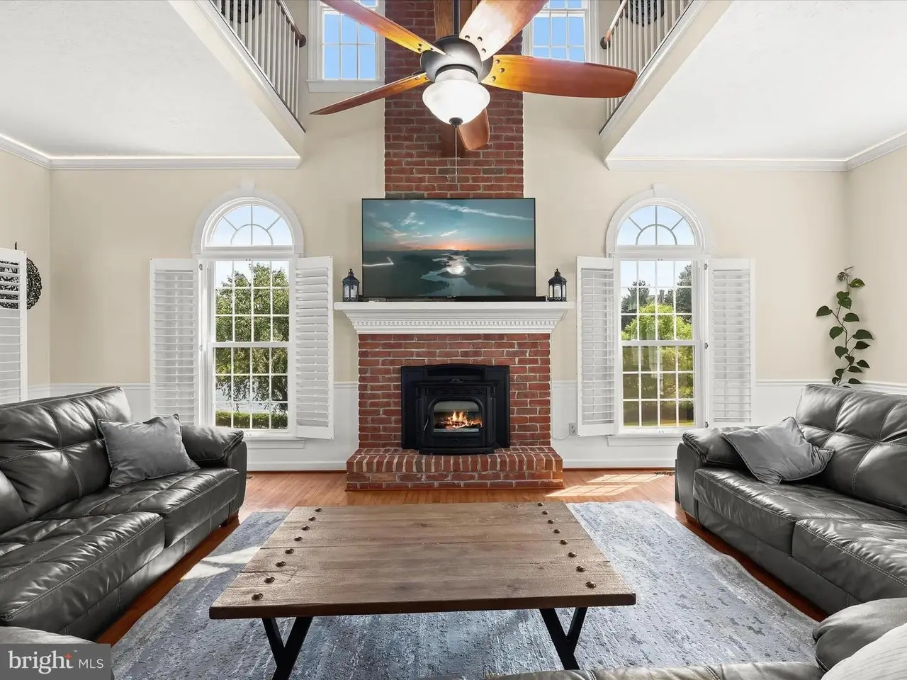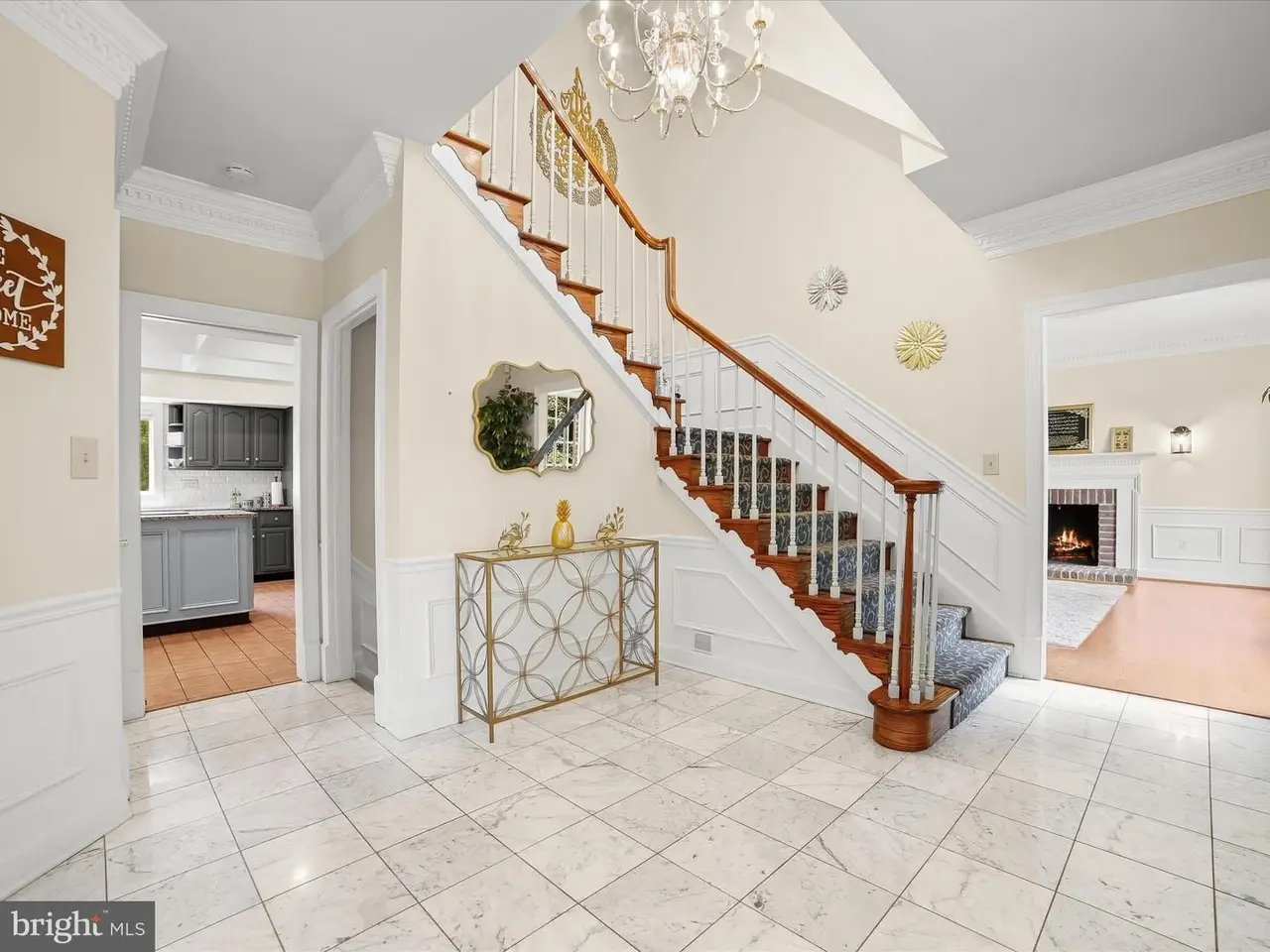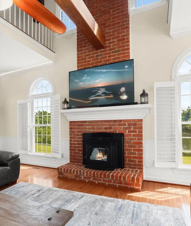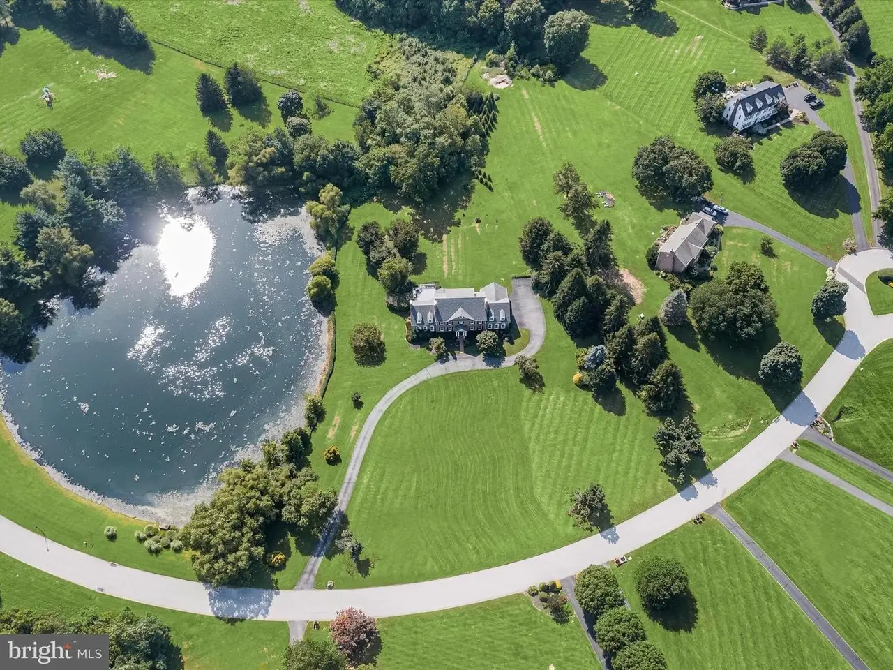 Welcome to this elegant waterfront residence where timeless design meets modern sophistication. Beautifully landscaped grounds and a stream-fed pond set the stage for a grand arrival. Stately columns and a manicured lawn frame the classic façade, offering a glimpse of the refined interiors within. Inside, the foyer is appointed with dentil crown molding and box wainscoting, custom millwork echoed throughout the main level. The formal living room offers warmth and style with hardwood floors, a wood-burning fireplace, plantation shutters, and sunlit windows. The adjacent formal dining room features another fireplace, detailed millwork, hardwood floors, and a ceiling medallion, all overlooking the lush front lawn. Designed for entertaining, the chef's kitchen is outfitted with granite countertops, a KitchenAid island cooktop, peninsula island, double Thermador ovens, Sub-Zero refrigerator/freezer, and a second prep sink in the breakfast area. Just off the kitchen, step into the screened-in porch-an ideal extension of the space and a peaceful spot for morning coffee or al fresco dining. From there, access the expansive 1,000 sq ft deck with integrated propane grill and outdoor kitchen, all overlooking tranquil pond views. The dramatic, two-story family room impresses with exposed beams, a pellet stove, and Palladian windows that frame the scenery. A custom spiral staircase leads to a loft library, perfect as an executive office with built-in shelving and workspace. Upstairs, the home's sleeping quarters are thoughtfully arranged across two upper levels to provide both comfort and privacy. The second floor hosts the luxurious primary suite along with three additional bedrooms and a full bath, while the third floor offers two more spacious bedrooms and another full bath, ideal for guests, extended family, or a private retreat. The primary suite is a true sanctuary, complete with its own fireplace, a serene sitting room, two walk-in closets, and a separate dressing area. The en suite bath is spa-inspired, featuring a soaking tub, custom vanity with built-in shelving, and a temperature-controlled steam sauna for two. Each of the three secondary bedrooms on this level offers generous space, natural light, and convenient access to the shared bath. On the top level, two additional bedrooms and a full bath provide excellent flexibility for guest accommodations, an au pair suite, or creative studio space. The finished lower level expands your living space with a large recreation room featuring a sleek electric fireplace and a step-down game room with a full-size bar, perfect for billiards, ping pong, or movie nights. Function meets flexibility in the oversized three-car garage, which includes a dedicated workshop area and ample storage, ideal for car enthusiasts, hobbyists, or anyone in need of extra space. Set on over 3 acres, the grounds include a lush lawn, newly planted fruit trees, and access to the scenic, stream-fed community pond, perfect for fishing or quiet reflection. Pond privileges are included. Recent upgrades include two new HVAC units with 10-year warranties (2025), full interior paint (2023), new carpet (2022), water heater (2019), and a water filtration system (2018). With its luxurious updates, versatile layout, and serene setting just minutes from Baltimore and major commuter routes, this extraordinary estate offers the best of refined country living with everyday convenience. Note: Select interior photos have been virtually staged.