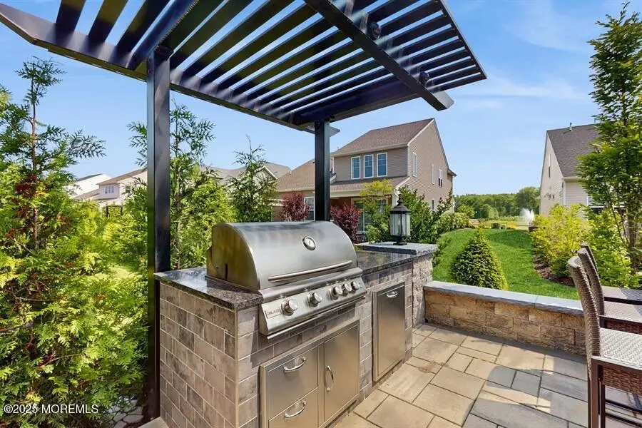 Absolutely stunning. Not one detail missed in this Bloomingdale Modern Farmhouse model at Regency at Allaire. Toll Brothers 55+ active adult community close to the Jersey Shore and all of the activities Monmouth County has to offer. This home features 4 Bedrooms and 3 full Baths. A huge eat in kitchen with enormous center island, custom cabinets extend to the 10 foot ceilings, SS appliances, Quartz counters and sliders to the outdoor kitchen and covered patio. The great room is enhanced with custom moldings, gas fireplace, coffered ceiling and is open to the kitchen and dining area. Gorgeous custom built-ins and detail moldings throughout this home. The outdoor oasis is spectacular. Oversized custom outdoor kitchen plus sitting area with fireplace. The covered patio comes equipped with retractable screens on all 3 sides. Professionally landscaped front and back. This home truly shows like a Model Home. Not to be missed. Professional photos to follow