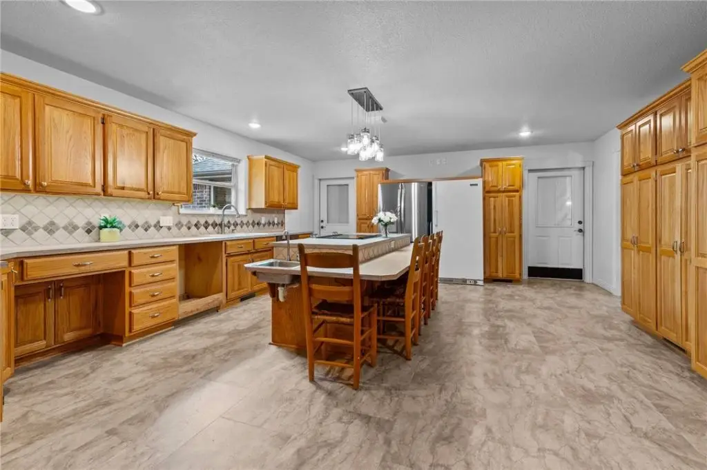 Ideal for multi-generational living. Home with a fully equipped in-law suite could be separate guest suite or college student retreat. Custom-built, fully ADA-compliant home in a quiet neighborhood. Offering 5+ bedrooms,4.5 baths with 4 oversized attached garages. The spacious kitchen is a dream with an abundance of cabinetry, pull-out drawers, lazy Susans, and two appliance cabinets to keep your countertops clutter-free and a large island. The primary closet is partially cedar-lined for a touch of rustic elegance. Enjoy the no-maintenance tech deck. Central vac for both levels and an elevator. Basement features ABUNDANT storage, plenty of flex space for a multitude of uses, and a safe room with two concrete walls for added peace of mind. Walk-out basement opens to a large patio for outdoor entertaining. The 4th car heated and cooled garage provides possibilities of boat storage, or a workshop. New roof 2024. Two new heat and air units 2022.