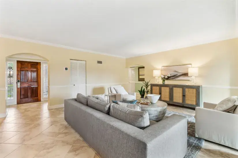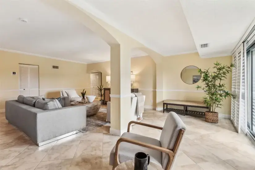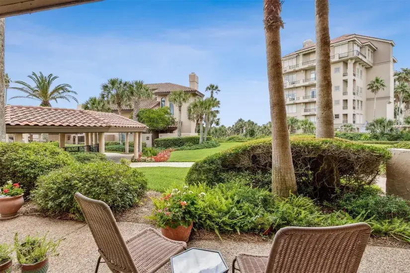 Rare opportunity in Windsong Villas, a premier oceanfront community located on the southeastern side of Amelia Island Plantation. This spacious 2-bedroom, 2.5-bath, 1960 sq. ft. ground-floor villa is ideally situated near the heated community pool and only steps to pristine beach and sparkling Atlantic Ocean. This beautiful end unit with ample windows and abundant natural light, features a peek-a-boo ocean view from the expansive patio. The interior blends Mediterranean Charm and Coastal Elegance with graceful archways ways, crown molding, and an open-concept layout. The custom kitchen with stainless appliances and tiled backsplash flows into the open dining area with a large wet bar, making it ideal for entertaining. The large inviting living area extends seamlessly to the patio, creating a serene indoor-outdoor retreat. The large primary suite with direct patio access has a bonus sitting area that can be used as an office or reconfigured for a third bedroom. The one-car open garage with a private storage closet for your convenience. Weekly rentals allowed. Schedule your showing today!