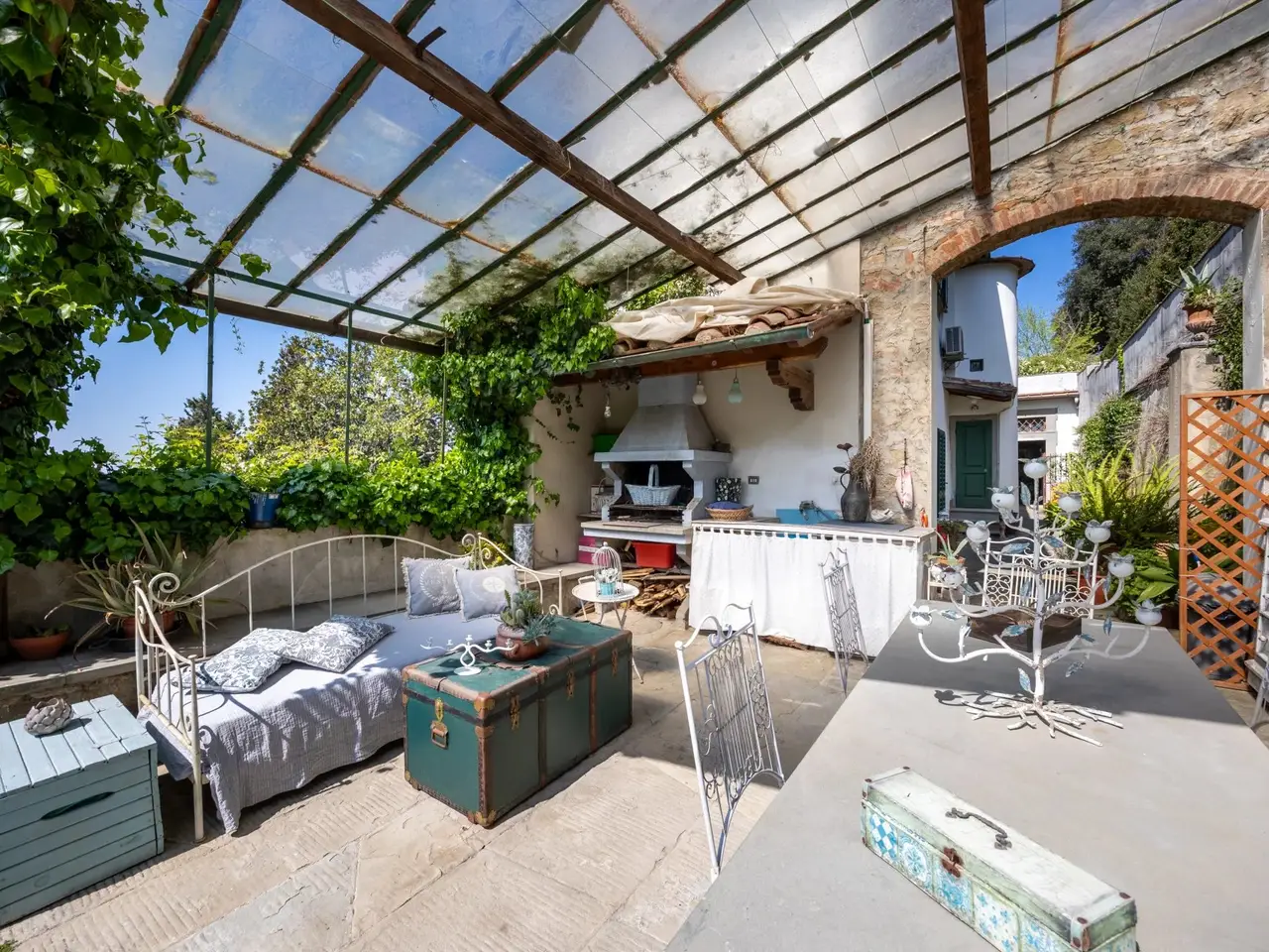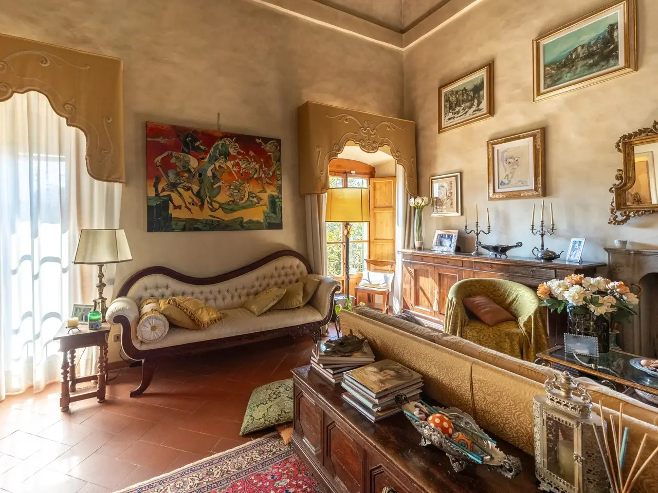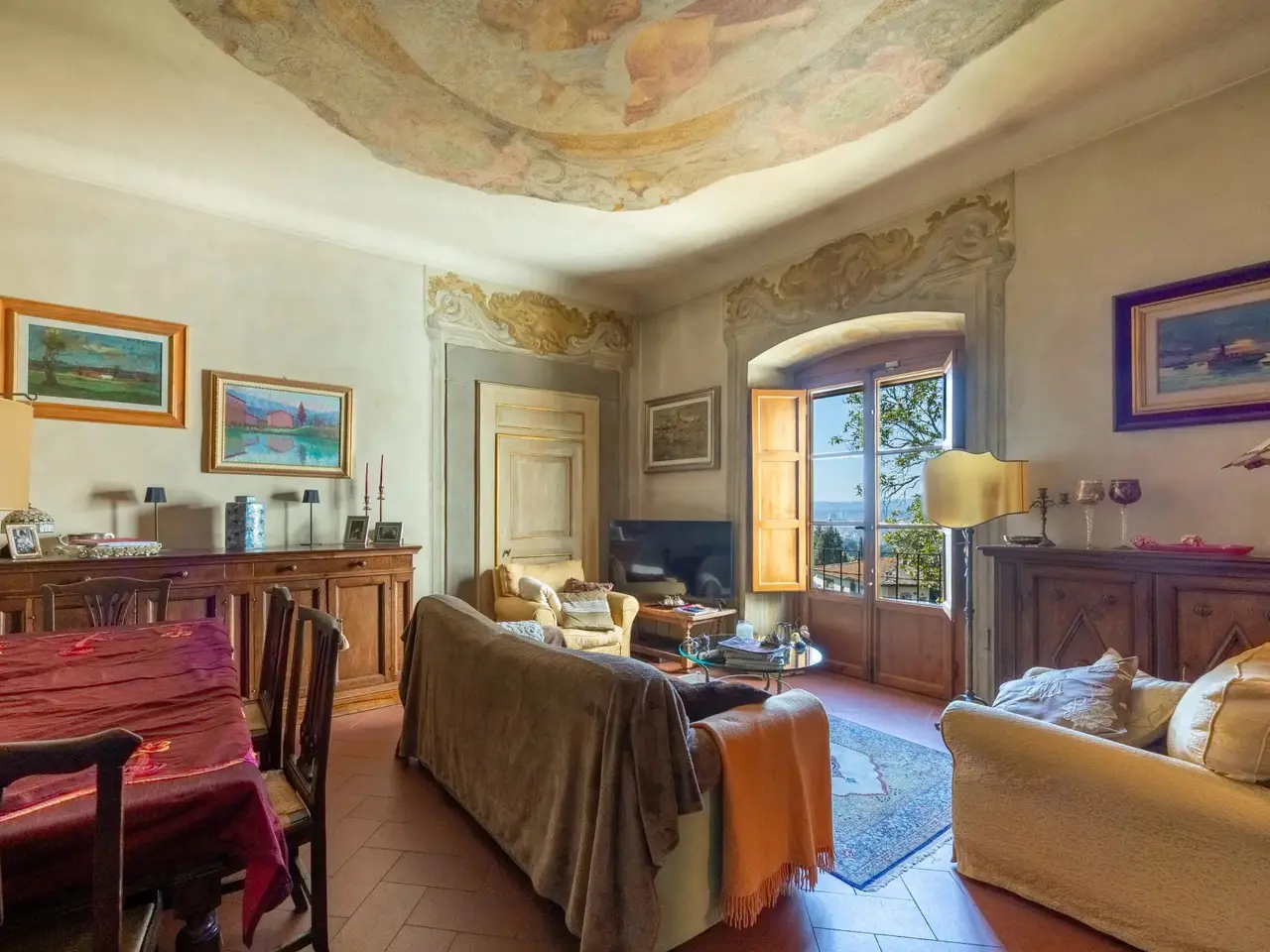 This apartment in Villa a San Domenico, Florence, is a true gem located on the slopes of the Fiesole hill. Nestled in a prestigious context, it has a garden overlooking the city, offering a breathtaking view. The panoramic loggia allows you to admire the historical monuments of Florence, creating an enchanting atmosphere. Distributed on two levels, the property is connected by an internal staircase. On the main floor, the large living room with fireplace offers natural lighting and a spectacular view, accompanied by a second living room/dining room ideal for elegant dinners. The kitchen is functional and well-equipped, while the study and the entrance give a touch of class. Here there are also two bedrooms, each with its own private bathroom. Going upstairs, there is a large living room and a versatile room, perfect for relaxing or receiving guests. A further study and a bedroom, together with a bathroom, complete this level. The splendid covered loggia, accessible from the living room, is a perfect corner for living outdoors in every season, allowing you to enjoy the surrounding beauty. The upper floor can be accessed directly through an external staircase. The property is made with traditional materials, maintaining the historical charm of the area. Three parking spaces are available in the condominium park, which guarantee comfort and convenience. This property represents a unique opportunity to live in a peaceful environment, a few steps from the beating heart of Florence.