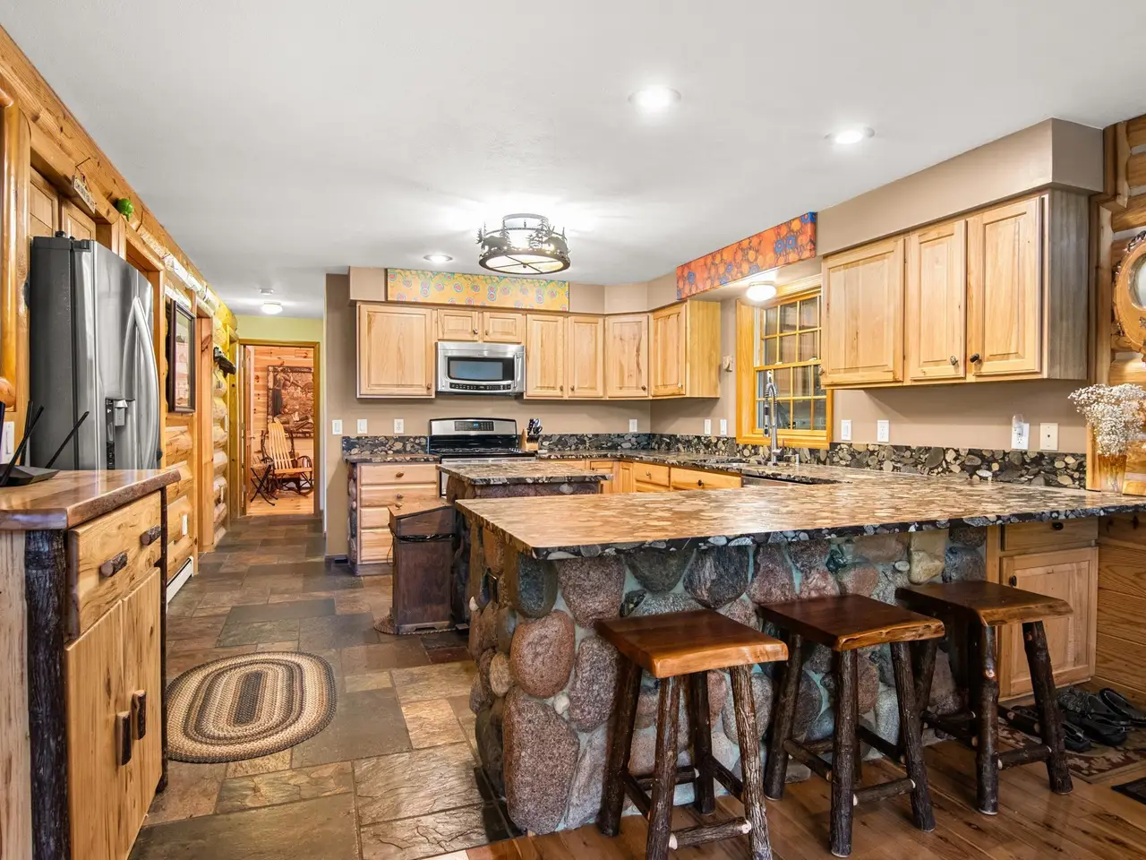 Welcome to your riverfront retreat, nestled on 262 feet of crystal-clear frontage along the scenic Manistee River--renowned for its Blue Ribbon-quality fly fishing. Whether you are casting a line or simply soaking in the serenity, this property offers the perfect blend of natural beauty and comfortable luxury. This beautifully crafted home features 5 spacious bedrooms and 3.5 bathrooms, designed to accommodate large gatherings or multi-generational getaways. The warm and inviting interior boasts Australian cypress hardwood floors, vaulted tongue-and-groove ceilings, and a true masonry stone fireplace complete with a stunning custom juniper mantel--a focal point that brings rustic elegance to the heart of the home. The thoughtful layout provides the perfect balance of open concept living and private spaces, ideal for creating lasting memories with family and friends. Whether you are entertaining indoors or enjoying the outdoors, every detail invites relaxation and connection. Step outside to immerse yourself in nature--kayaking, fishing, wildlife watching, or simply unwinding by the river. With direct access to one of Michigan's most scenic waterways, this property is a haven for outdoor enthusiasts and nature lovers alike. Do not miss the opportunity to own a rare piece of paradise on the Manistee River--where tranquility, beauty, and adventure meet.