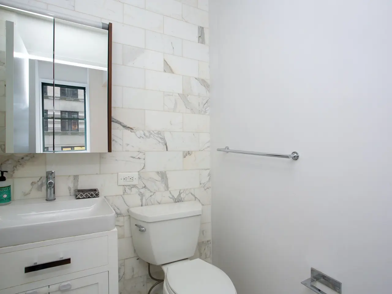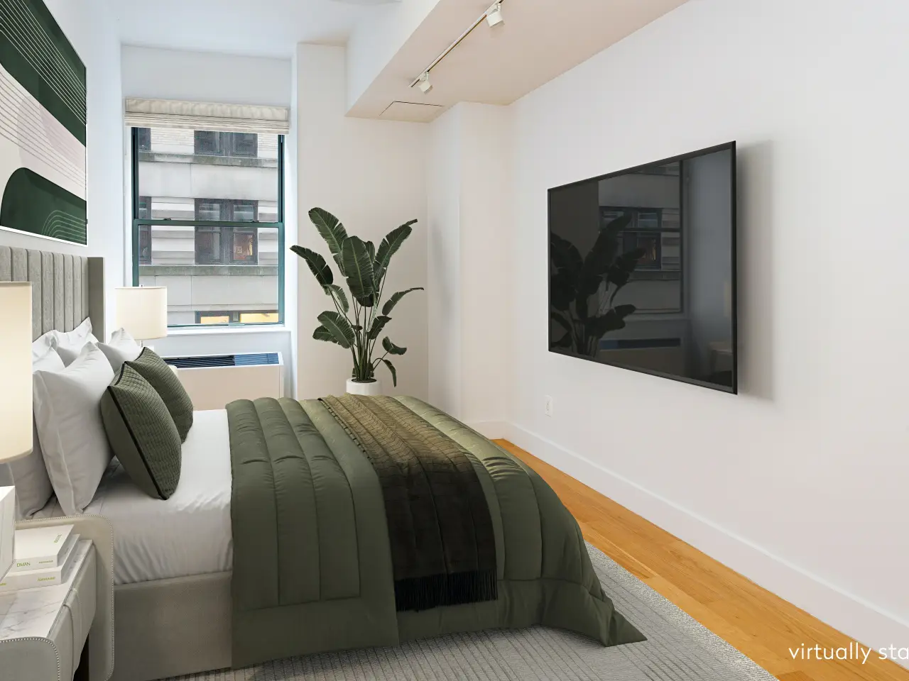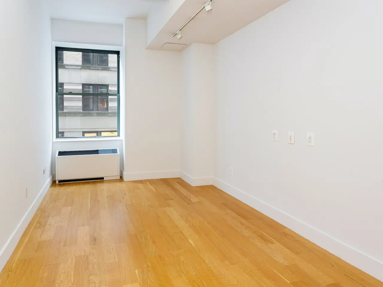 Now available at the iconic 99 John Street Deco Lofts Condominium a large versatile 1,026 Sqft 1BR-2BA with a large home office/2nd bedroom. The unit features 11 ft beamed ceilings, beautiful wide slat wood floors, a beautiful renovated kitchen with Caesar Stone countertops, Electrolux S/S appliances and an open breakfast bar. The bathroom is finished with Calcutta Marble tiled floors, counter tops, and back splash, offering a chic, clean back drop. There is ample closet space half outfitted with rods and shelving so organization is never an issue. Realizing the importance of space in New York City living; the layout is used to the utmost. 99 John Street is an amazing full service art deco condo offering a whole host of amenities while maintaining very low common charges. Amenities include a 24-hour doorman, luxury fitness room, children's playroom, residents' lounge, large outdoor Zen garden with grills, wrap-around roof deck with cabanas, valet service, separate indoor bike storage, and garage parking for an additional fee. 99 John is a block from the entrance to the Fulton Center complex (1/2/3, A/C, 4/5, N/R, J/Z, and PATH trains) and one minute from three large supermarkets including one within the building and a Whole Foods opening on Wall Street this year.