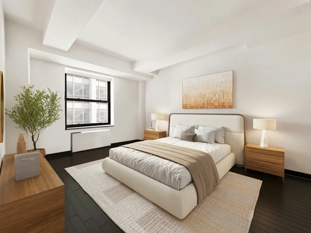 Perched high on the 27th floor, this Armani/Casa-designed one-bedroom, two-bathroom home combines clean lines with comfortable, modern living. The north-facing open living/dining area flows seamlessly into a sleek, integrated kitchen with panel-front appliances by Miele, Sub-Zero, and Fisher & Paykel, along with abundant storage, plus a W/D. The oversized bedroom suite offers a serene retreat with generous closet space and a spa-like en suite bathroom featuring a deep soaking tub and separate glass-enclosed shower. Both bathrooms are clad in handsome stone and exotic woods, and each includes recessed rain showers. Additional highlights include soaring 10'6" beamed ceilings, ebony-stained hardwood floors, contemporary recessed lighting, and a private storage unit. 20 Pine - The Collection provides an unparalleled lifestyle with white-glove 24/7 doorman service, fitness center, lap pool, Turkish hammam, spa treatment rooms, residents' lounge, golf simulator, billiards room, playroom, and a rooftop terrace. The 25th-floor Concierge Space offers even more amenities, including a residents' coffee and work lounge, as well as a landscaped terrace with a reflecting pool and cabanas. Located in the heart of FiDi, the building boasts the rare convenience of direct lower-level access to the 2/3/4/5 subway lines. Residents are also close to Fulton Center, Broadway, the New York Stock Exchange, the Seaport, and a vibrant mix of restaurants, cafés, shops, and services. Monthly capital assessment of $105.68 in place through December 2026.