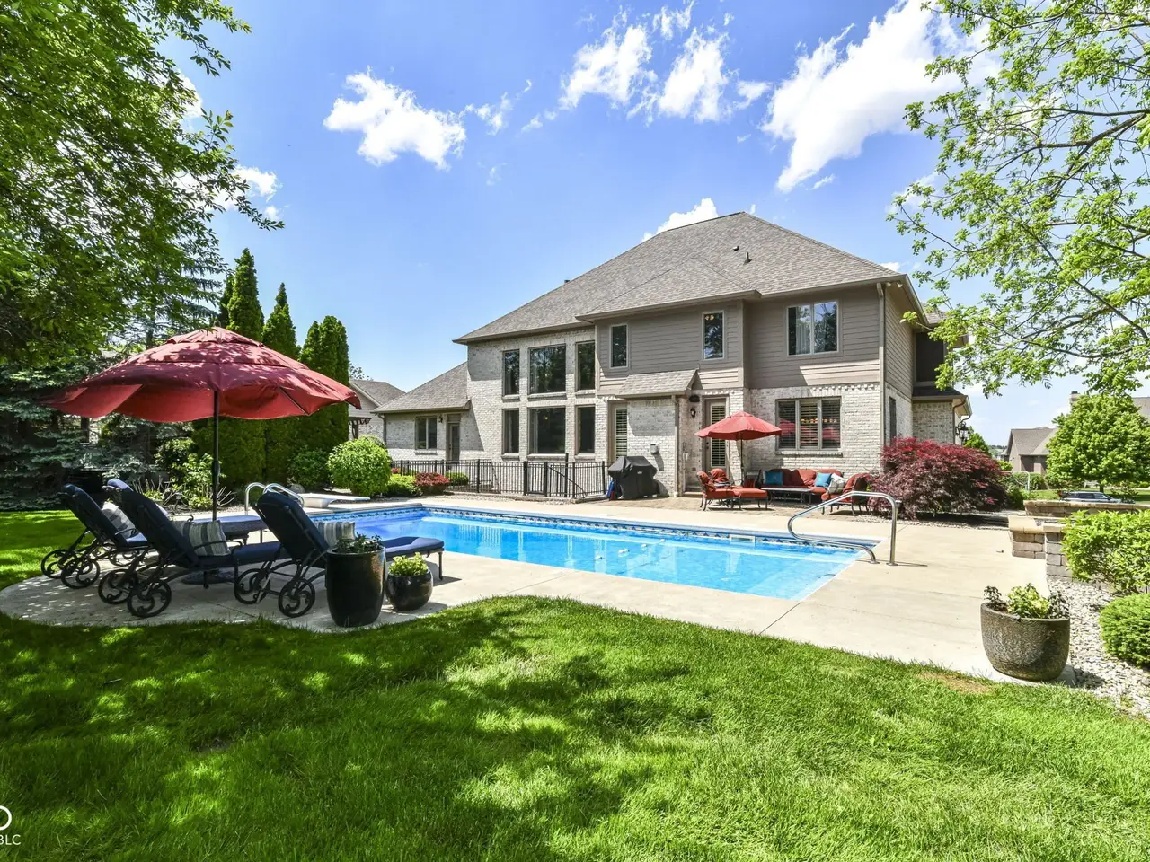 Stunning Custom home with super newer large in-ground heated pool just a short walk to your boat dock! Primary Bedroom on main floor with large custom closet. 2 story great room with plenty of natural light! Recently finished hardwoods on main floor & new wood stairs. 2 wonderful laundry rooms on main floor & one on 2nd floor. Kitchen flows into a cozy hearth room with door to patio with gas-line for grill & POOL. Basement boasts: Theatre, Bar, Bedroom, Rec/Billiard Room, WineCellar/Exercise Room, Family Room. Rich Main floor OFFICE with coffered ceiling, builtins & fireplace. 4 bedrooms upstairs with a unique little room off one of the bedrooms for play/drums/crafts/homework ~ you choose. This home is conveniently located close to shopping, schools, dining, Geist, golf, trails...etc!!!