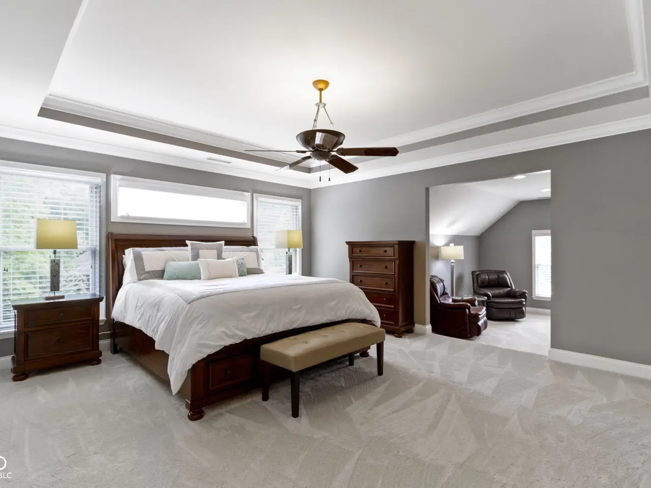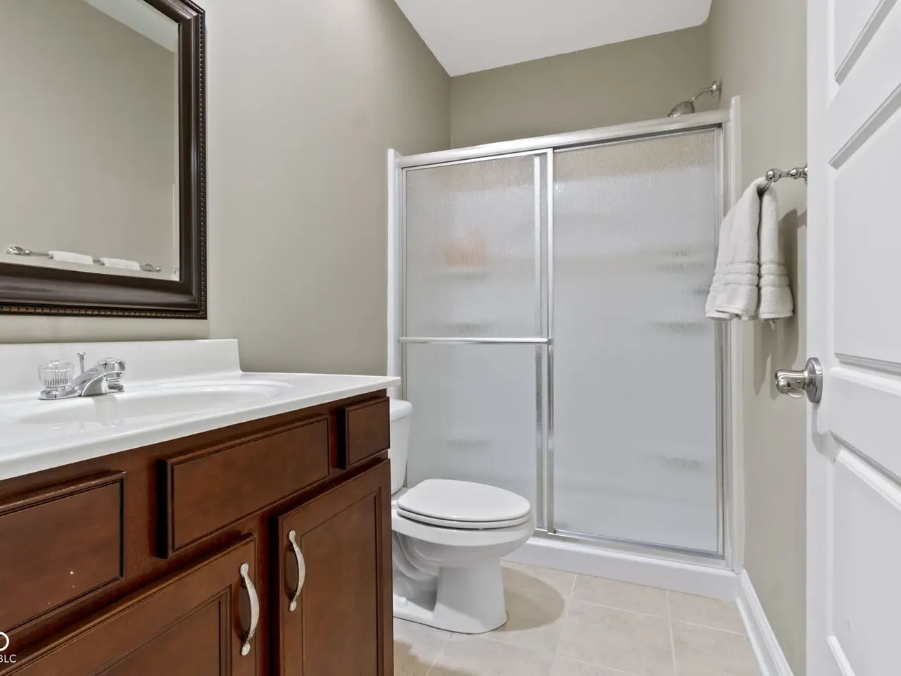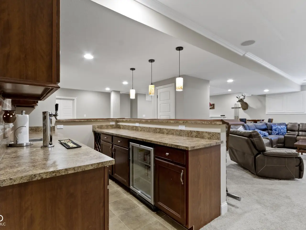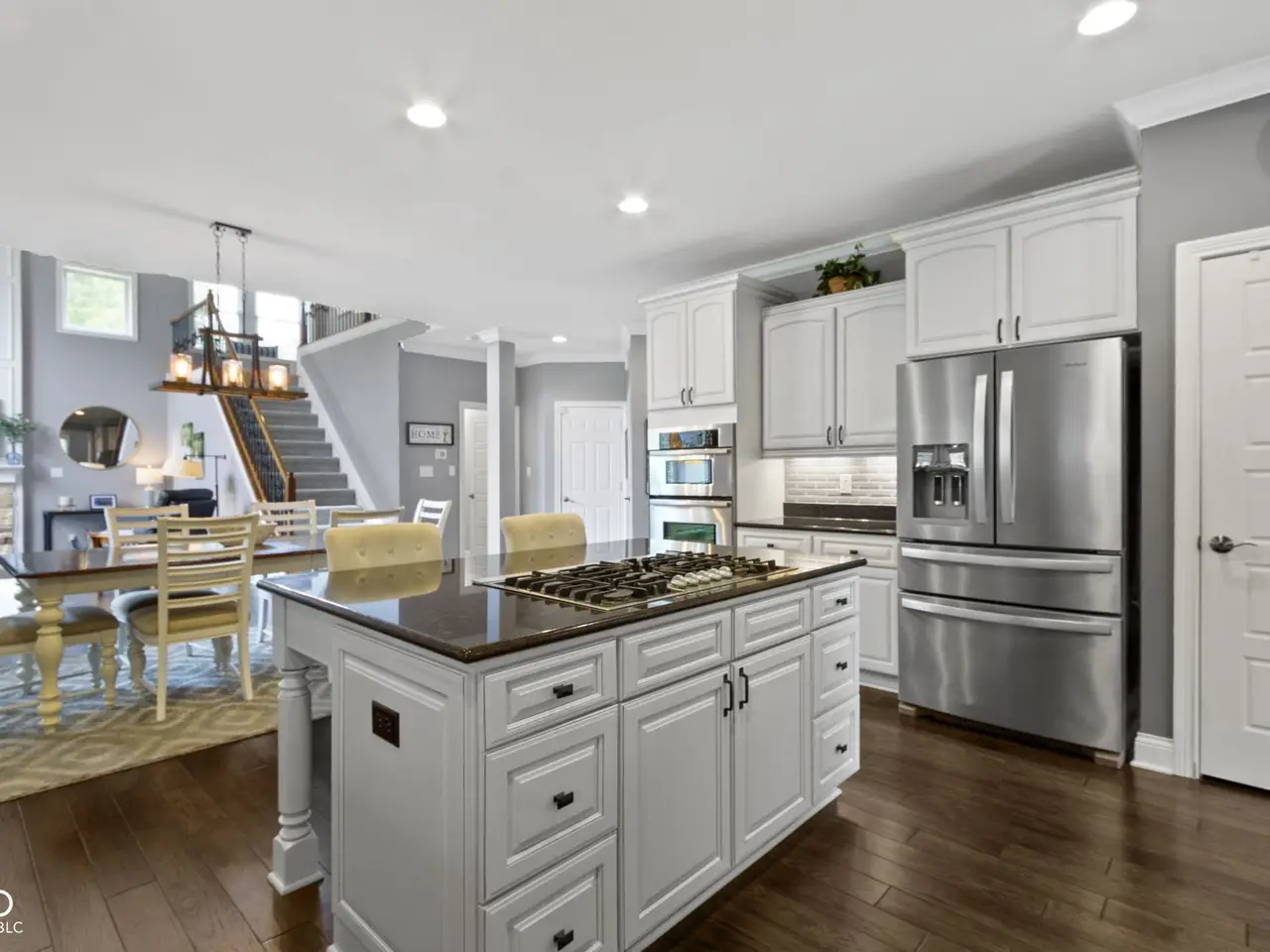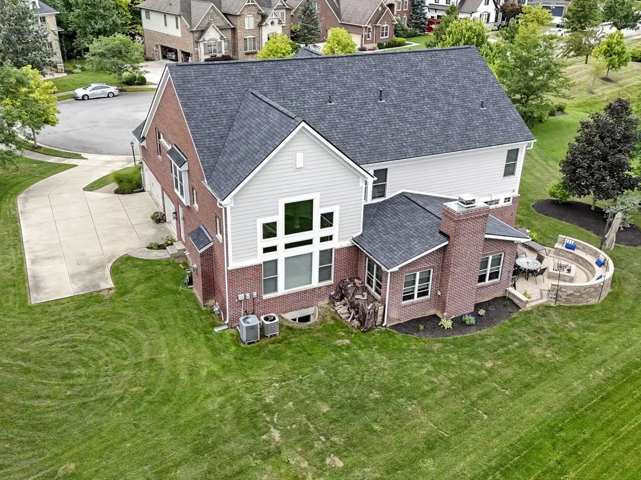 Nestled at the end of a culdesac on a premier lot, this timeless 5 bedroom/4.5 bath home awaits you in one of Fishers most desirable neighborhoods-the WOODS of THORPE CREEK! Upon arrival, you are greeted with gleaming hardwood floors and soaring 2 story foyer with detailed trim work. French double doors lead to your private office with beautiful wainscotting. A thoughtfully designed floor plan offers a separate living room and a formal dining room complete with new lighting. Large eat in kitchen is a chef's delight offering an abundance of updated white shaker cabinets, tile backsplash, granite, gas cooktop in the center island, and all stainless steel appliances ready to entertain! Speaking of entertaining, directly off the kitchen enjoy intimate gatherings in the ADDED three season room with cozy gas fireplace perfect for many months of the year! Two story great room is drenched in natural light by a wall of windows with coffered ceilings, stone gas fireplace and family friendly staircase. Upstairs find your owner's suite, three addt'l bedrooms with BRAND NEW carpet. Owner's suite includes a large sitting room, raised dual sinks, w/in shower, soaking tub, and WIC with adjustable wood shelving. Don't miss the Andersen wood core windows with detailed casings. Open walkway leads to 3 additional bedrooms that are generously sized and one with private bath. All bedrooms offer walk in closets! ESCAPE downstairs to your full finished basement with a wet bar, beverage fridge, billiard area, family/rec room and an additional bedroom with full bath. A true extension of the home with storage and closets. OUTSIDE is your amazing backyard with paver patio and firepit not to mention a large wooded side lot for added privacy, a space perfect for playset or a future pool! Home is situated on .47 acre and includes 3 car side load garage. Separate family entrance into laundry and mudroom! NEW Roof 2025 and HVAC 2023. Perfect location, don't miss this one!