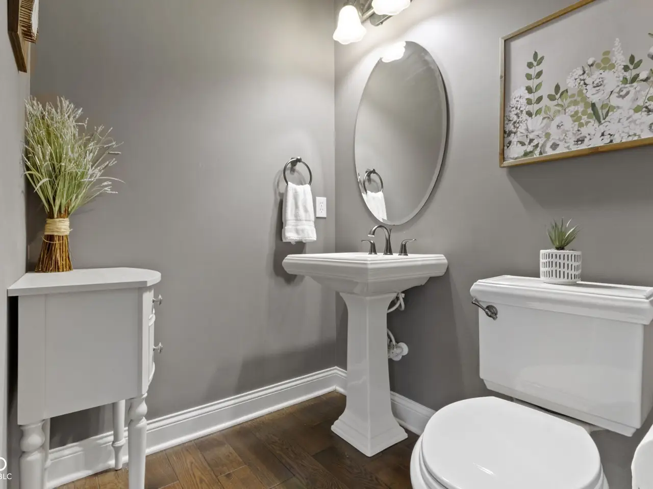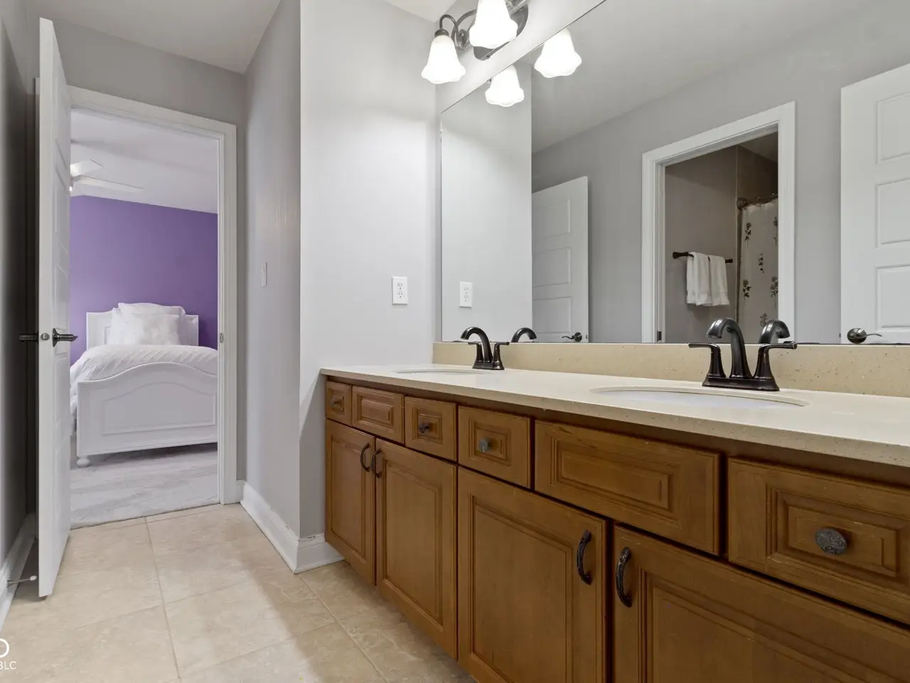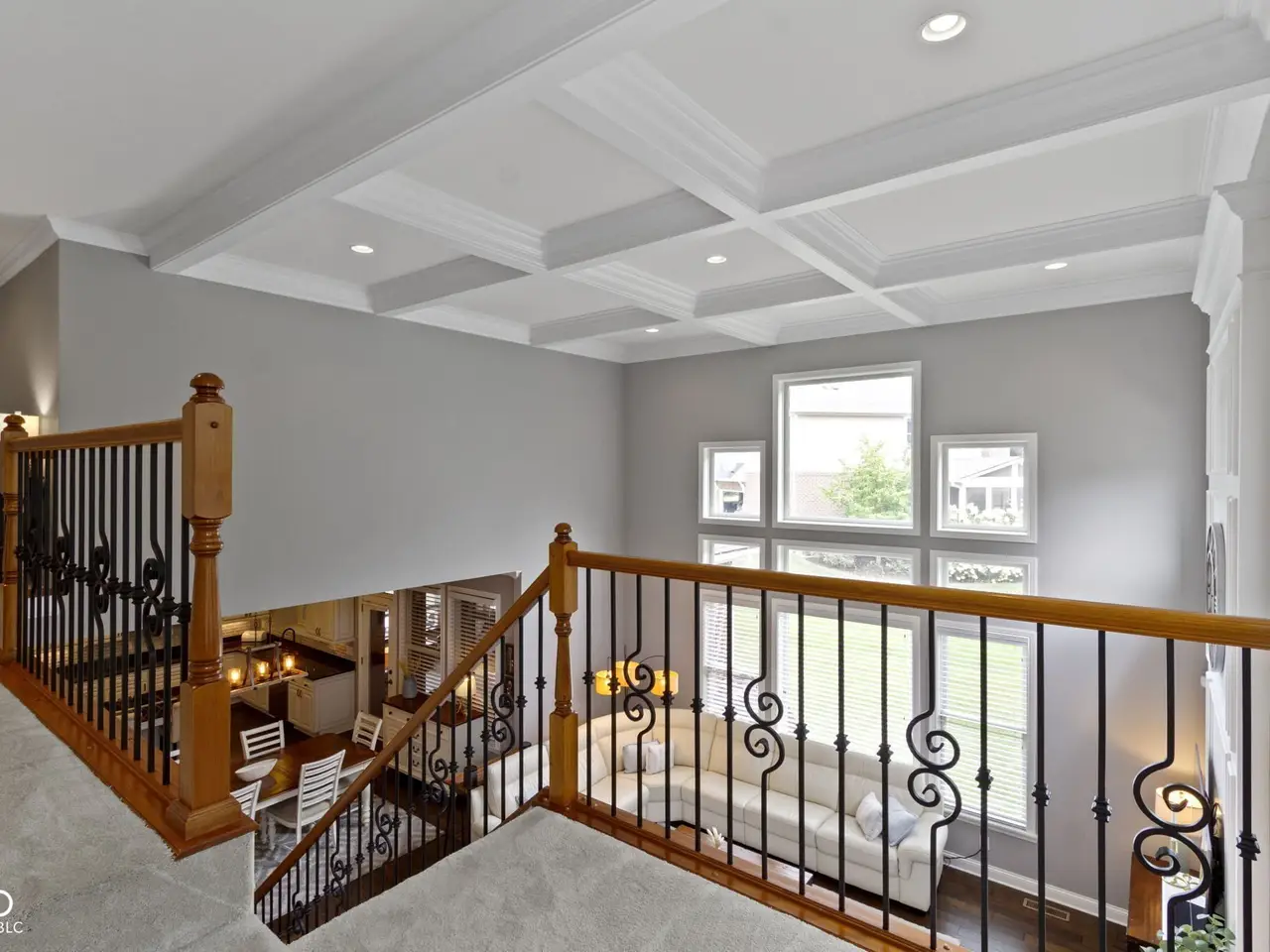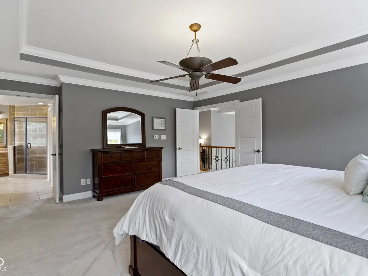 Nestled at the end of a culdesac on a premier lot, this timeless 5 bedroom/4.5 bath home awaits you in one of Fishers most desirable neighborhoods-the WOODS of THORPE CREEK! Upon arrival, you are greeted with gleaming hardwood floors and soaring 2 story foyer with detailed trim work. French double doors lead to your private office with beautiful wainscotting. A thoughtfully designed floor plan offers a separate living room and a formal dining room complete with new lighting. Large eat in kitchen is a chef's delight offering an abundance of updated white shaker cabinets, tile backsplash, granite, gas cooktop in the center island, and all stainless steel appliances ready to entertain! Speaking of entertaining, directly off the kitchen enjoy intimate gatherings in the ADDED three season room with cozy gas fireplace perfect for many months of the year! Two story great room is drenched in natural light by a wall of windows with coffered ceilings, stone gas fireplace and family friendly staircase. Upstairs find your owner's suite, three addt'l bedrooms with BRAND NEW carpet. Owner's suite includes a large sitting room, raised dual sinks, w/in shower, soaking tub, and WIC with adjustable wood shelving. Don't miss the Andersen wood core windows with detailed casings. Open walkway leads to 3 additional bedrooms that are generously sized and one with private bath. All bedrooms offer walk in closets! ESCAPE downstairs to your full finished basement with a wet bar, beverage fridge, billiard area, family/rec room and an additional bedroom with full bath. A true extension of the home with storage and closets. OUTSIDE is your amazing backyard with paver patio and firepit not to mention a large wooded side lot for added privacy, a space perfect for playset or a future pool! Home is situated on .47 acre and includes 3 car side load garage. Separate family entrance into laundry and mudroom! NEW Roof 2025 and HVAC 2023. Perfect location, don't miss this one!