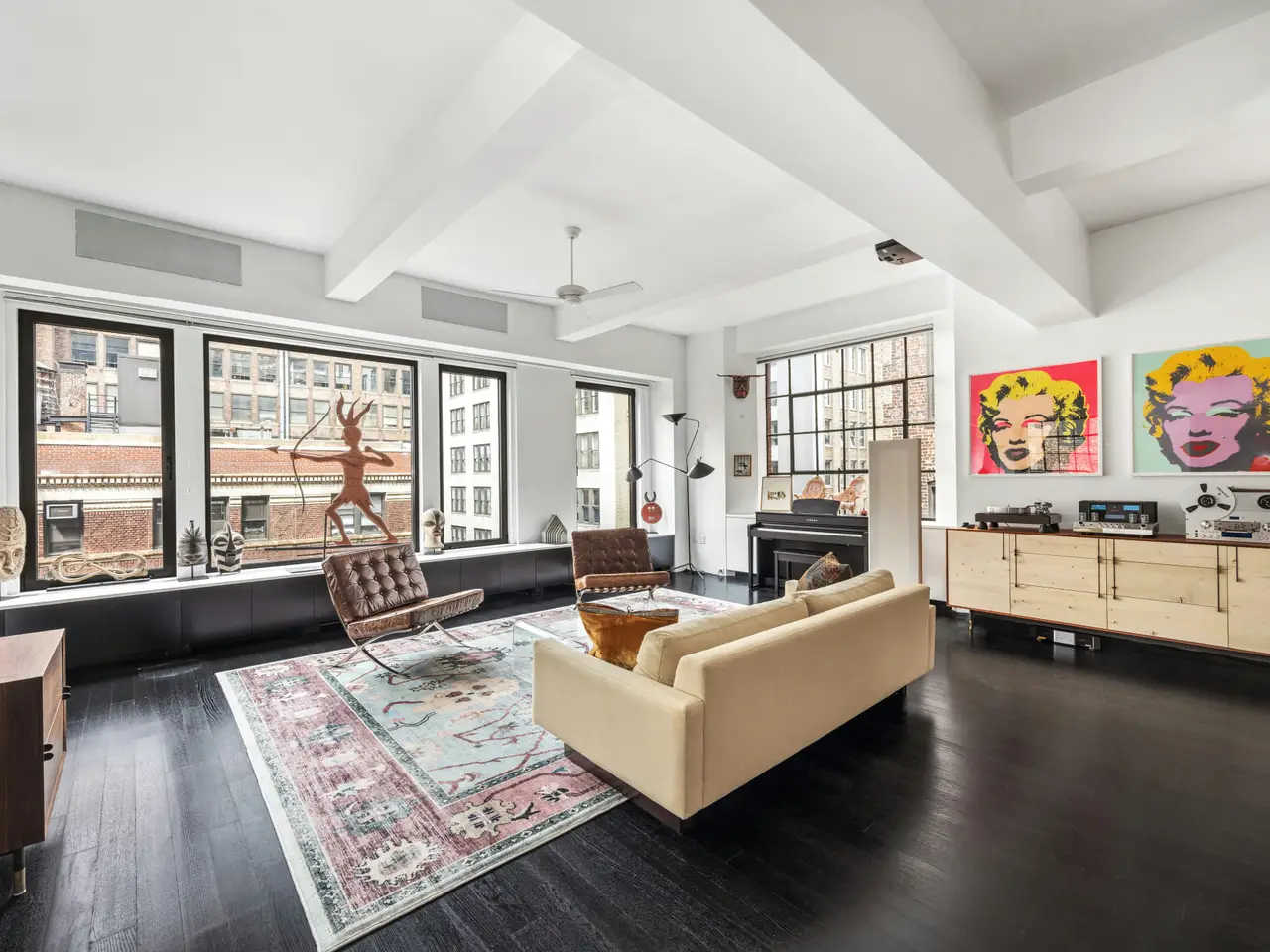 Loft Living in NoMad with Iconic Views Accessed directly by a keyed elevator, this full-floor loft offers grand-scale living in a boutique pre-war co-op. Oversized windows on all four exposures blanket the residence with natural light and showcase city vistas, including views of the iconic Empire State Building. With 18 windows and 14 closets, this home balances extraordinary scale with exceptional functionality, an ideal combination in one of Manhattan's most coveted neighborhoods. Apartment features include: 3 Bedrooms, 2 Bathrooms - Full-floor loft residence Expansive Layout - Approx. 83' north to south and 32' east to west (per offering plan) Private Entry - Direct access via keyed passenger and freight elevators Soaring Scale - Approx. 11' ceilings and oversized casement windows facing North, South, East, and West provide an abundance of natural light Corner Living Room - With north and east exposures, Empire State Building views, beamed ceilings, and custom built-in cabinetry Open Chef's Kitchen - Windowed, with exceptional counter and storage space plus a 16-seat center dining island Premier Appliances - Two Wolf 6-burner ranges and hood, under-cabinet Sub-Zero refrigerator, Sub-Zero 48b wine fridge, and Miele dishwasher Additional Pantry Room - Featuring Liebherr refrigerator and Sub-Zero wine fridge Primary Suite Retreat - King-sized corner bedroom (south and east exposures) with two closets, including WIC, and windowed en suite bath Primary En Suite - Windowed, custom built-ins, marble double vanity, and spa-like wet room with glass-enclosed shower and soaking tub Secondary Bedrooms - Large second bedroom with east exposure and three closets; third corner bedroom with north and west exposures Additional Bath - Windowed, with marble vanity and soaking tub Laundry Room - Outfitted with Miele washer/dryer Modern Comforts - Central air, hardwood floors, mounted projector and screen system, built-in speaker system This cooperative is home to just eight full-floor residences-one per floor-providing an uncommon sense of exclusivity and privacy. Residents enjoy a common roof deck, sophisticated video intercom security system, basement storage, and weekday superintendent M-F, 8am-4pm, who handles deliveries. Perfectly positioned in the heart of dynamic NoMad, the building is surrounded by world-class dining and shopping, and is just moments away from renowned Madison Square Park. Excellent transportation options include the 6, N, R, and W trains. Subletting, co-purchasing, guarantors, parent participation, corporate ownership, live/work arrangements, and pied-à-terre are all permitted. Financing is allowed up to 80%. This is a pet friendly community.
