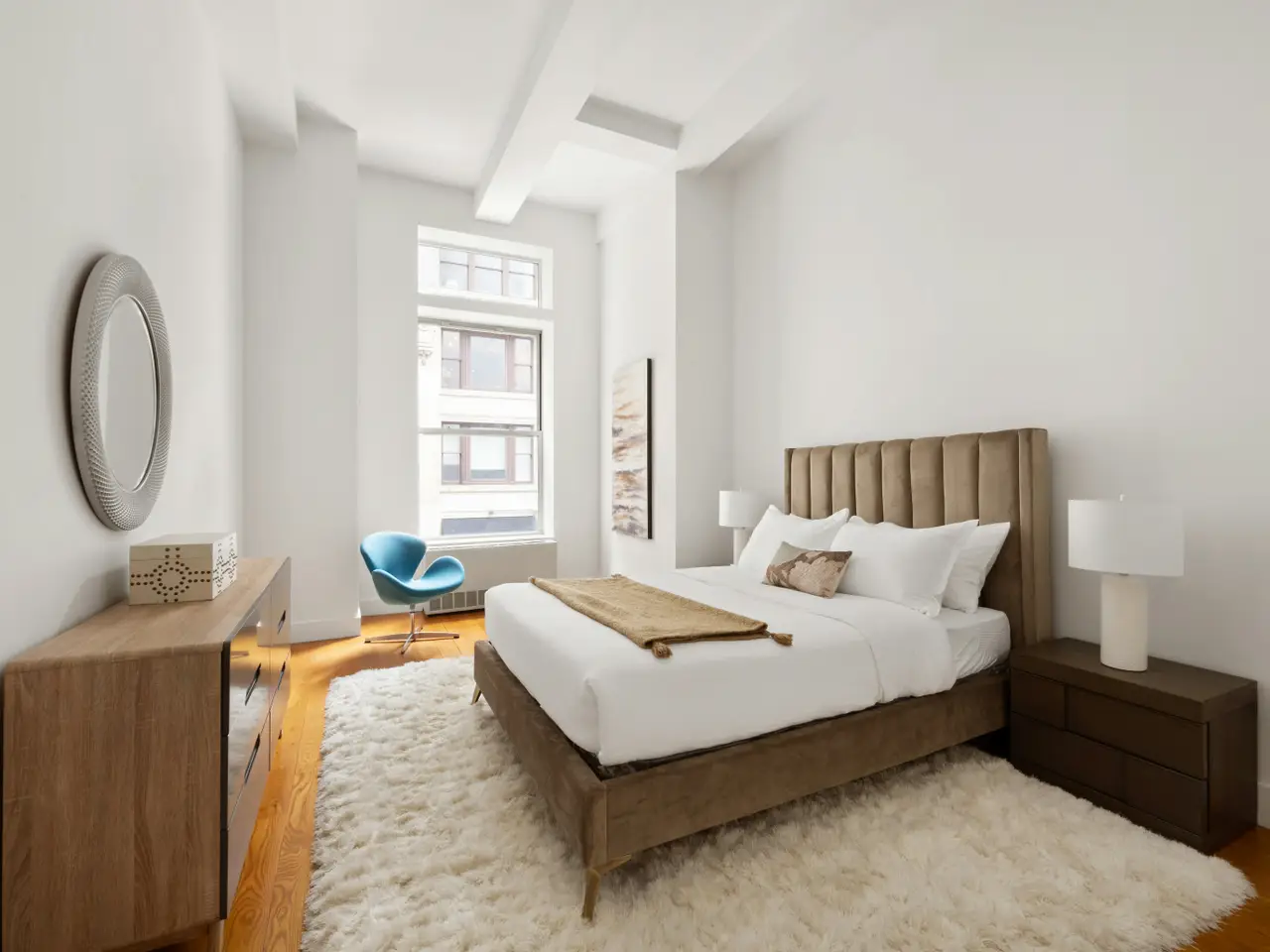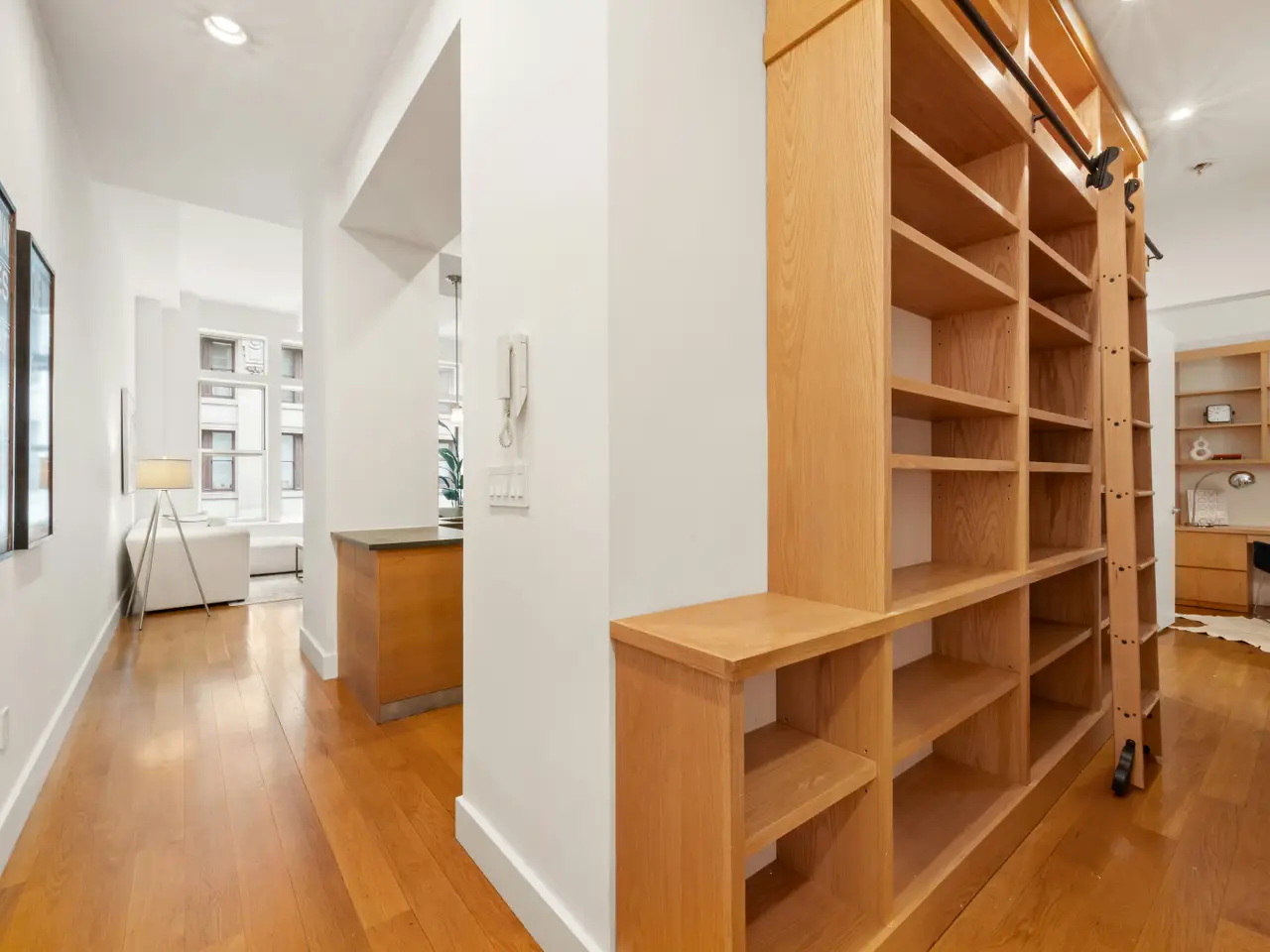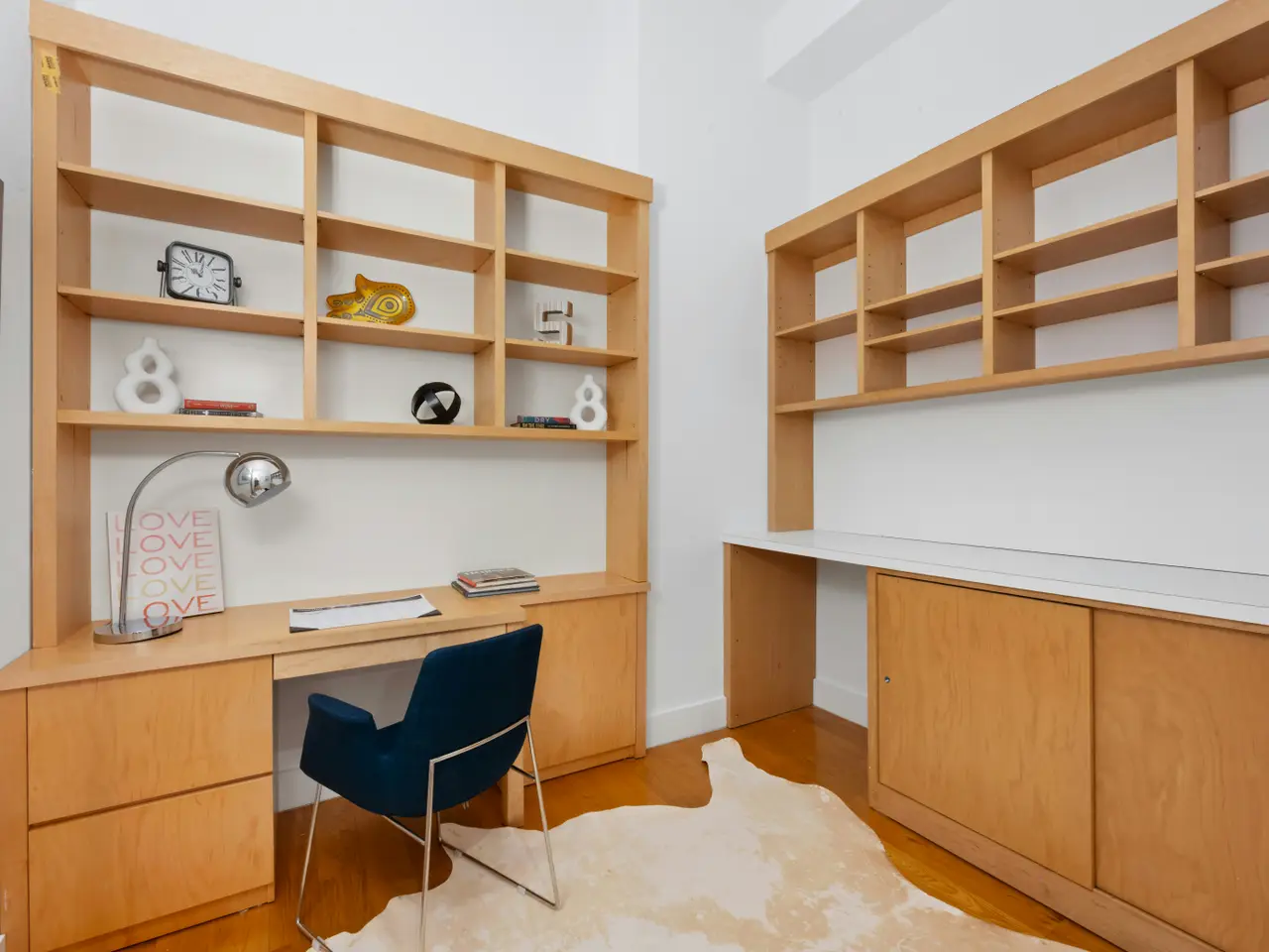 Spacious & Sunny Condo in Prime Flatiron Location The Apartment Introducing #2B at 49 East 21st Street. This spacious 1 bed/2bath condo + home office is located in a charming pre-war building adjacent to Park Avenue South and Gramercy Park, offers the perfect blend of historic elegance and modern luxury. With expansive, almost 13-foot-high beamed ceilings and oversized south-facing windows, This bright and inviting residence is a true treasure in the heart of New York City. The spacious, open-concept living area boasts stained oak plank flooring and custom built-in wood bookcases, creating a warm and inviting atmosphere. The chef's kitchen features stone countertops, a Italian glass mosaic backsplash, and top-of-the-line stainless steel appliances, including a Bosch stovetop and oven. The large primary suite is a peaceful retreat, offering three generous closets and an en-suite bathroom with dual vanity areas, an enclosed shower, and elegant Italian glass mosaics. An additional interior room, perfect for a second bedroom or home office, has easy access to the 2nd full bathroom which features a large soaking tub, Italian glass mosaics and floating vanity. This home also features an in-unit washer and dryer, with a private storage space included within the building, adding to the convenience and functionality. The Building: Set within a boutique, pet-friendly pre-war condominium, this full-service building includes an elevator, full-time doorman, and a beautifully landscaped roof deck. Centrally located in the heart of Flatiron, the condo is surrounded by Madison Square Park, Gramercy Park, and Union Square, with easy access to world-class shopping, dining, and entertainment. Public transportation options are abundant, including the 6, N, R, W lines at 23rd Street Station and the 4, 5, 6, L, N, Q, R, W lines at the nearby 14th Street-Union Square transportation hub. Don't miss this opportunity to own a piece of NYC history with all the comforts of modern living.