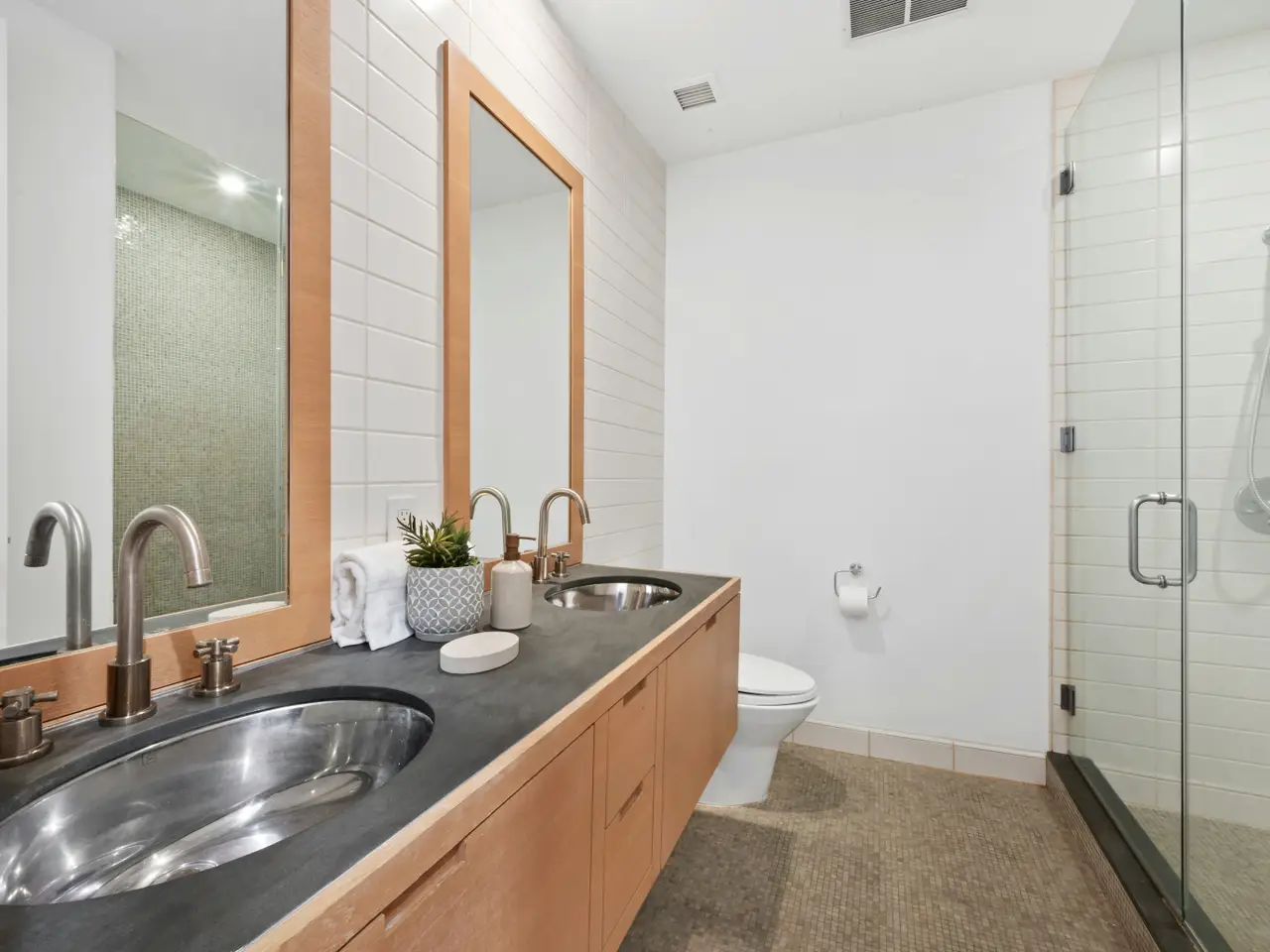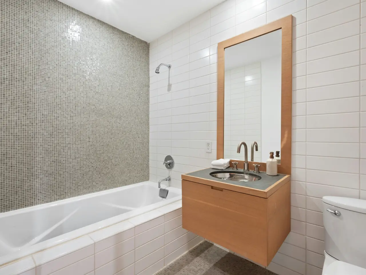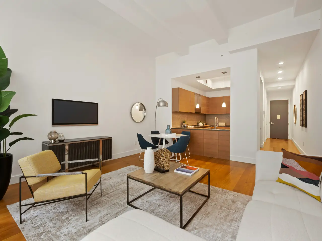 Spacious & Sunny Condo in Prime Flatiron Location The Apartment Introducing #2B at 49 East 21st Street. This spacious 1 bed/2bath condo + home office is located in a charming pre-war building adjacent to Park Avenue South and Gramercy Park, offers the perfect blend of historic elegance and modern luxury. With expansive, almost 13-foot-high beamed ceilings and oversized south-facing windows, This bright and inviting residence is a true treasure in the heart of New York City. The spacious, open-concept living area boasts stained oak plank flooring and custom built-in wood bookcases, creating a warm and inviting atmosphere. The chef's kitchen features stone countertops, a Italian glass mosaic backsplash, and top-of-the-line stainless steel appliances, including a Bosch stovetop and oven. The large primary suite is a peaceful retreat, offering three generous closets and an en-suite bathroom with dual vanity areas, an enclosed shower, and elegant Italian glass mosaics. An additional interior room, perfect for a second bedroom or home office, has easy access to the 2nd full bathroom which features a large soaking tub, Italian glass mosaics and floating vanity. This home also features an in-unit washer and dryer, with a private storage space included within the building, adding to the convenience and functionality. The Building: Set within a boutique, pet-friendly pre-war condominium, this full-service building includes an elevator, full-time doorman, and a beautifully landscaped roof deck. Centrally located in the heart of Flatiron, the condo is surrounded by Madison Square Park, Gramercy Park, and Union Square, with easy access to world-class shopping, dining, and entertainment. Public transportation options are abundant, including the 6, N, R, W lines at 23rd Street Station and the 4, 5, 6, L, N, Q, R, W lines at the nearby 14th Street-Union Square transportation hub. Don't miss this opportunity to own a piece of NYC history with all the comforts of modern living.