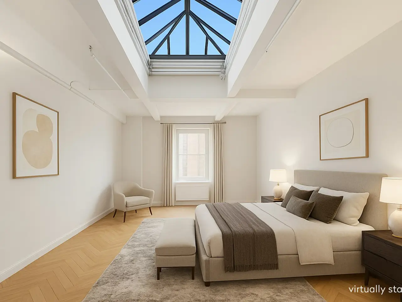 This extra wide, 4,000SF penthouse loft with private roof is located at the crossroads of Gramercy, Flatiron and Nomad and offers a myriad of lifestyle possibilities. Currently set up as a dramatic 4BR penthouse residence with rooftop terrace plus a large separate sky-lit studio, this versatile property strikes the perfect balance between live and work, or, can be completely reimagined to create one of Downtown's most extraordinary penthouse homes! Step off the key-locked elevator to a private landing where separate entrances lead to both the residence and the private studio. Upon entering the residence, a foyer leads to a breathtaking 40-foot wide Living/Dining room bathed in natural light with 11-foot beamed ceilings, gorgeous slate floors, a working fireplace and unobstructed views of midtown Manhattan from a wall of double glazed windows. Just beyond, you'll find the large windowed chef's kitchen with abundant cabinetry and professional stainless steel appliances. Nearby, a comfortable den easily converts to a bedroom, while a separate hallway leads to two bright bedrooms and two full bathrooms. Off the living room, a wide curved staircase leads up to the sun-blasted penthouse level currently used as a primary bedroom suite replete with a full bathroom and access to a large private roof terrace with multiple seating areas and sweeping views of the Chrysler Building and the city beyond. Completely separate from the residence, dual entrances lead a large dramatic sky-lit studio with two bright exposures and access to a separate kitchen. This wonderful space is completely independent or can be joined with the main residence to create a magnificent six bedroom home. The options are endless! Additional amenities include multi-zoned central air-conditioning, a vented washer-dryer, tons of storage space and custom lighting on dimmers throughout. Built in 1912, and converted to cooperative in 1981, the 12-story steel and concrete building features a dramatic lobby, a key-locked passenger elevator and separate freight elevator, an on-site superintendent Monday-Friday, and a Butterfly virtual doorman system compatible with your smart phone, allowing you to communicate remotely with vendors, accept packages and provide access for guests. And of course there's the convenient location right off of Park Avenue, in close proximity to the neighborhood's best restaurants, shopping, Eataly, Madison Square Park and all modes of public transportation. A unique and flexible offering with the best that New York has to offer right at your doorstep! Shown by appointment only