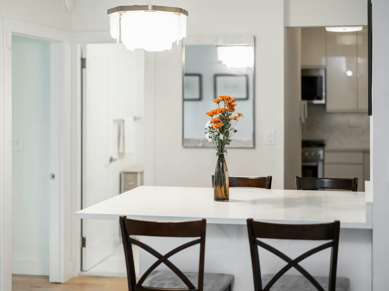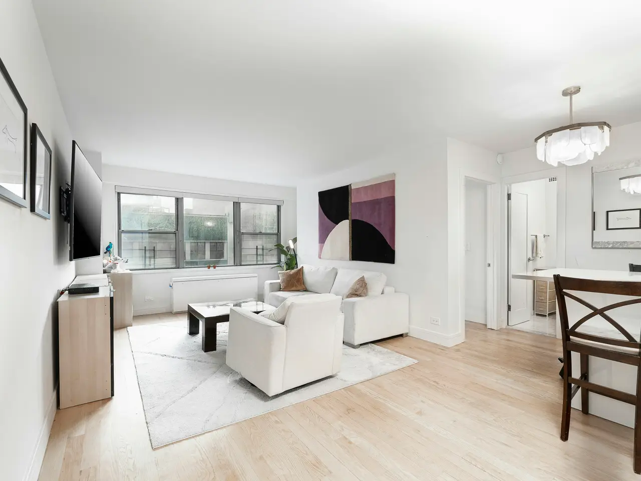 Behold this sun-soaked sanctuary--a spacious, recently renovated two-bedroom, one-and-a-half-bath home that feels both elevated and effortless. Every room is kissed by southern light, the kind that drifts gently through the trees and paints soft golden patterns on your walls--a daily reminder that even in the city that never sleeps, serenity still finds its way home. Enter into the home, and you'll experience a welcoming hallway lined with abundant closets that open like a prelude, whispering promise and practicality. Then, the living room unfolds, perfectly proportioned, polished yet playful, framed by a wall of windows that invite the afternoon sun to linger and stay awhile. Here, light isn't just illumination; it's the language of luxury. Your renovated kitchen gleams with sleek stainless-steel appliances--a quiet symphony of steel and style. The wine refrigerator hums softly, a lullaby for connoisseurs; countertops glisten like calm waters under the morning light. Modern elegance meets timeless taste, where every meal becomes both ritual and reward. The split-bedroom layout is an ode to privacy. Your primary suite, tucked gracefully to the left, features an en-suite bathroom that sparkles with spa-like finishes and modular closets ready to cradle couture and calm alike. To the right, the second bedroom awaits--perfect as a nursery, study, guest retreat, or creative corner--versatile as your own ambition. Nearby, the half bath ensures guests feel every ounce of the home's thoughtful design. At The Parker Gramercy, service smiles before you ask. A 24-hour doorman and concierge, live-in superintendent, on-site valet, dry-cleaning, and laundry facilities compose a daily symphony of ease. Maintenance fees remain mercifully low, proof that luxury need not shout to be heard. Venture outside, and the city's heartbeat quickens: Union Square's energy, Chelsea's galleries, Flatiron's dining delights, and the Village's timeless verve all converge at your door. Whole Foods, Trader Joe's, Wegmans, and the famed Greenmarket are your daily companions, while nearby subways and buses keep the entire city within reach. The Parker Gramercy considers an array of purchasing options: up to 75% financing, pieds-à-terre, parents buying with children, guarantors, gifting, and trust ownership are each considered thoughtfully and on a case-by-case basis. Experience Apartment 1014 at The Parker Gramercy: where Flatiron meets Chelsea, Union Square flirts with Greenwich Village, and downtown charm meets uptown poise.