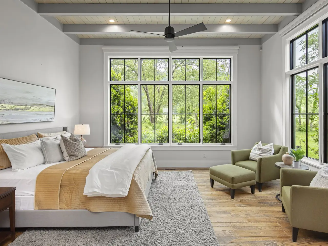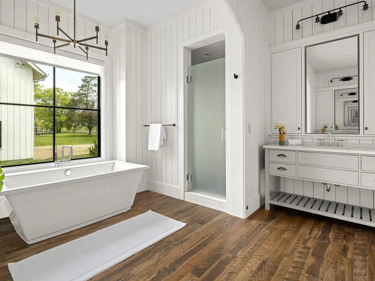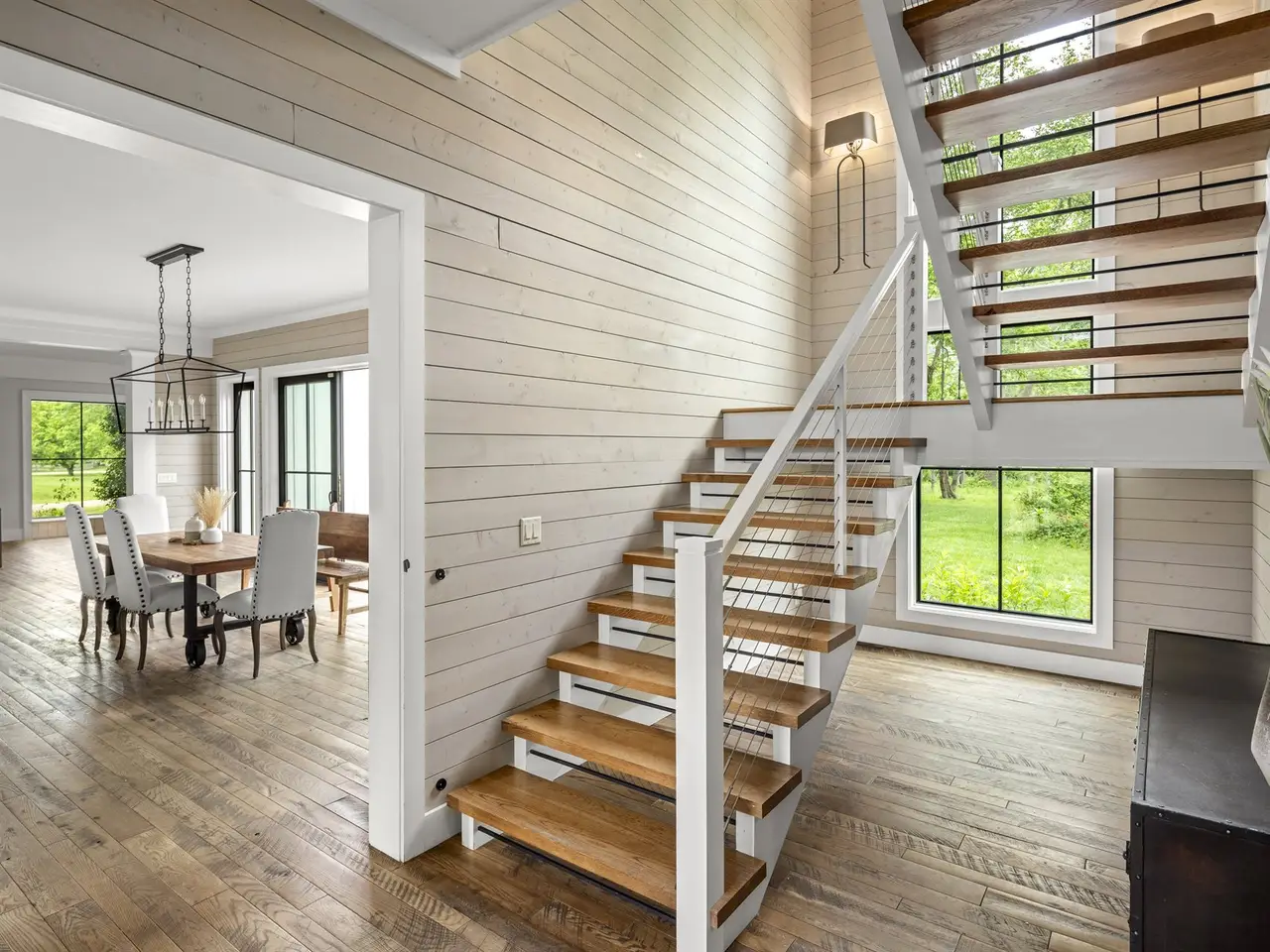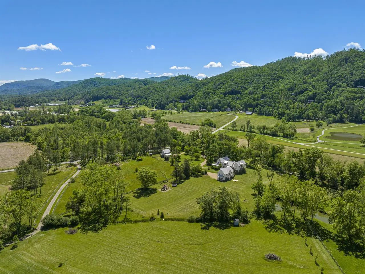 Nestled in the serene mountains of Western North Carolina, this modern farmhouse sits on over 10 private acres along a stocked trout stream. The estate features a spacious 4-bedroom main house, each bedroom with its own en suite bath, complemented by a cozy 2-bedroom guest house. You'll also find a barn with a stable, a charming chicken coop, and pens for other farm animals, all surrounded by ample pasture space perfect for livestock or gardening. A detached garage houses a home gym and sauna, supporting a healthy, whole-body lifestyle. This inviting retreat offers the perfect blend of privacy and simplicity, ideal for those seeking a peaceful mountain lifestyle with plenty of room for animals and outdoor living?all just 6 miles from Whole Foods, 7.5 miles to Fresh Market, 7.5 miles to the entrance to the Blue Ridge Parkway, 13.7 miles to Beautiful Biltmore Estate, and all the fabulous shopping and dining in between!