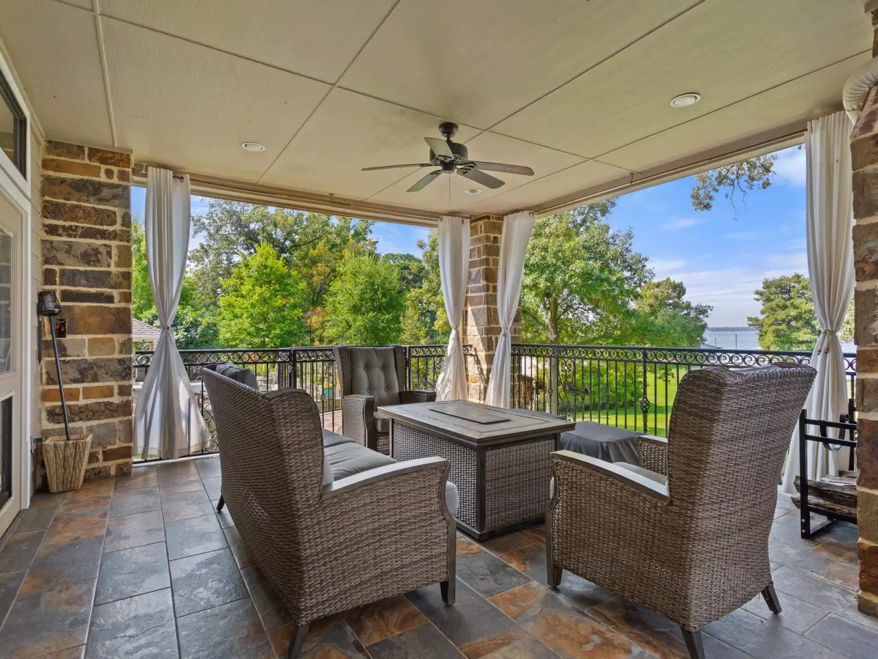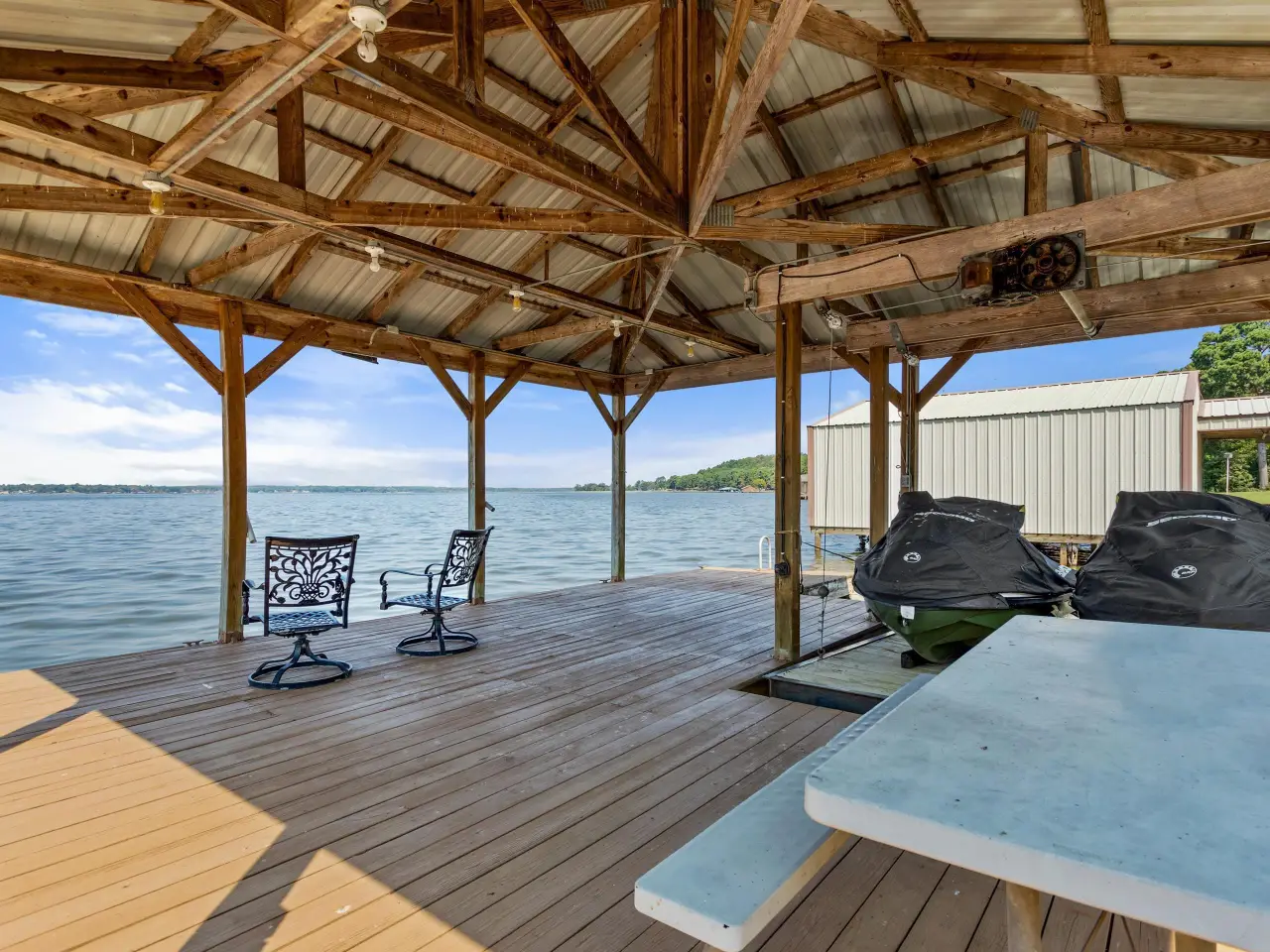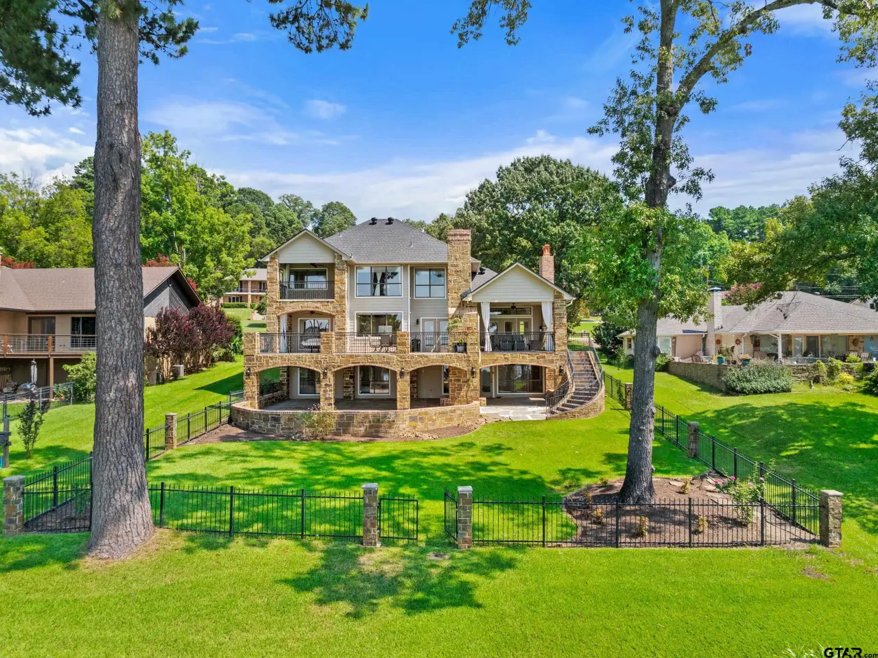 This stunning 3,850 sq. ft. home is beautifully situated on a half-acre lot along the shores of Lake Palestine. Offering four bedrooms and three and a half baths, this property is designed for both comfort and entertainment. The home features a massive two-level outdoor entertaining space with a see-through fireplace enjoyed from both levels, perfect for gathering year-round. The private third-floor primary suite includes a spacious ensuite and its own balcony with sweeping lake views. Out on the water, the property boasts a fully equipped boat dock with a covered boat lift, double jet ski lift, and a shaded patio area for lakeside relaxation. Recent updates include a new roof 2023, replaced entire entertaining deck on main level 2023, ensuring peace of mind and long-term enjoyment. Replaced seawall 2022, Three HVAC units one replaced in 2022, new water heater 2025. This is truly a one-of-a-kind property and an absolute must see for anyone seeking luxury lakeside living on Lake Palestine.
