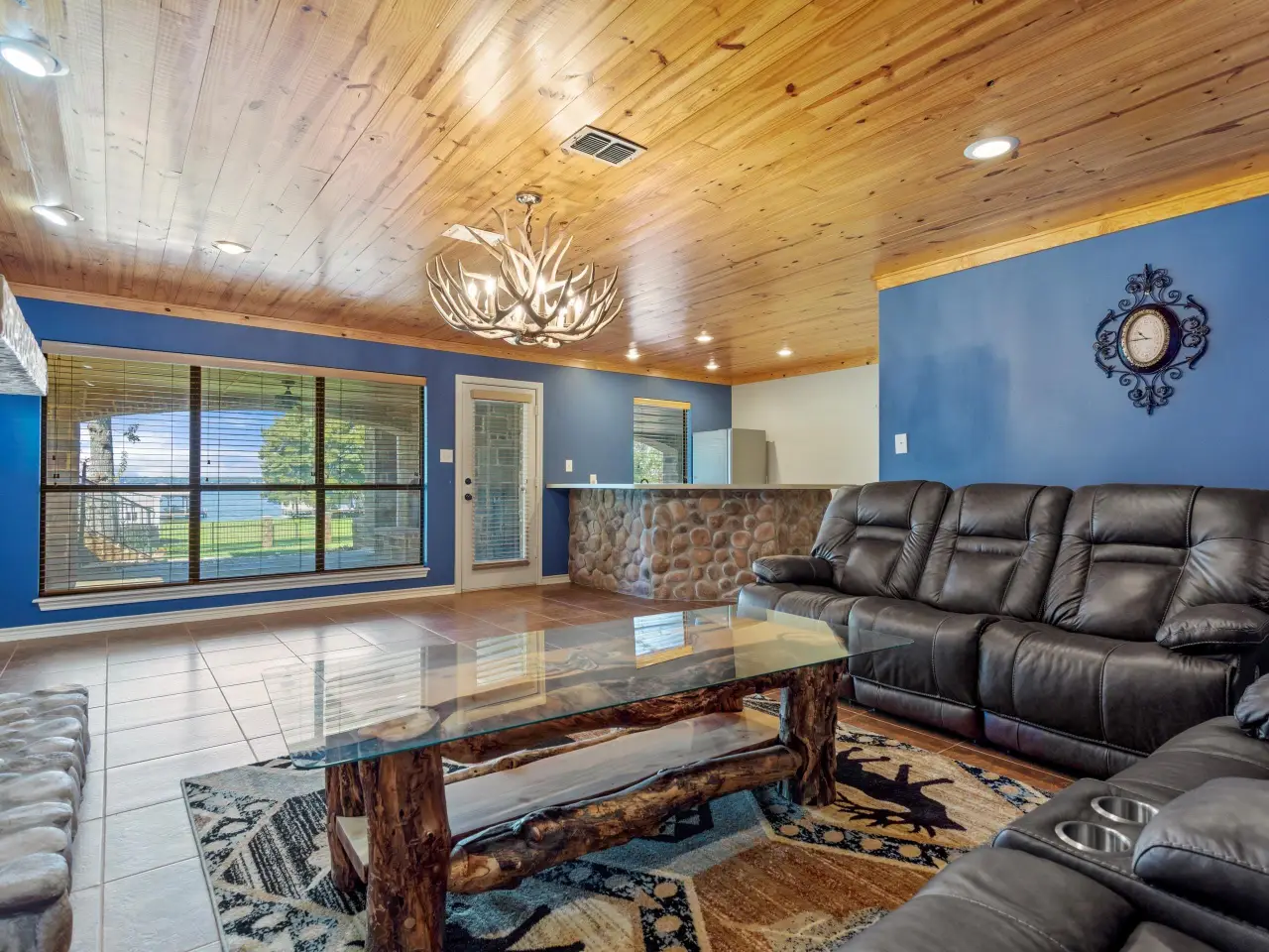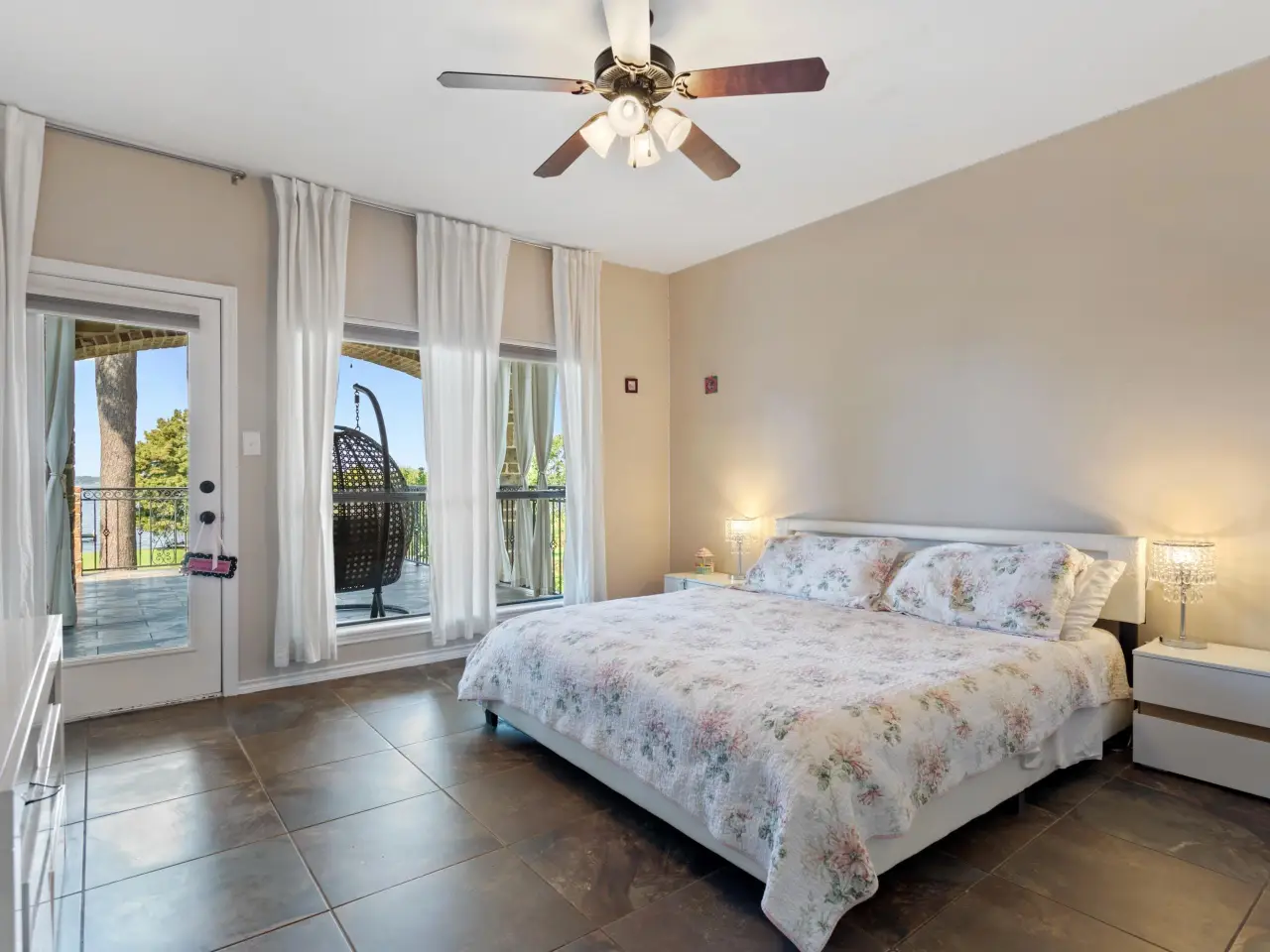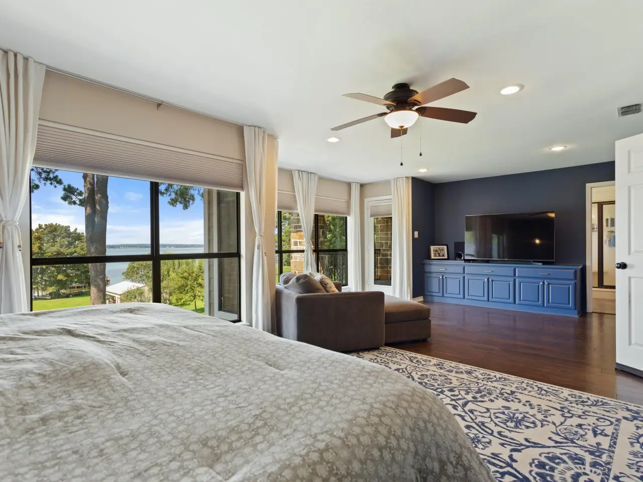 This stunning 3,850 sq. ft. home is beautifully situated on a half-acre lot along the shores of Lake Palestine. Offering four bedrooms and three and a half baths, this property is designed for both comfort and entertainment. The home features a massive two-level outdoor entertaining space with a see-through fireplace enjoyed from both levels, perfect for gathering year-round. The private third-floor primary suite includes a spacious ensuite and its own balcony with sweeping lake views. Out on the water, the property boasts a fully equipped boat dock with a covered boat lift, double jet ski lift, and a shaded patio area for lakeside relaxation. Recent updates include a new roof 2023, replaced entire entertaining deck on main level 2023, ensuring peace of mind and long-term enjoyment. Replaced seawall 2022, Three HVAC units one replaced in 2022, new water heater 2025. This is truly a one-of-a-kind property and an absolute must see for anyone seeking luxury lakeside living on Lake Palestine.