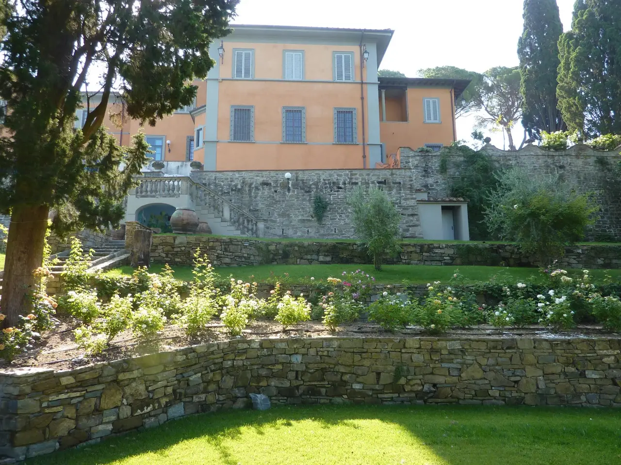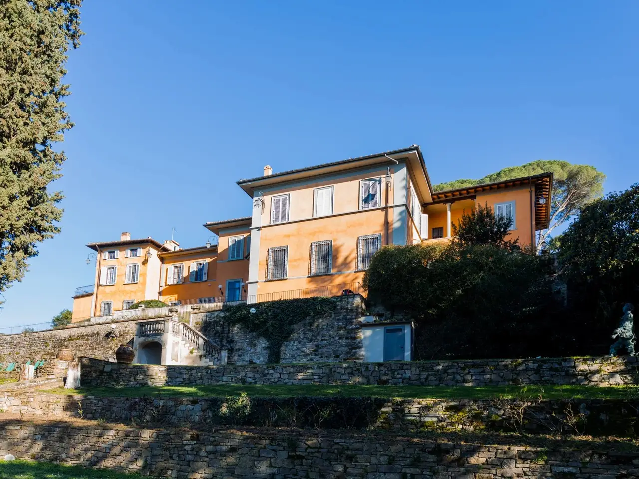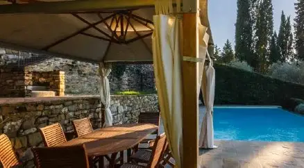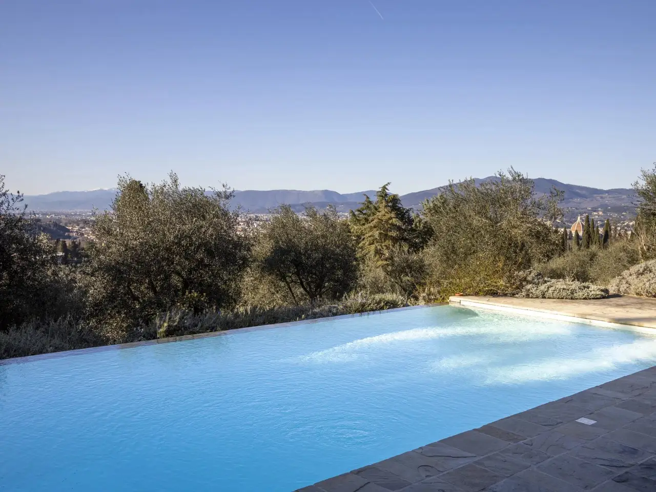 This magnificent property for sale dates back to the 15th century, it is just 3 km from the centre of Florence and offers a panoramic view over the city and Brunelleschi's awe-inspiring dome. This historic villa has been recently finely renovated and brought back to its old splendor. It has a total surface of 1,300 m2 divided into two apartments. It includes the main entrance, some state rooms which feature rich materials and prestigious details, a well-equipped kitchen, eleven bedrooms and fourteen bathrooms. This estate's rooms have been designed with great attention to detail using finishings of the highest quality. Its marble and stucco decorations, the choice of very high-quality materials combined with the most modern technologies give added value to this magnificent estate, which is charming but also safe and comfortable. This property is surrounded by a luxuriant, 5,000 m2 terraced garden planted with rich olive trees. Here you can find a marvellous infinity edge swimming pool from which you can enjoy a breathtaking view. This dream homeis also equipped with some typically Tuscan basement rooms (tavernas) and cellar. This villa for sale enjoys an absolutely private, quiet and exclusive position with a magical view over Florence. Internal surface: 1,300 m2 External surface: 5,000 m2 Main villa 11 bedrooms 14 bathrooms Infinity edge swimming pool - Terraced garden - Cellars Tavernas Florence city centre km 3