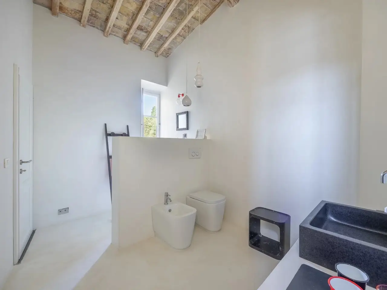 Florence – Via Bolognese, La LastraIn one of the most prestigious and sought-after areas of Florence, just outside the city yet surrounded by greenery, we are pleased to present for sale a splendid portion of a historic villa, truly unique in its kind. The property is set within an elegant context featuring a large communal park, enriched by a private chapel, parking areas, and service annexes, all of which enhance the charm and prestige of the entire complex.The result of a meticulous renovation, the residence perfectly combines the allure of historic architecture with the comfort and functionality of modern living spaces.The entrance opens onto a magnificent, light-filled double-height living room, which hosts a scenographic lounge area and dining room. Adjoining this space, the kitchen has direct access to the garden, shared with another property yet easily accessible. On the same level there are two bedrooms, two bathrooms, a hallway/study, and a practical storage room.A refined staircase leads to the upper floor, where a striking mezzanine introduces a more private sitting area. Also on this level are two beautiful bedrooms, each featuring a wardrobe mezzanine, an additional bathroom, and a laundry room.The finishes are of the highest quality: travertine, parquet, pietra serena, and resin enrich the interiors with elegance and refinement.This property is the ideal solution for those who wish to enjoy complete tranquility just minutes from Florence’s historic center, or for anyone seeking a prestigious residence with a truly unique and exclusive character.