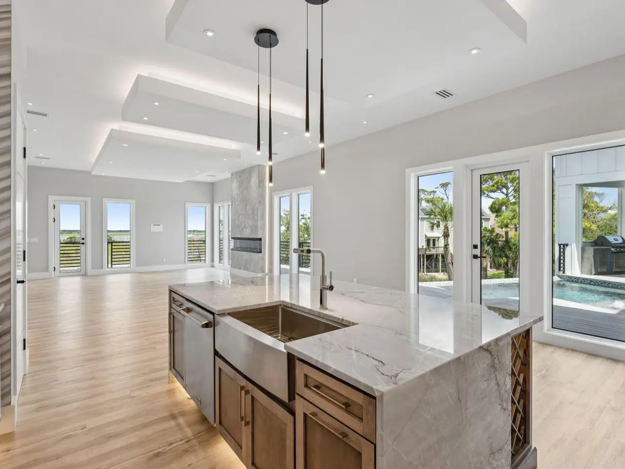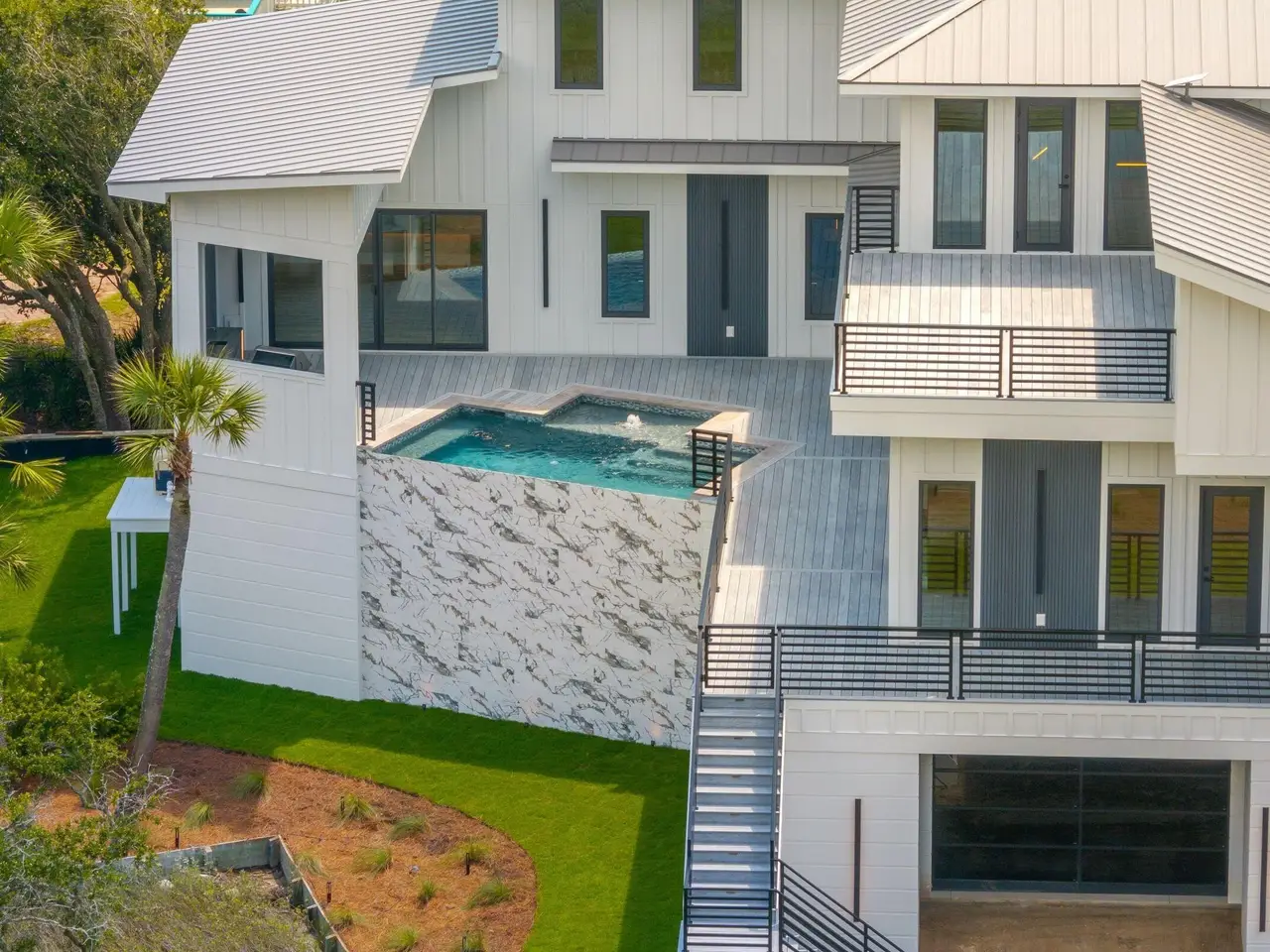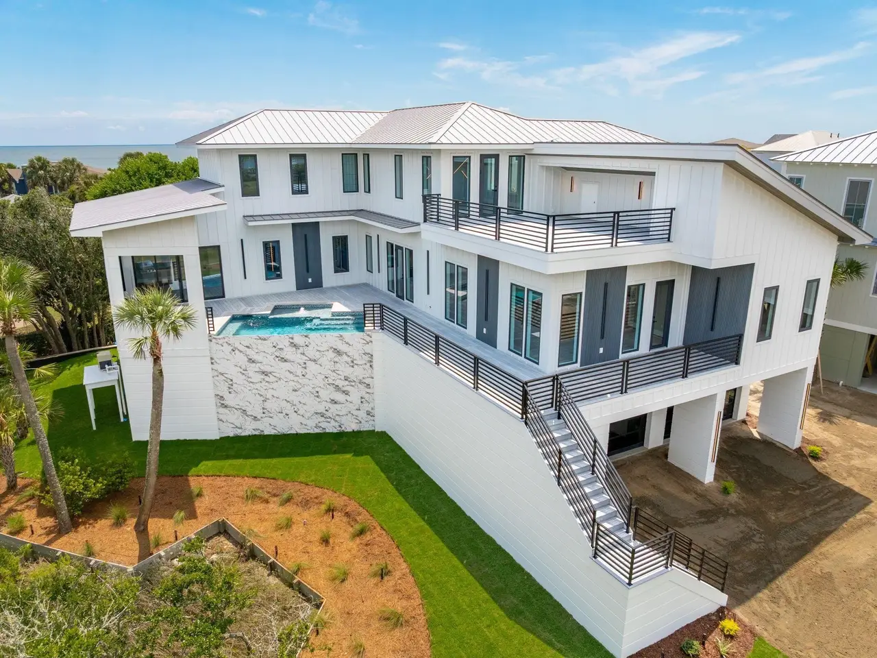 Welcome to 35 West 9th Street - Your dream coastal retreat at iconic Folly Beach is awaiting! This one of a kind property is nestled on the quiet west end of Folly and on a pristine .56 acre lot overlooking the serene views of the Folly River while also boasting spectacular ocean views as well. The home is stunning and offers a rare blend of sophistication and tranquility. Custom built and meticulously crafted, this home offers an array of upscale amenities including an outdoor kitchen, an amazing elevated pool heated by natural gas and a rooftop deck perfect for entertaining or simply unwinding from the end of the day.The home spans 3822 square feet and offers the perfect blend of luxury, comfort, and breathtaking views. There are 3 spacious bedrooms, 4 full bathrooms, a flex room that can serve as an additional guest room or a perfect home office and a bonus poolside room in the design. You will be greeted by an open-concept main floor with sprawling 11-foot ceilings where a spacious family room, dining area, and the chef's kitchen seamlessly flows together. Floor-to-ceiling windows bathe the space in natural light while offering uninterrupted views of the river, the sprawling marshes, the elevated pool and the outdoor kitchen. No detail has been overlooked in this home's design. The Chef's Kitchen features gorgeous stone countertops, custom cabinets and a high end stainless steel appliance package, including a 6-Burner gas stove top range & oven. The perfectly designed bar seating at the kitchen island allows plenty of room for family and friends to relax, spread out and enjoy this magical kitchen space & its wonderful views. The expansive 1st floor primary bedroom suite boasts custom built-ins, vaulted ceilings, a walk-in closet, and a luxurious steam shower with a soaking tub. This bedroom suite also has its own climate controlled cooling & heating system allowing for whatever specifically maintained temperature you prefer. Additionally, a vanity studio adds a touch of indulgence to your daily routine. The main floor also features a versatile flex room with its own full bathroom, perfect for creating a home office or accommodating guests. An elevator ensures accessibility throughout all levels of this gorgeous home and the large butler's pantry with its 2nd full refrigerator and laundry room provide convenience and ample additional storage. A mudroom provides a practical entry point, keeping the rest of the home pristine. Upstairs, a loft-style family room offers wonderful views and access to a large rooftop deck where you can entertain guests or just unwind while taking in the panoramic water vistas and gorgeous ocean views. The second bedroom functions as a 2nd primary suite, complete with its own en-suite bathroom and incredible river views. The third bedroom, which has sweeping ocean views, provides additional comfort and privacy for family, friends and guests. Outside, the stunning raised pool, complete with bench seating areas are perfectly complemented by the aforementioned outdoor kitchen, and are ideal for hosting events of any size. There is even a pool house entertainment room to watch your favorite sports team while enjoying the pool and jaw dropping river views. The grand garage below the home has four over sized bay doors and will accommodate multiple cars. This massive garage space adds 2200 additional square feet of dry storage below the home ideal for your at-home gym, boat storage and general storage. All of your beach and boat toys, your golf cart, surf boards and bikes store easily. From the pre-wired gas Generac whole house generator to the 2 Tesla superchargers and the pre-installed Starlink home internet system, this home's dynamic and unique high end finishes are unmatched. The home is just steps from the Sunset Cay Marina and a very short walk to the 9th street beach access. Folly Beach is a laid back Bohemian style beach town with miles of beautiful beaches, a teeming commercial district with restaurants, bars and cute shops. A short 20 minute drive will get you to downtown historic Charleston where you can enjoy all that the Holy City has to offer. This stunning custom built home and its private location makes it an ideal coastal sanctuary. Don't let this one of a kind opportunity pass you by!