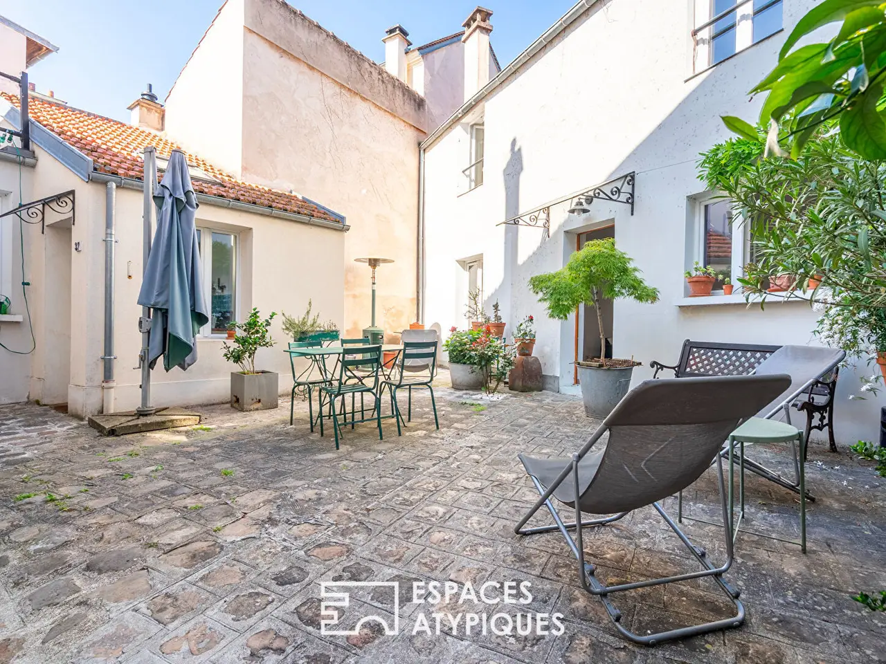 Located in the sought-after Village neighborhood of Fontenay-sous-Bois, this property complex offers a total living area of 214 sqm, divided between two independent houses, arranged around a private paved courtyard. The complex offers a total of eight rooms, including seven bedrooms, several living spaces, a full basement, and preserved exteriors. The unique configuration of these two houses opens the way to multiple uses, including family home, workplace, or intergenerational cohabitation. The first house, approximately 137 sqm, rises on three levels. The entrance sets the tone with a beautiful antique staircase and a fluid circulation to a bright living room and an outdoor-facing kitchen with dining area. This level is completed by a guest toilet. Upstairs, a landing leads to three bedrooms, a dressing room, a bathroom, and a terrace facing the sky. The top floor offers two additional bedrooms and a second bathroom with WC. A full basement completes the ensemble with storage or project spaces. The second house, measuring 74 sqm, is spread over two levels. The ground floor accommodates a pleasant living room with an open kitchen, a bedroom, and a bathroom. Upstairs, a light-filled landing, now converted into an office, leads to a bathroom with WC and a large 21 sqm bedroom. The central paved courtyard constitutes a true heart of life. Protected from view, it naturally extends the interior spaces and creates a soothing link between the two buildings. A place conducive to shared moments as well as quiet breaks, in an urban environment on a human scale. This real estate complex seduces with its atypical layout, its independent volumes, and its discreet atmosphere. A rare place, where each part can exist autonomously while remaining deeply connected to the others, within a sought-after residential setting in close proximity to the amenities of the city center. RER A - Fontenay-sous-bois - 10 min walkShops: 1 min walkSchools: 2 to 10 min walkAlbert de Mun school group: 1.7 kmREF. 11324Additional information* 11 rooms* 7 bedrooms* 4 shower rooms* 3 floors in the building* Property tax : 4 246 €Energy Performance CertificatePrimary energy consumptione : 316 kWh/m2.yearHigh performance housing*A*B*C*D*316kWh/m2.year54*kg CO2/m2.yearE*F*GExtremely poor housing performance* Of which greenhouse gas emissionse : 54 kg CO2/m2.yearLow CO2 emissions*A*B*C*D*54kg CO2/m2.yearE*F*GVery high CO2 emissionsEstimated average annual energy costs for standard use, indexed to specific years 2021, 2022, 2023 : between 2710 € and 3730 € Subscription IncludedAgency feesThe fees include VAT and are payable by the vendorMediatorMediation Franchise-Consommateurswww.mediation-franchise.com29 Boulevard de Courcelles 75008 ParisInformation on the risks to which this property is exposed is available on the Geohazards website : www.georisques.gouv.fr