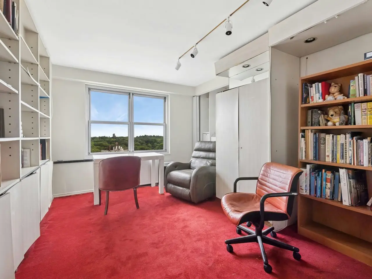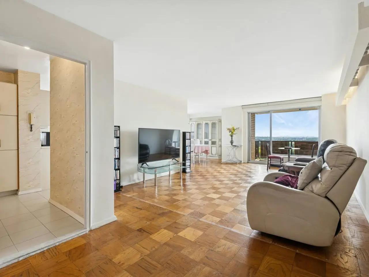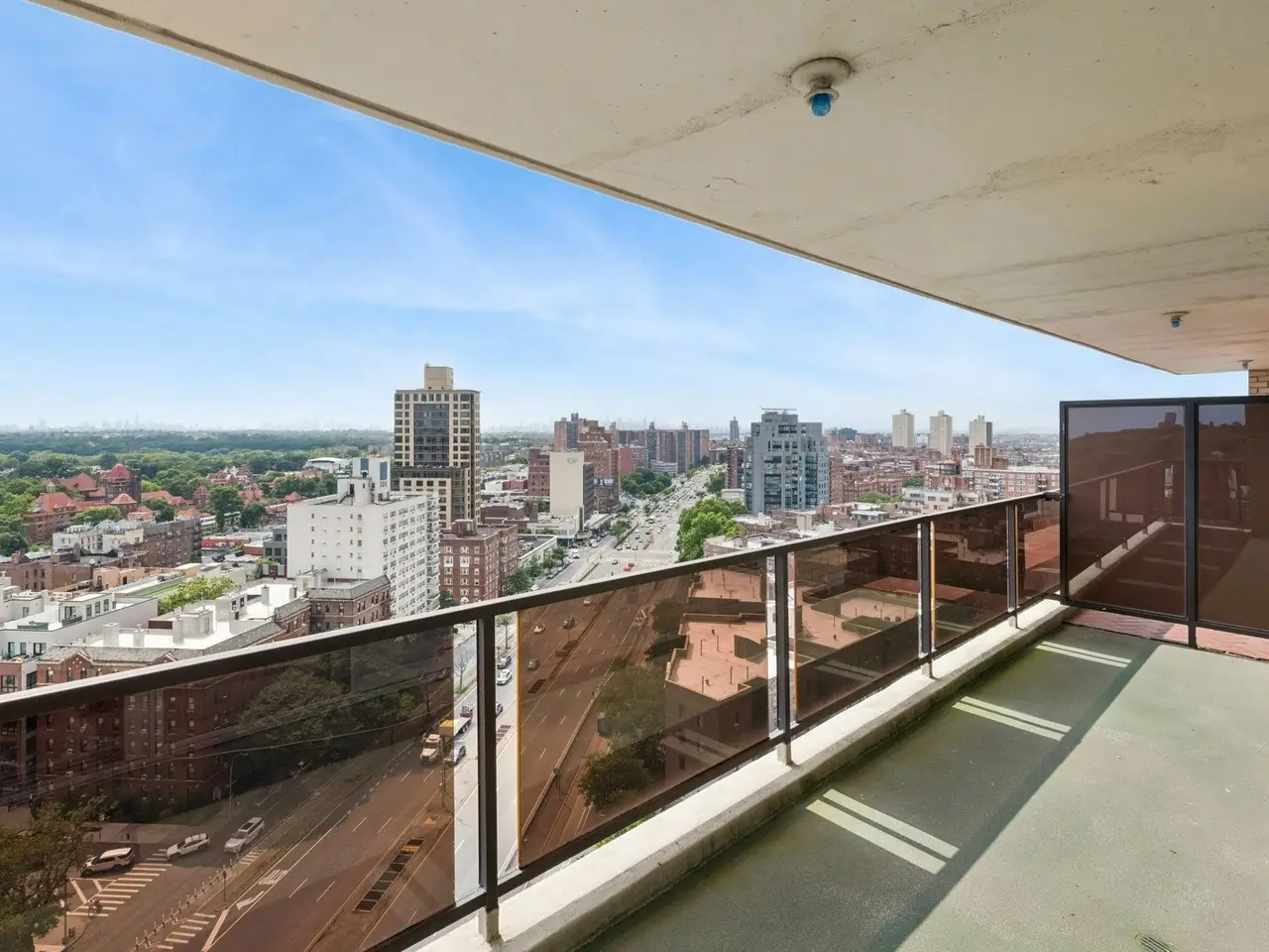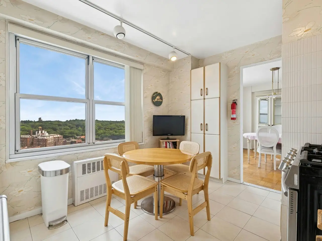 Set in the prestigious Kennedy House, you enter a grandly elegant lobby and are welcomed by a doorman, 24 hours a day. Enter Apartment 20B, and from the large living room window, take in the view of the New York City skyline, dazzling at night. All the other rooms offer views of historic Forest Hills Gardens" tree-top splendor, creating a feeling of connection to nature year round. 20B presents a most desirable layout, with three light, airy, generously-sized bedrooms, two bathrooms,10 great floor-to-ceiling closets, and an eat-in kitchen with a picture window to enjoy miles of view. The living room leads gracefully to the dining room with built in cabinet storage for your entertaining ease and an off the dining room entrance to the kitchen. The third bedroom is shown as a carpeted office/library. Enjoy south, west and north-facing views from your terrace. The Kennedy House offers an exceptional living experience. Pool, Gym, Playroom for Children. Beautifully maintained building by expert and responsive staff. Stroll to schools, places of worship, Forest Park, boutiques, supermarkets, restaurants. Only five express subway stops to midtown Manhattan.