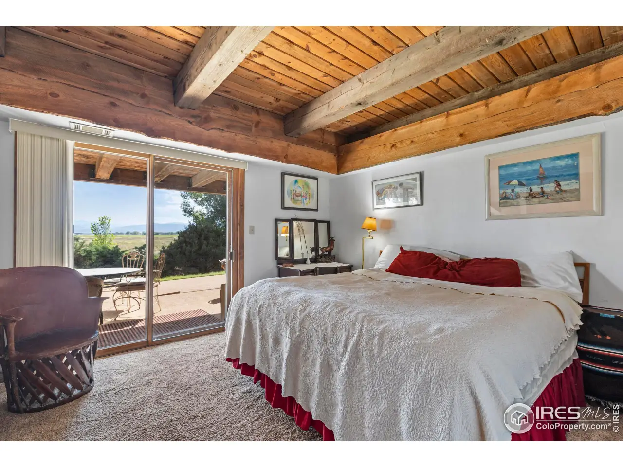 Nestled on a 5.75-acre parcel, this extraordinary home offers unmatched privacy and stunning views of the Front Range, including Longs Peak and the foothills. Surrounded by 120+ acres of open space, a reservoir to the south, and Boxelder creek and open space to the west, enjoy serene living amidst nature. The property features gorgeous mature landscaping and is adjacent to Mountain Vista Golf Course, perfect for outdoor and golf enthusiasts. This 3-bed, 3-bath home exudes personality and charm, with solid construction and open vaulted ceilings that create a spacious feel. A huge deck provides the ideal space for entertaining or relaxing while taking in the breathtaking scenery and the sounds of Boxelder Creek. Experience the perfect blend of seclusion, natural beauty, and distinctive design in this one-of-a-kind retreat.