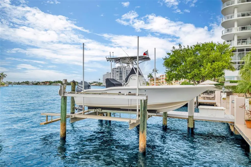 This residence offers a seamless indoor/outdoor lifestyle, incredible views of the Intracoastal, Ocean, & City. Only 16 exclusive residences, 2 per floor, ensuring privacy & exclusivity. SPACIOUS INTERIOR: Corner Unit, 3 BR / 3.5 BTH, & split floor plan spread across 3,300 sq ft. BOAT SLIP & LIFT: For a 31’ vessel, making it easy to access marina. PRIVATE ELEVATOR ACCESS: 2 elevators open directly into your private foyer. IMPACT DOORS & WINDOWS: To withstand severe weather & provide peace of mind. OUTDOOR SPACES: 3 covered balconies to enjoy waterfront views. PET FRIENDLY:2 dogs with combined weight limit 50 lbs. FURNISHINGS: Unit offered fully furnished/ turn-key. LOCATION: Just 1 block from beach, adding convenience to the luxurious lifestyle.