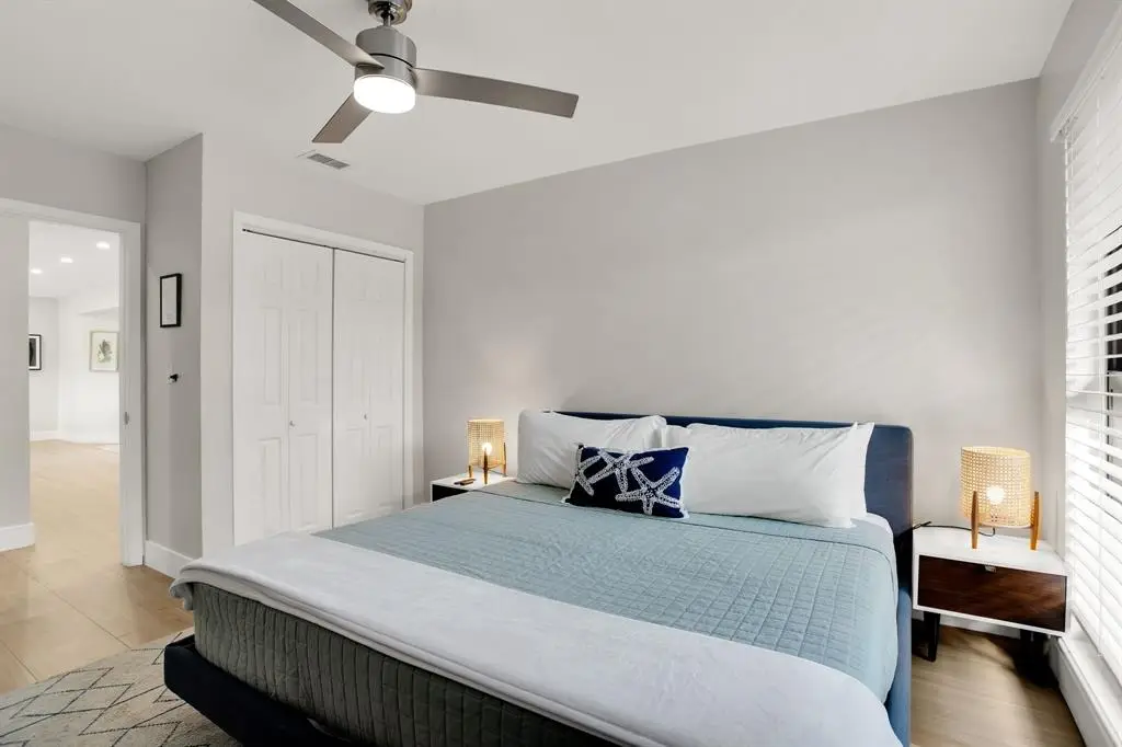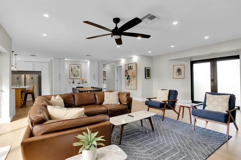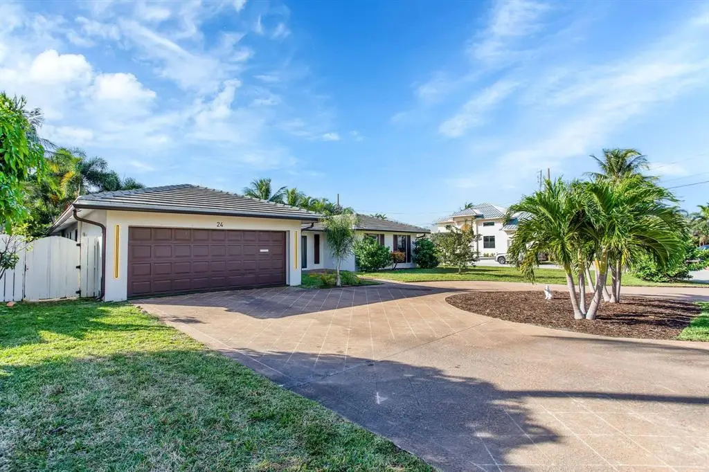 Live the beach life. This 3/3 home plus office and 2 car garage sits on a corner lot in desirable Bermuda Riviera just 2 blocks to the ocean. Many major components have been replaced and it will be a gem with some finishing touches. The home has a new flat tile roof, PVC plumbing, new electric panels and wiring, new AC, 3 renovated baths, flat ceilings with high hats and new flooring. The floorplan is split and there is a wide open living space. Generous master with huge walk-in closet. Enjoy the natural light that comes in from the south facing yard. primed for a pool. The home is across the street from Intracoastal front properties. Conveniently located to shopping and dining.