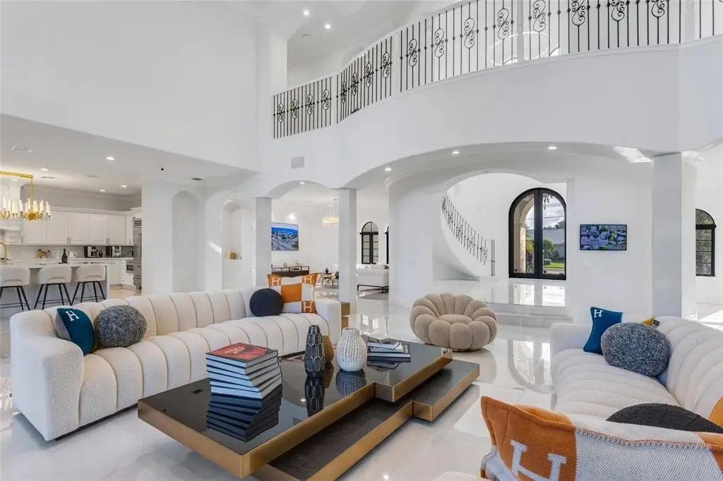 Gated Palm Beach-inspired Coral Ridge CC Estate sited on 120+/- ft of the verdant golf coarse and lake views. An expansion motor court greets guests to an impressive double glass door entry that opens to a rotunda foyer with a graceful floating staircase that sets the stage for this magnificent reimagined estate with slab porcelain flooring throughout. A Grand salon with soaring ceilings opens to the adjacent chefs gourmet double island kitchen, formal dining room and family room. Also provided on this level is a VIP suite and fitness room. The second level features the Primary suite with sitting room, duel boutique-style closets, spa-like bath and private fairway balcony, 2 Additional bedrooms suites and loft accommodate family and guests