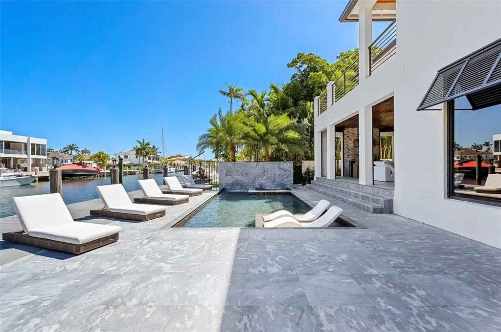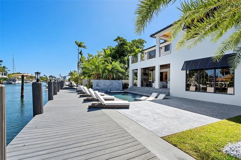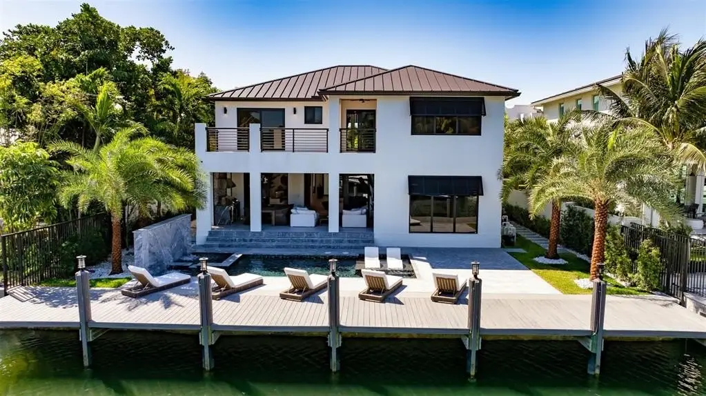 Turn-Key RH Styled & Furnished New Construction Estate sited on 65' of deepwater in Rio Vista. This 5 bed/5.5 bath gated residence has 5,122 total sqft of seamless indoor-outdoor living. Chefs kitchen fit with 6 burner Viking gas stove/griddle, Viking double refrigerator/freezer, 2 Viking dishwashers, Bosch built-in coffee/espresso maker, European cabinetry, & 24" Thermador wine column & ice maker. Smart-house tech: electronic shades, double-sided linear electric fireplace, & programmable hot steam shower! Enhanced closet design and expansive covered summer kitchen & loggia complete with gas grill, refrigeration, & impressive electric phantom screens. A heated salt-water pool/spa with cascading waterfall features, set within marble decking, leads to the new composite dock & raised seawall.