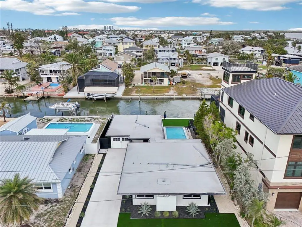 Modern elegance best describes this newly remodeled direct gulf access pool home with detached bonus guest house on Fort Myers Beach. With a total of four bedrooms and three full bathrooms, there is plenty of room for your extended family. The main home features custom cabinetry and tile work throughout the entire residence. The kitchen features not only stunning quartz counters, but a quartz wall, designer Bosch appliances, and ample size breakfast bar. While you relax in the living area, you can open your panoramic sliding doors to enjoy the breezes off the water. As you step into your detached one-bedroom guest home, you can enjoy the same level of workmanship and detail, inclusive of custom cabinetry, tile work, and modern finishings. In addition to a one and a half car garage, custom aluminum fencing and additional parking, the exterior has been meticulously zero scaped with fresh stone and a beautiful synthetic lawn for ease of maintenance and a sleek appearance. As you relax by your pool, you can enjoy Bay views and watch the Dolphin and the Manatee as they play right in your backyard complete with a brand-new seawall and dock. Why wait for new construction when everything here was fully permitted, inclusive of plumbing, electrical, impact doors and windows, roof, and so much more. Jump on your boat right in your backyard or take a short stroll to the white sands to explore all that southwest Florida has to offer!