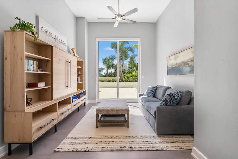 This is ONE-OF-A-KIND! This is the ONLY condo in the sought-after development of Grandview at Bay Beach with the wraparound lanai with 1,694 square feet of outdoor space! This lanai is so large it has its own zip code! The possibilities are endless with this space!!! This rare three bedroom plus den, 3.5 bath is being sold TURNKEY! There are only 58 condos in this exclusive high rise on Ft. Myers Beach. Boasting 2923 square feet of living area totaling 4,617 square feet with all of your outdoor space! There is no other condo like this one! 12-foot soaring ceilings! So much natural light spills in from every window! Newly installed electric sunshades throughout and of course, hurricane impact windows and sliders for piece of mind! Your culinary kitchen is outfitted with Bosch appliances, full island with granite countertops, two toned cabinetry, soft close doors and drawers, 42-inch custom cabinetry. Your living area has a stacked stone feature wall and awe inspiring custom lighting. All bedrooms have en suite full baths. Your open concept is perfect for entertaining large groups or intimate gatherings. Your master wing has an en suite bath with auto cabinet underlighting, walk-in shower with floor to ceiling tile, extended dual vanities with quartz countertops. Private water closet. Your two additional enjoyably sized bedrooms have full access to your outdoor lanai. 2nd bedroom has shower/tub combination while your 3rd bedroom has a walk-in shower with seamless glass enclosure. You office/den/reading/relaxing room has access to the enormous lanai as well. Carpet in all bedrooms. There are two guest suites that owners can secure for additional family or friends if needed. No need to find a hotel room on the island! First class luxury accommodations flow seamlessly in these fine guest suites. Be a part of Grandview at Bay Beach, on the Southern tip of Estero Island next to Lover's Key. Many amenities that are included are a community pool, hot tub, two BBQ grills, two firepits, yoga room, TRX, full athletic facility, Pickle Ball, Tennis, Bocce Ball, Deeded beach access, beach parking. There are future plans for a putting green in the park. There is a 60-foot boat slip in Waterside for a separate purchase. MLS #224034904. Walking distance to Santini Plaza and a quick drive off the south bridge to Lovers Key State Park, RSW international airport and Bonita/Naples for the best in shopping and dining that southwest Florida has to offer. Amazing video to watch!