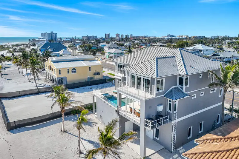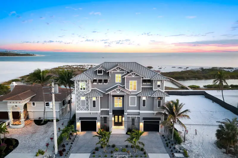 An exclusive & spectacular beachfront home located on the tranquil south end of Fort Myers Beach offers unrivaled panoramic gulf & beach front views stretching from Naples to Sanibel on clear days & evenings serving as a perfect backdrop of luxury & privacy. Positioned on a rare section of beach w/ultra-private backyard yet, from the home, you have direct access to the sandy beach & gulf waters. Featuring 6 spacious ensuite bedrooms or 5 ensuites & a den w/full bathroom, the residence boasts 10' to 15' high ceilings, stunning hardwood & tile flooring, fully color-coordinated accents, an open 3-tiered floorplan drawing in natural light throughout plus, an elevator that provides easy access to all levels, ensuring convenience throughout the home. The chef-inspired kitchen is equipped with top-tier appliances, dual ovens, dual dishwashers, large walk-in pantry, wet bar, multiple dining options from casual to formal both inside & outside, ideal for both everyday living, entertaining & those special gatherings. Step outside to the expansive patio, where you'll enjoy a full outdoor experience from lounging, sunbathing, dining & more. Complete outdoor kitchen, fireplace, infinity pool & spa, all designed for taking full advantage of the mesmerizing sunsets & living the ultimate beach front lifestyle. Designed with comfort, efficiency & luxury at top-of-mind, this home features high-impact windows & doors, electric Clear Choice Storm Shutters, motion-senor automated sliders that open up to the beach, a garage that follows the footprint of the home to accommodate 6+ cars, double laundries (main & upper level) & Lutron lighting system. Additional highlights include two new A/C systems (2024), on-demand gas water heaters, a 1,000-gallon underground propane tank, a MyQ WiFi-controlled garage & beautiful, irrigated landscaping. A short drive, bike ride or trolley connection can take you to Lovers Key State Park, a variety of local marinas, various local shopping & dining venues as well as easy access to a number of public boat launches. The trolley-stop is just across the street. This home is perfect for enjoying the finest in beachfront living as well as both current & future local attractions as investment in the community continues to unfold.