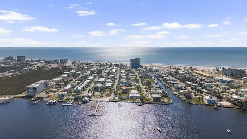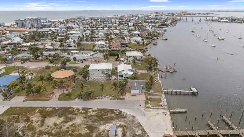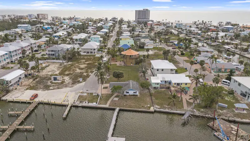 Nestled on the shores of Fort Myers Beach, this waterfront plot of land offers a captivating blend of coastal charm, tropical vibes, and is just waiting for someone to build their property in PARADISE! Renowned for its proximity to the sugary sands of Fort Myers Beach (7 min walk), this property also boasts 80 feet of Bay frontage, offering unparalleled access to the water. HOME IN PICTURES HAS SINCE BEEN REMOVED AND READY FOR NEW BUILD!! A Composite wood dock built in 2021 provides the perfect vantage point for admiring the panoramic views of Estero Bay and Mantanzas Pass, where the shrimp fleet adds a touch of local color. Embark on a short boating excursion to enjoy and discover the many dining and entertainment venues nearby. Whether it's enjoying endless sunrises and sunsets, watching the dolphins and manatees while fishing right off your dock, this is a haven for those seeking the ultimate waterfront living experience. Being very close to the North end of the Island means shopping and dining minutes away, and easy access on and off the island. This lot is oversized and able to accommodate an extremely large single family residence (with room for a pool!) to spread out, or, split the lots and build 2 homes for family or investment. LOCATED IN A WEEKLY RENTAL ZONE, Your choice of endless opportunity is here!!! If you have any questions whatsoever, please feel free to contact the listing agent. Existing structure scheduled to be removed. WHAT'S THE OLD SAYING? WHEN OPPORTUNITY KNOCKS, OPEN THE DOOR!!
