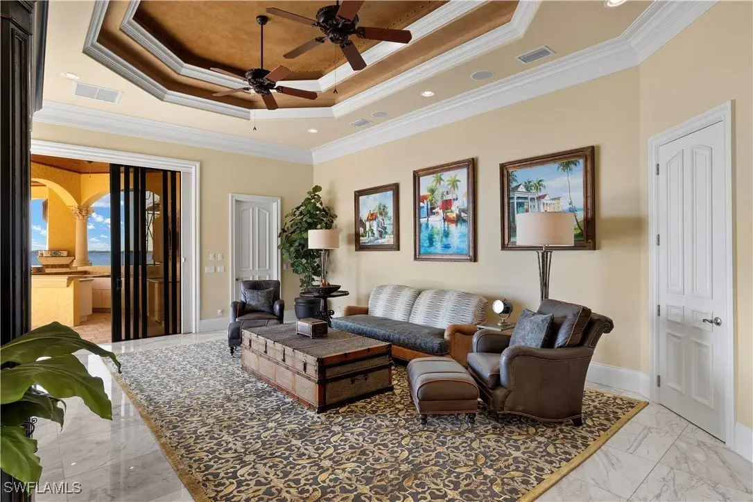 Experience the perfect blend of luxury and warmth in this breathtaking Mediterranean residence along the Caloosahatchee River. Just moments from the historic Edison & Ford Winter Estates and the vibrant downtown Fort Myers, this estate offers over 5,900 square feet of exquisite living space. Designed for both comfort and sophistication, the home features four spacious bedrooms, four full baths, and two half baths, along with elegant fireplaces, an elevator, large 3 car garage and a separate detached two-car garage and/or dedicated man cave. The thoughtfully designed interiors seamlessly blend modern convenience with timeless European elegance, showcasing a formal living room, dining room, library, gourmet kitchen, breakfast nook, family room, media room, and wine cellar. Step outside to a serene oasis perfect for entertaining, with immaculate gardens, fountains, a negative-edge swimming pool, an outdoor pavilion, a pool house with a kitchen, and a rooftop sundeck—all designed to capture stunning sunset views. Plus, a **new seawall and dock** are in progress, ensuring direct access to the water for an unparalleled Southwest Florida lifestyle.