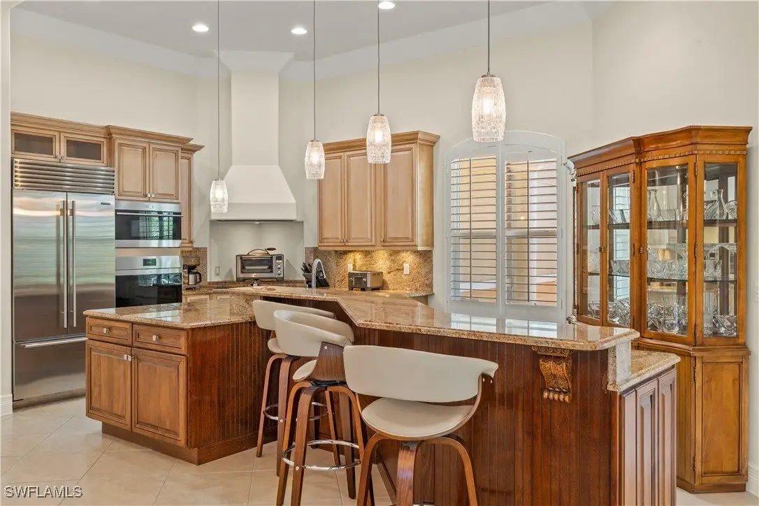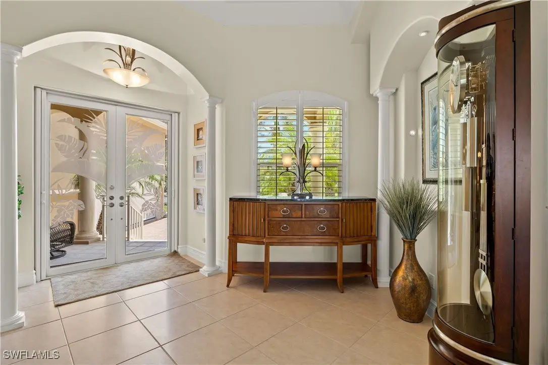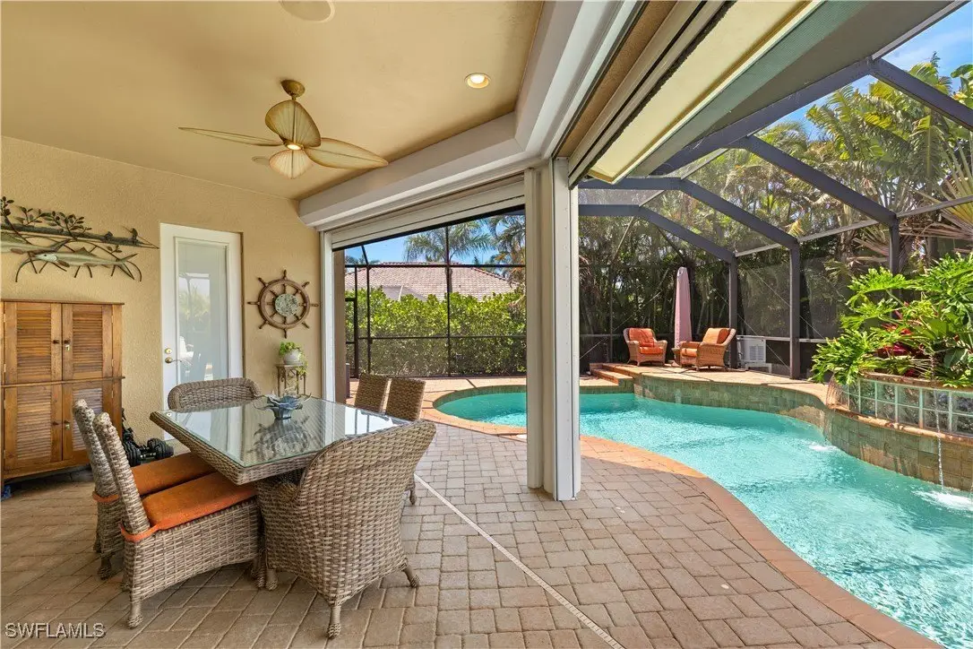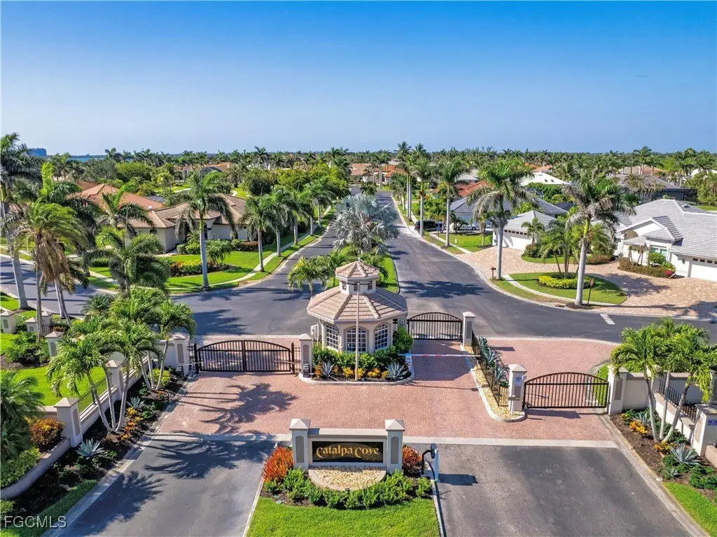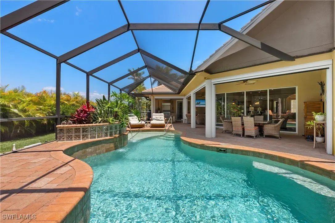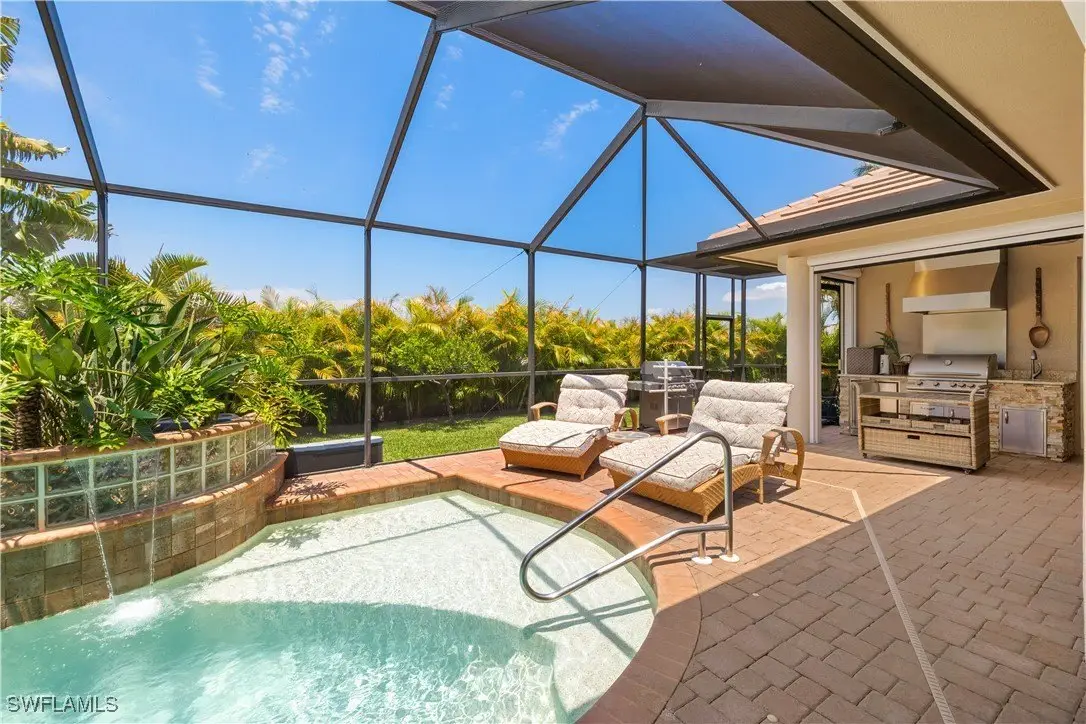 Welcome to Catalpa Cove, a private gated boating community just minutes to the Gulf and Bay waters. With this home you can enjoy all the perks of waterfront living with added peace of mind and protection at a more affordable price! This beautifully maintained custom home includes a deeded boat slip with a 10,000 lb lift, offering direct Gulf access just minutes away, ideal for those who love to be on the water. Step inside through the glass double doors to an open and airy layout filled with natural light, high ceilings, and Impact Rated windows and sliders throughout. The kitchen is as functional as it is welcoming, with custom birch cabinetry, granite countertops, Sub-Zero and Wolf appliances, and an oversized island perfect for gathering with friends and family. Just off the kitchen, the spacious living area features built-in shelving and Zero Corner sliders that open completely to the lanai, creating a seamless indoor-outdoor lifestyle. Outside, enjoy a private backyard retreat with a sunshelf pool, outdoor kitchen with built-in grill (connected to a 500-gallon buried propane tank), covered dining and lounging spaces, and a convenient pool bath. Freshly updated landscaping, a newly sealed paver driveway, and a fully fenced backyard add to the appeal. The VIP suite offers a peaceful escape with great natural light and direct lanai access. A separate den with dedicated office space is perfect for working from home or added flex space. Two additional bedrooms on the main level each include their own full baths with custom tile and finishes. Upstairs, a large bonus room with an attached bath makes a perfect studio, gym, or junior VIP suite. This home also features a newer roof (2023), a Halo 5 whole-house water filtration system, and a full-house generator, making it the perfect home for those who want the boating lifestyle with added security and convenience. Don’t miss your opportunity to own in one of Fort Myers’ most desirable boating communities, close to World Class Beaches, Incredible fishing and boating, and all of the amazing things SWFL has to offer!