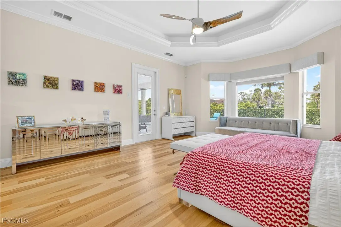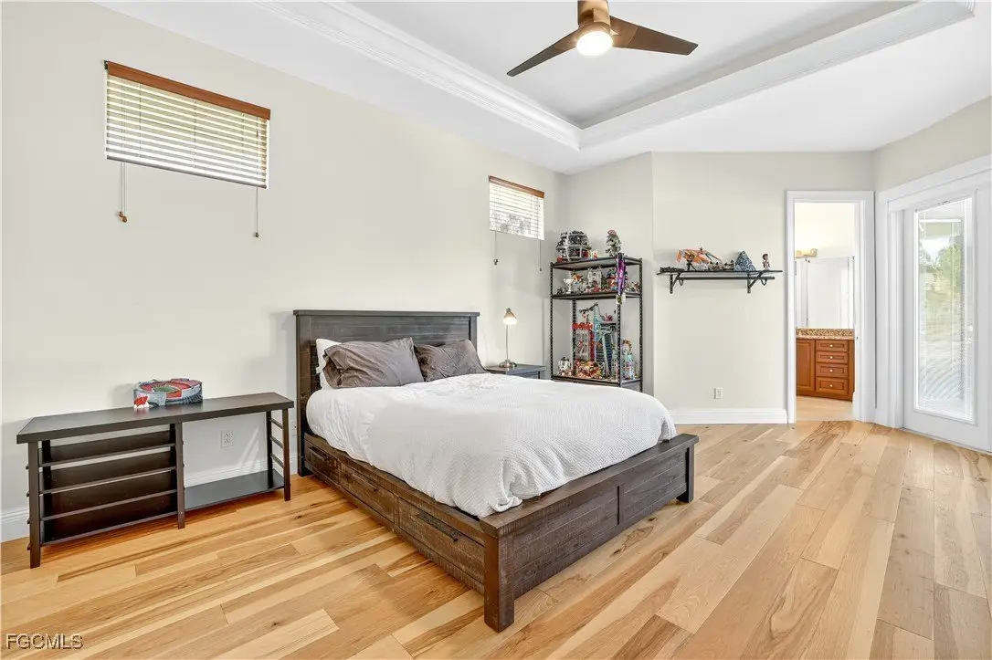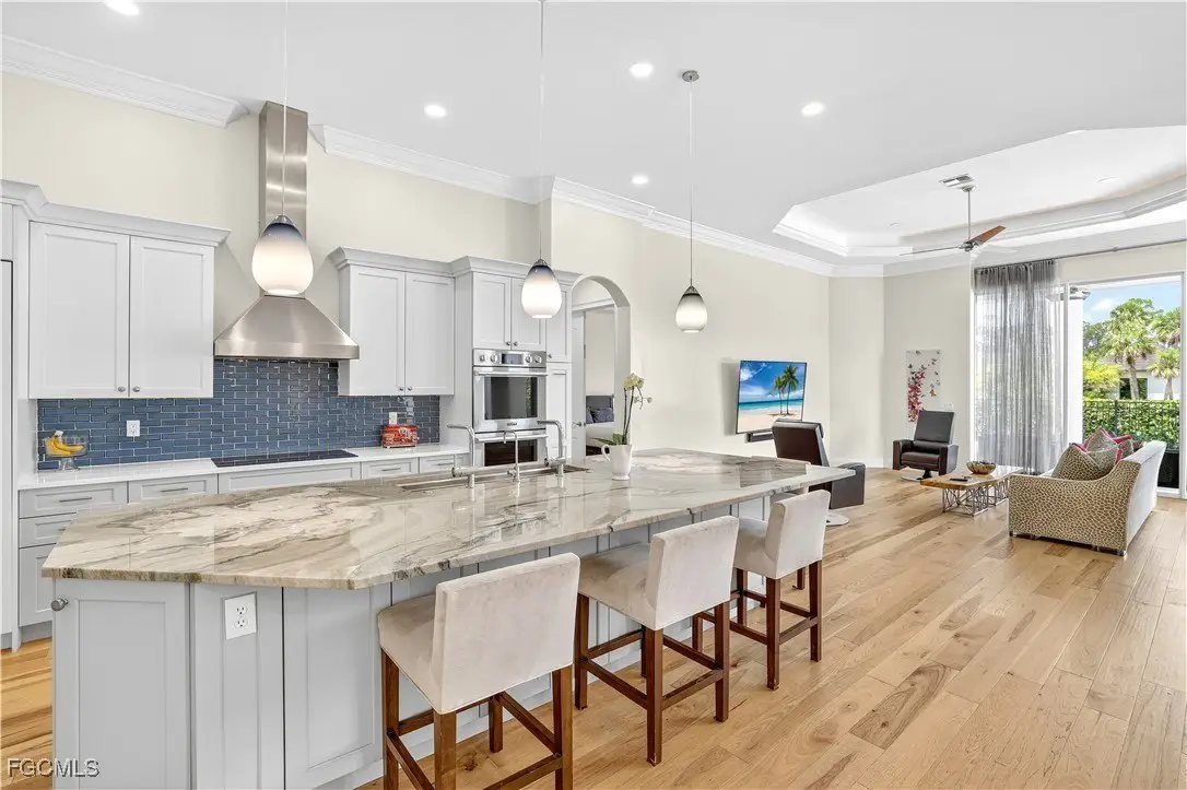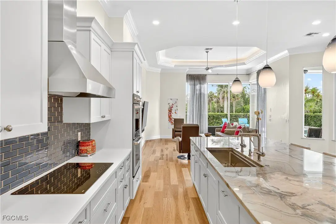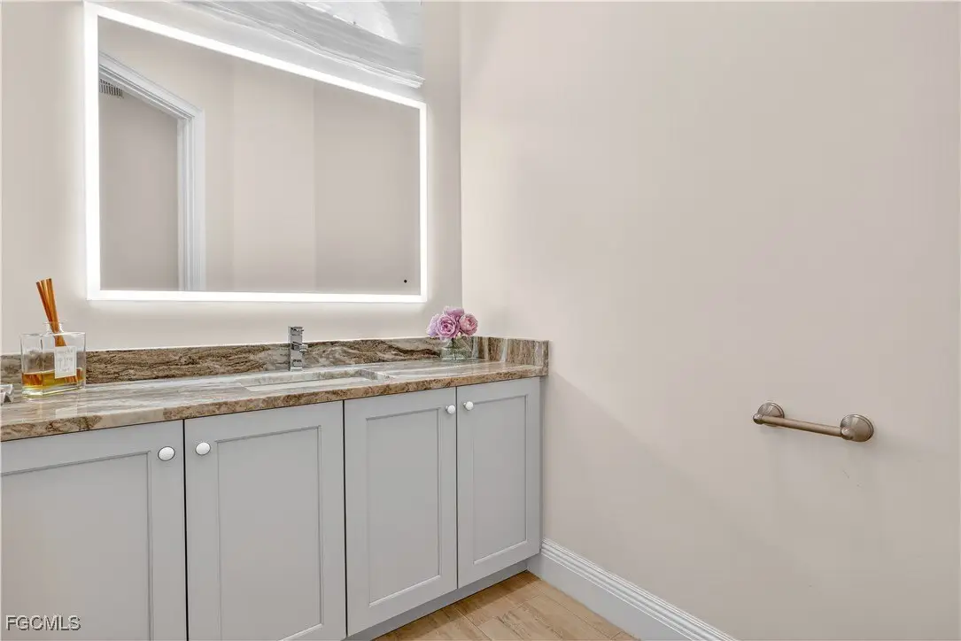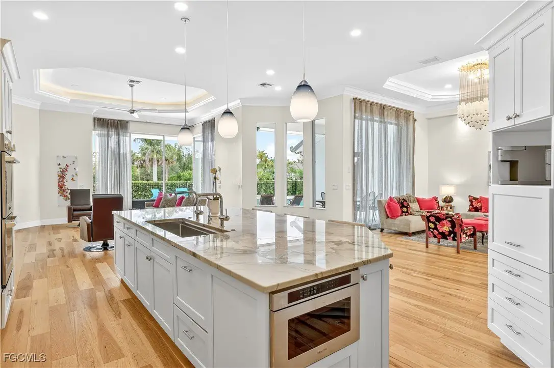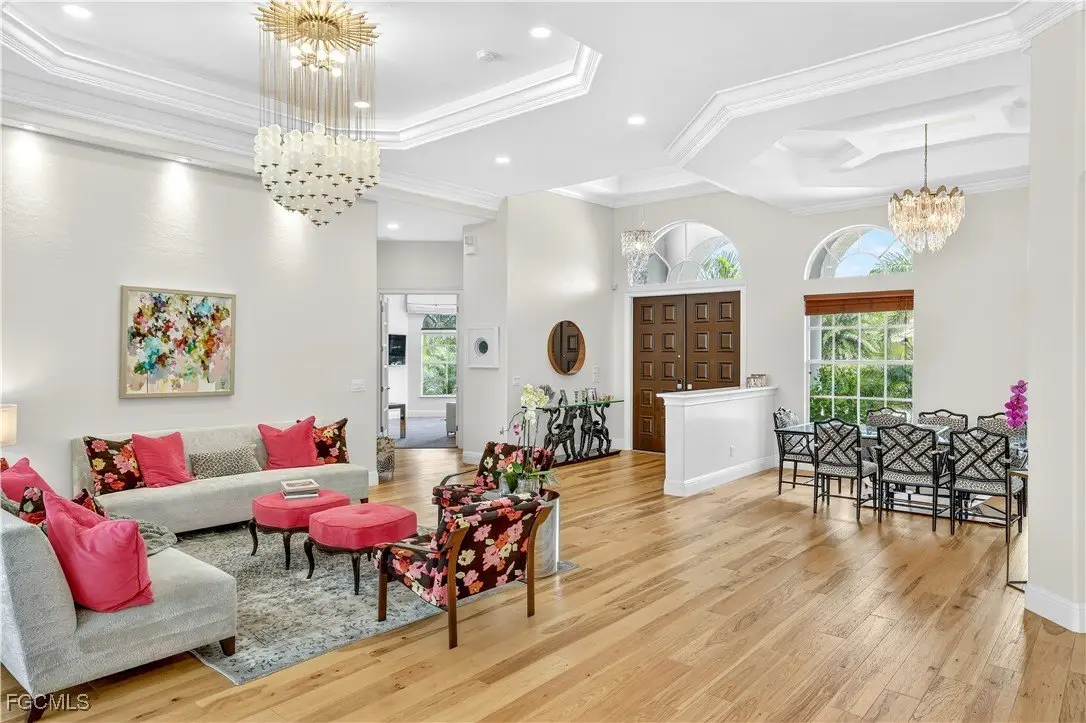 Discover luxury living in one of Fort Myers' most sought-after gated communities, Devonwood Estates. Situated on a meticulously landscaped 1.15 corner acre high and dry lot surrounded by 32 royal palms, this 4-bedroom, 4-bath estate has been thoughtfully renovated with high-end finishes and features throughout. A full interior remodel was completed in 2021, including the kitchen, all living areas, and bedrooms. The gourmet kitchen showcases custom cabinetry, a large Macaubas Fantasy Granite island, and top-tier Viking and Signature appliances. Additional updates include two new AC units and ductwork (2021), new roof (2024), remodeled pool, deck, and fencing (2022), and new pool equipment with a Jandy WiFi remote. Enjoy the elegance of ornate vintage chandeliers sourced from Palm Beach and Port Royal estates, soaring ceilings, rich wood flooring, and a seamless indoor-outdoor flow. The oversized lot offers privacy with preserve views, perfect for entertaining or relaxing in the custom pool and spa. Devonwood offers residents tennis, a community boat ramp with Gulf access, and serene privacy all while being just minutes from beaches, shopping, dining, and RSW Airport. This is one of the best kept secrets in all of SWFL.