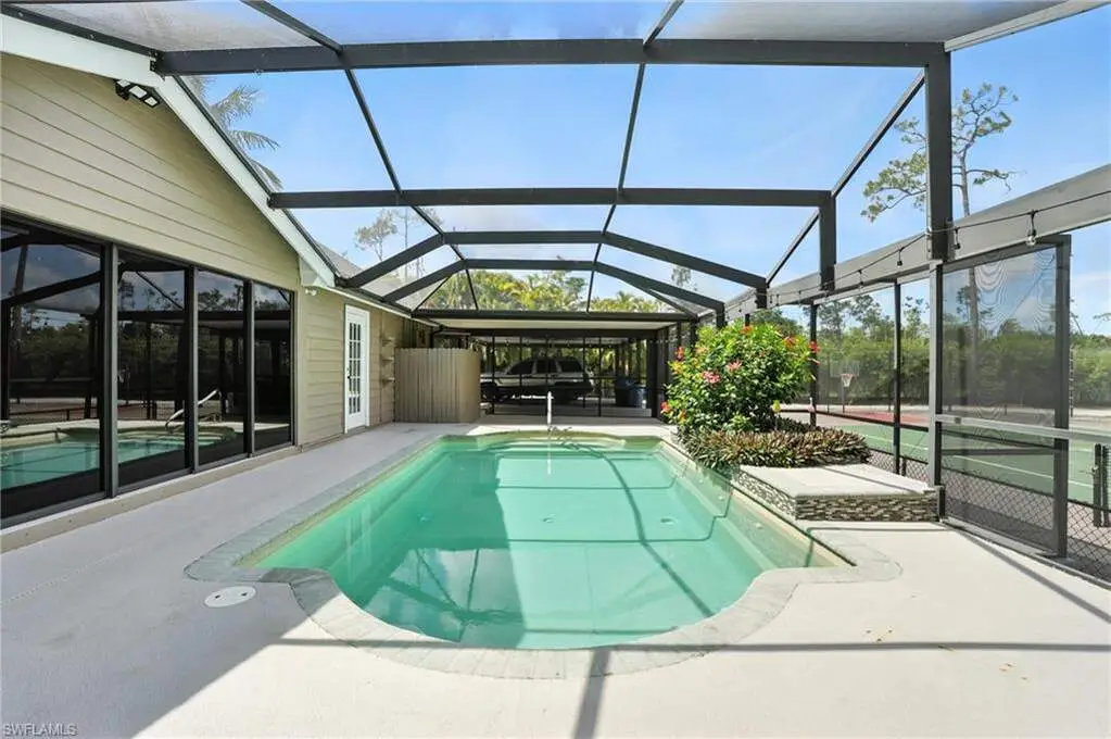 RARE FORT MYERS ESTATE WITH 2.39 ACRES-ONE OF THE LAST LARGE PARCELS LEFT IN THE CITY. Behind private gates in the sought-after Briarcliff community, this 4-bed, 3-bath two-story estate with separate guest quarters offers 5011 sq ft of elegant living, wrapped in lush privacy with a pond, pool, and mature royal palms lining the circular drive. The main home features a chef's kitchen, expansive owner's suite with sitting room, Jacuzzi tub, oversized shower, and two walk-in closets, plus upstairs guest suite and game room. A detached barn with 220 power includes a separate upstairs studio apartment, with private entry and rooftop sundeck above the 4+ car garage. Enjoy private tennis, pickleball, and basketball courts, RV parking with hookups, and peace of mind in FEMA X500 zone with no flood insurance required, a whole home generator, whole-house water softener system, and prior monthly preventative pest and termite treatments. Estate-hired lawn care is available including treatment, edging, weed treatment, and more, to keep these items off of your to-do list while keeping your mind at ease. All this just minutes from city life with all the necessities nearby and less than 10 miles from Fort Myers Beach, yet tucked away in a world of its own. Schedule your private showing today!
