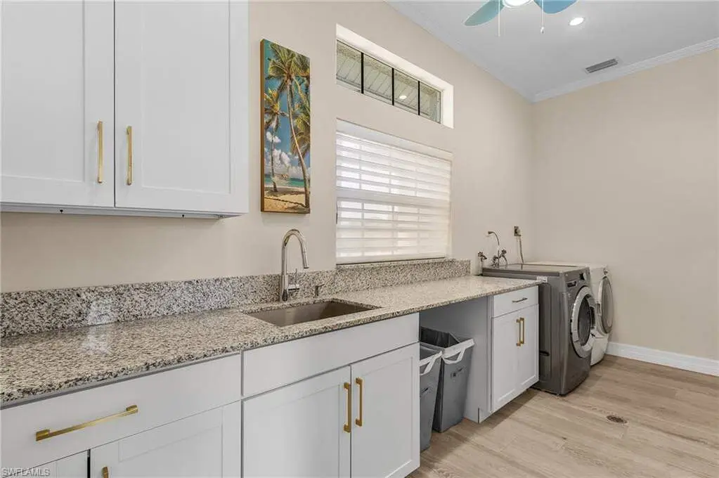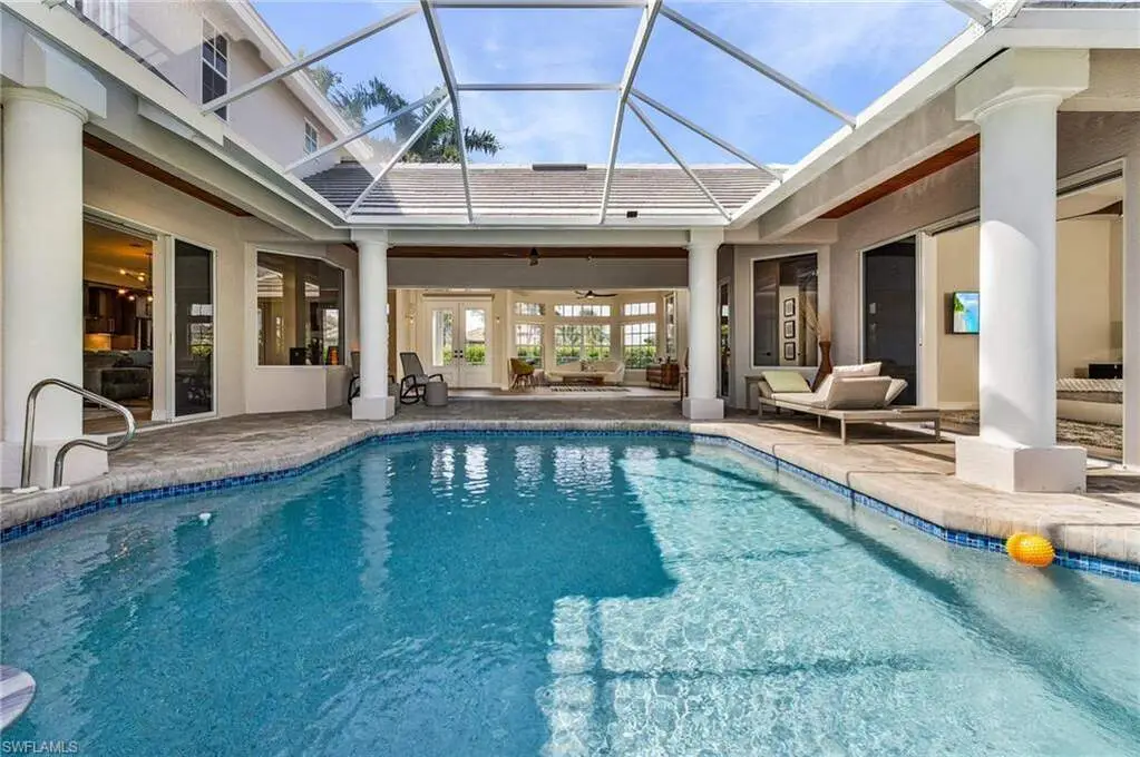 Experience long water views, waterskiing, wakeboarding, wake surfing, tubing, fishing and boating from this sophisticated lakefront oasis in the heart of Southwest Florida. Located in the exclusive, gated community of The Harborage, this meticulously decorated and impeccably updated home opens abundant opportunities for outdoor recreation and waterfront living. This stunning home was purpose built to enjoy views of the lake from every room or while relaxing by the pool. The pocket sliding doors open to allow for true indoor outdoor living. This four bedroom three bath, 3224 square foot home additionally features a new roof, three car garage, 7500 pound covered boat lift and a very large yard that is unique to Southwest Florida. The Harborage is a waterfront community with lake and Gulf water access on a single quiet street. On the east side of Harborage Drive you have the private lake with a competition quality waterski slalom course and on the west side, you have boat storage and a community boat ramp with easy access to Estero Bay, the Gulf of America and beyond. Enjoy the community lakeside beach, tennis, pickleball and basketball courts, swimming pool, newly renovated clubhouse and playground. The Harborage is located minutes from an international airport, Florida Gulf Coast University, world class shopping and fine dining. The living area of this well-built block home experienced no flooding during recent storms.
