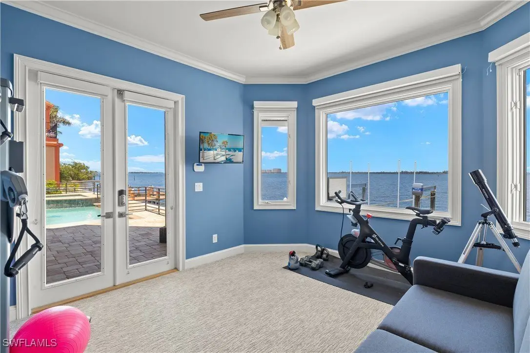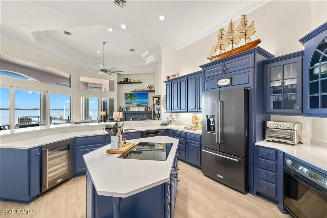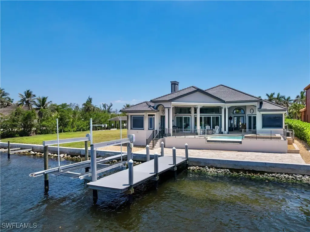 Luxurious Waterfront Living in the Prestigious Gated Community of Catalpa Cove. This beautifully updated estate offers over 3,500 square feet of refined living space with 4 bedrooms, 4.5 bathrooms, plus a private 1 bedroom, 1 bathroom guest suite with a partial kitchen-perfect for visitors, or a secluded workspace. From the moment you step through the front door, the home welcomes you with soaring ceilings, Great natural light, and stunning river views that stretch across the formal living and dining areas. The gourmet kitchen is both spacious and functional, featuring extensive counter space and an open layout that flows seamlessly into the family room-ideal for entertaining or everyday living. The VIP suite is thoughtfully positioned for privacy and showcases expansive water views, a spa-inspired bath, and generous closet space. Each additional bedroom includes its own ensuite bathroom, creating a private and comfortable space for family and guests alike. Outdoors, the home truly shines. An oversized paver lanai frames a saltwater infinity-edge pool and spa, offering a peaceful escape surrounded by breathtaking waterfront scenery. The attached guest suite, located just off the lanai, can also serve as a convenient pool bath. Boaters will love the private dock outfitted with a 16,000 lb. lift, power, and water connections, alongside a raised seawall and approximately 80 feet of direct river frontage. Recent updates add to the home's value and peace of mind: a 2022 roof, 2-zone HVAC with dehumidifier and UV purification (2021), Storm Smart Kevlar storm screens, new exterior and interior paint, upgraded irrigation running on a private well, and a dual propane tank setup with generator-ready electrical panel. Best of all, this home remained high and dry-no water intrusion in either the main residence or garage during any storms. Located just minutes from fine dining, marinas, and the white-sand beaches of Sanibel and Captiva, this is a rare opportunity to own a truly turn-key waterfront residence in one of Southwest Florida's most sought-after communities.