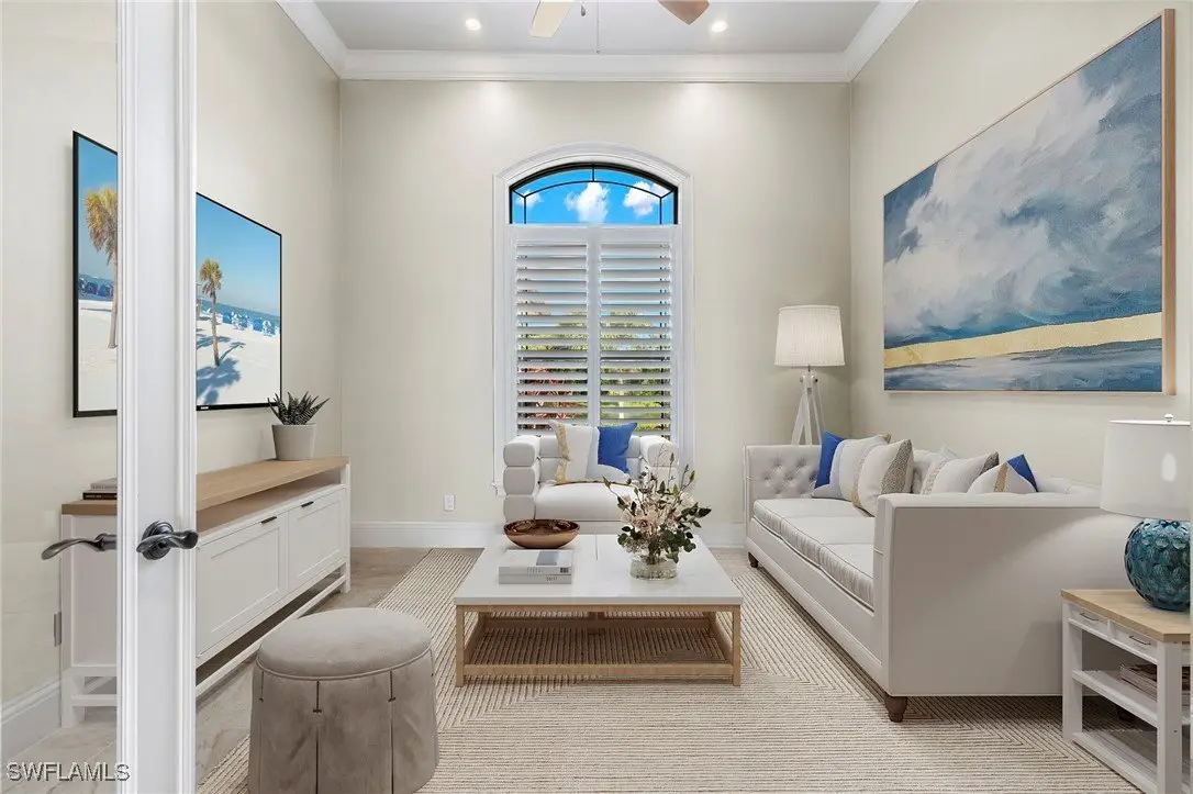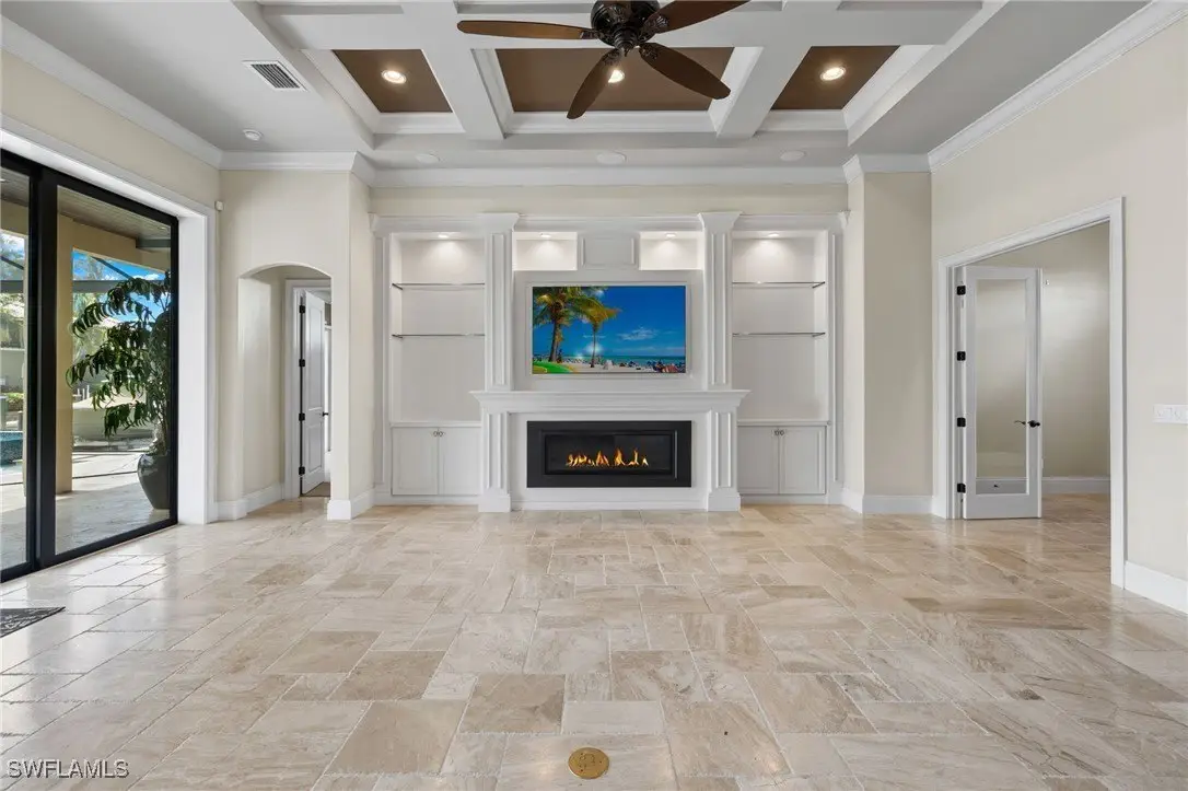 Located in the premier deep-water boating community of Southwest Florida, this luxurious 4-bedroom home boasts a great room floor plan complete with a fireplace, custom built-ins, and top-quality finishes throughout. The home exudes spaciousness, featuring a beautiful kitchen with high-end stainless steel appliances and a well-appointed butler's pantry with an extra refrigerator and wine cooler. The master bedroom is expansive, offering a gorgeous, spacious bath and two walk-in closets. Guest bedrooms are also roomy and private. A private study is conveniently located off the great room, along with a formal dining or additional sitting area. Zero pocket sliders open from the great room to a generous pool entertainment area, which includes fire bowls, an impressive spa, and a large outdoor kitchen area with a fireplace. The dock area is superb, with ample deck space and a boat lift. Palmetto Point provides quick access to the intercoastal, bay, and gulf waters, where you can enjoy waterfront dining, incredible beaches, world-class fishing, and more. The location of Palmetto Point is ideal, being close to Sanibel and Captiva Islands, Fort Myers Beach, nearby HealthPark, shopping, and excellent restaurants. This is a remarkable offering.