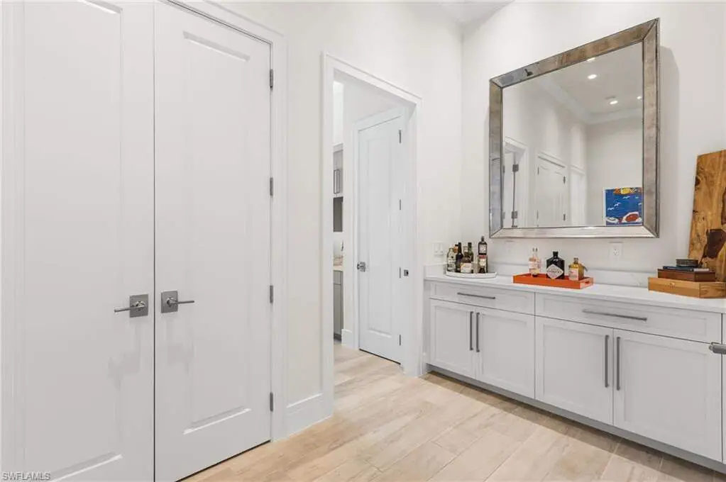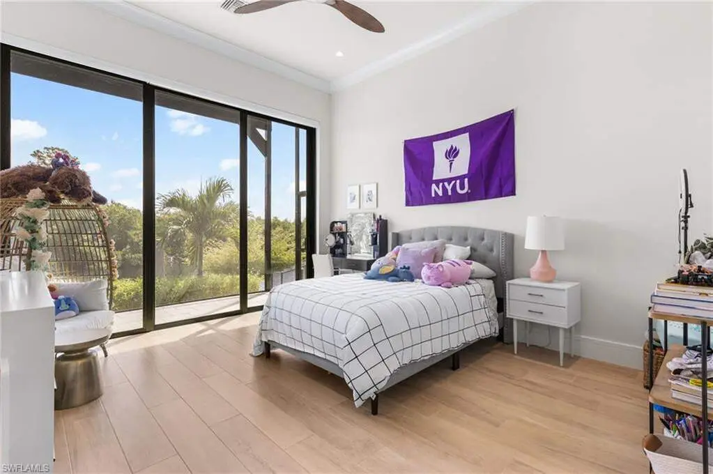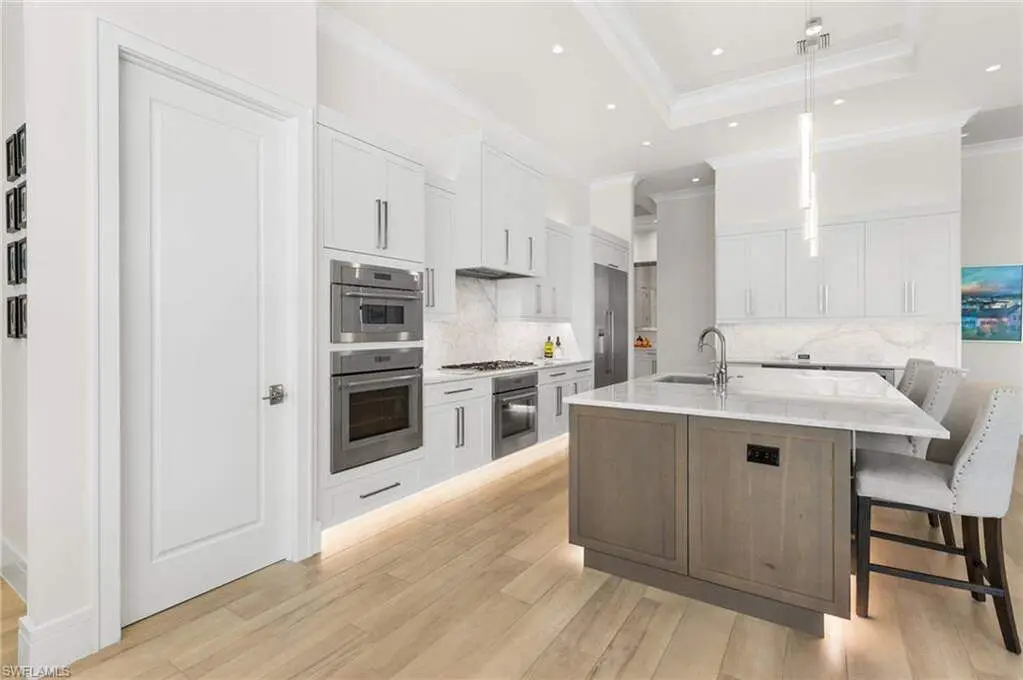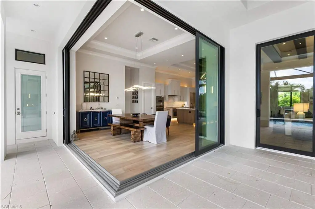 Discover luxury coastal living in this stunning one-owner home, located in the highly desirable waterfront community of Palmetto Point. Built in 2022, this 4-bedroom + den, 4 full ensuite baths and 2-half bathroom residence with a dedicated office/den and 3-car garage offers direct Gulf access-just minutes to open water-with no homes across your canal, ensuring ultimate privacy and serenity. Boasting over 3,700 sq ft of refined living space, this home seamlessly blends modern design with timeless elegance. Soaring ceilings with exposed wood beams create a grand ambiance in the main living area, while a 12-foot wall of sliding glass doors brings the outdoors in, offering panoramic views of lush mangroves and tranquil water. The open-concept chef's kitchen is a dream come true, featuring a massive quartz island, Thermador appliances, a morning kitchen with a second refrigerator and wine cooler, and abundant space for entertaining. The formal dining room overlooks the water, adding to the home's sophisticated layout. The primary suite offers direct lanai access, two oversized custom closets, and a spa-inspired ensuite bathroom with dual vanities, a separate soaking tub, and an expansive walk-through shower. Each guest bedroom includes its own private ensuite bath and walk in closets for ultimate comfort and convenience. Step outside to your massive covered lanai with tongue-and-groove ceilings, a sparkling turquoise salt water pool, a fully equipped outdoor kitchen (Sedona grill, refrigerator, sink), fire pit, outdoor shower, and pool bath-perfect for entertaining year-round. An 80-ft floating concrete dock is ready for your boat and water toys and can accomodate a yacht up to 100 ft. Additional high-end features include: Hurricane impact doors and windows Solid core interior doors throughout Tankless water heater Mini-split A/C in garage with finished epoxy floor Pavered driveway Spacious laundry room with sink and extra storage This move-in ready waterfront masterpiece offers quintessential indoor-outdoor Florida living at its finest. Don't miss your chance to own in one of the area's most prestigious boating communities.