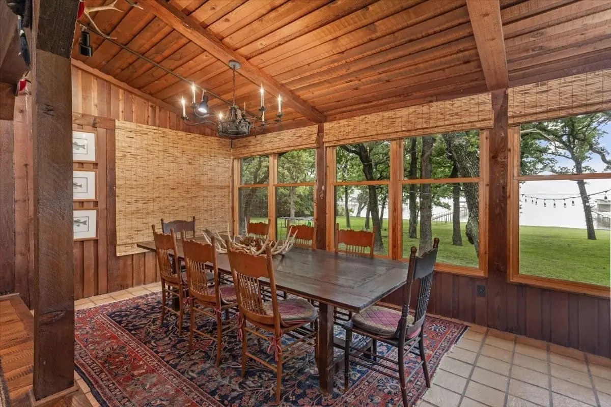 Eagle Mountain lake front retreat just 35 minutes from Fort Worth. Situated on over 2.7 acres, the main house has 2,329 sq ft, three bedrooms and two and a half bath with fantastic lake views. There is a two story guest house with 1,543 sq ft, three bedrooms and three baths with the potential to finish out an additional bedroom. The property includes a sandy beach, boat dock, and includes furniture, excluding some personal items. Ideal weekend lake house, ready to move in furnished!